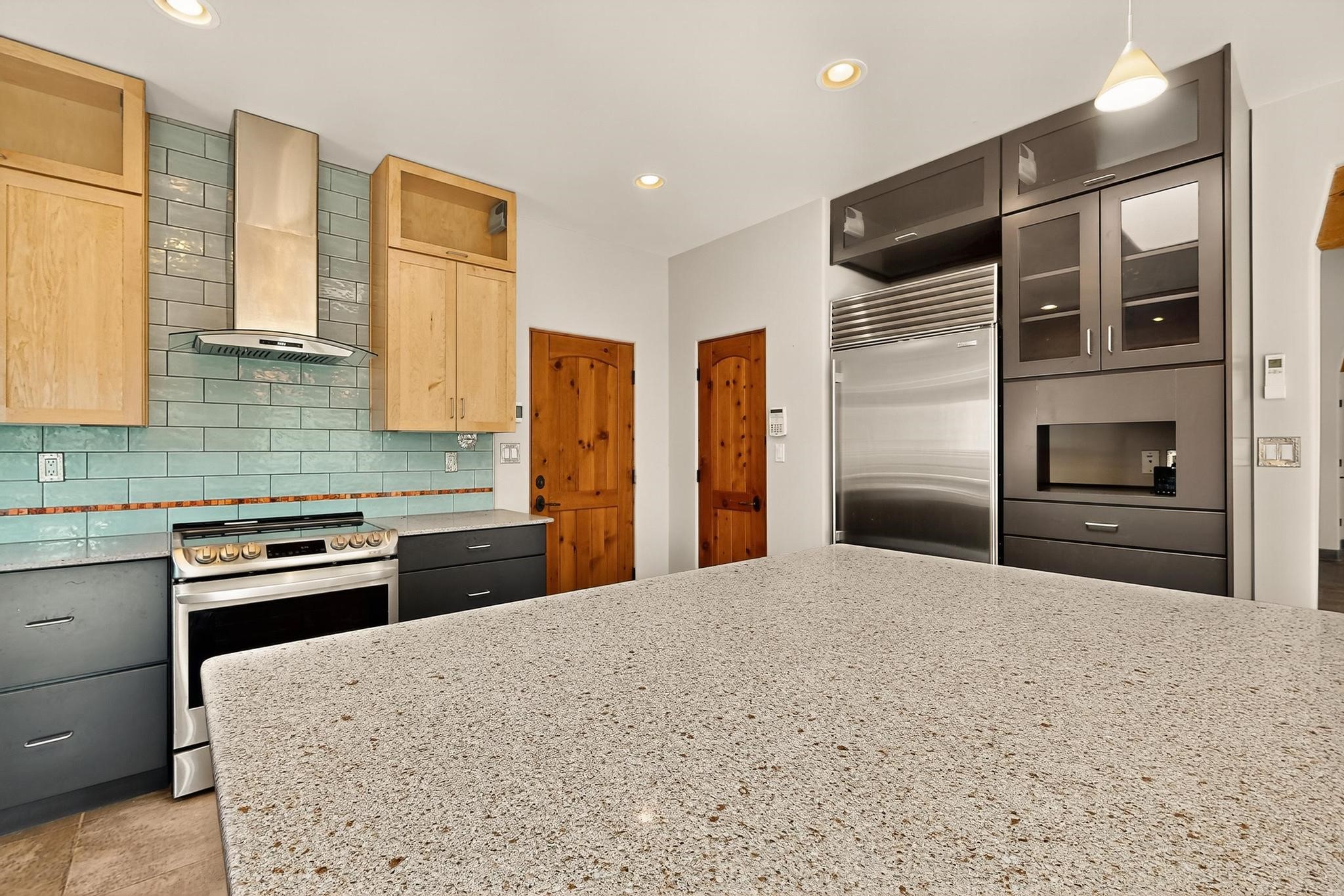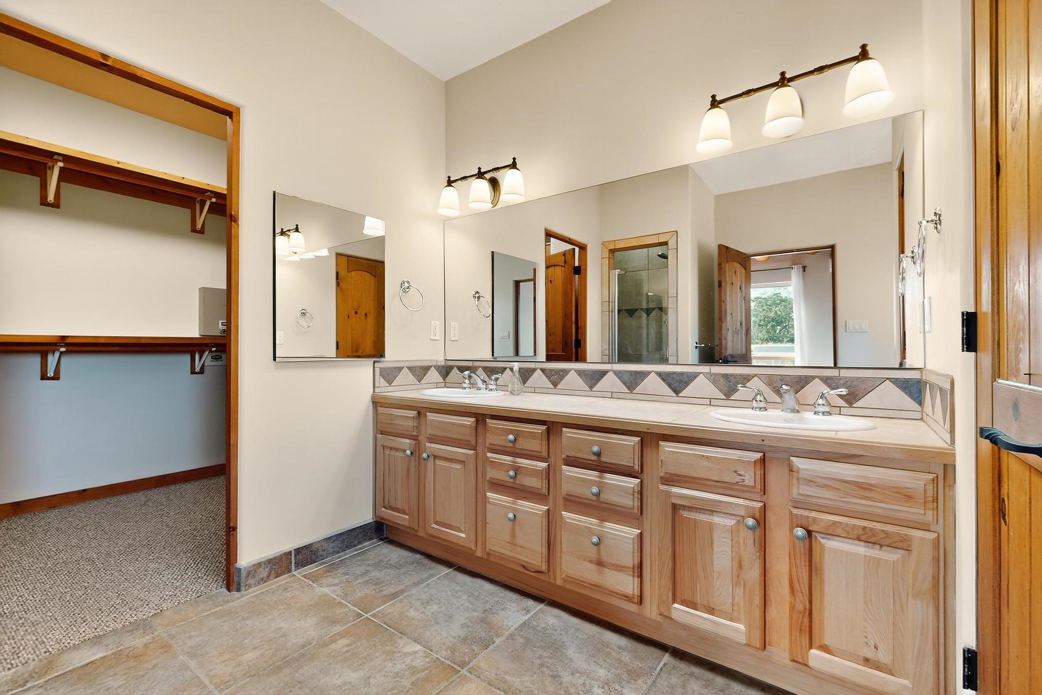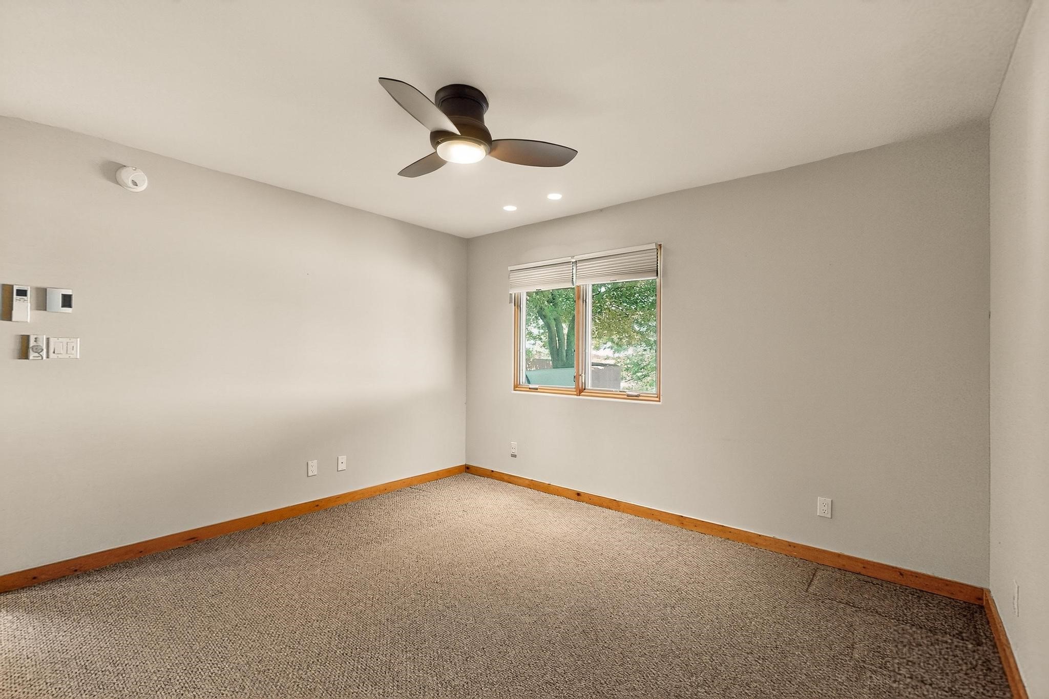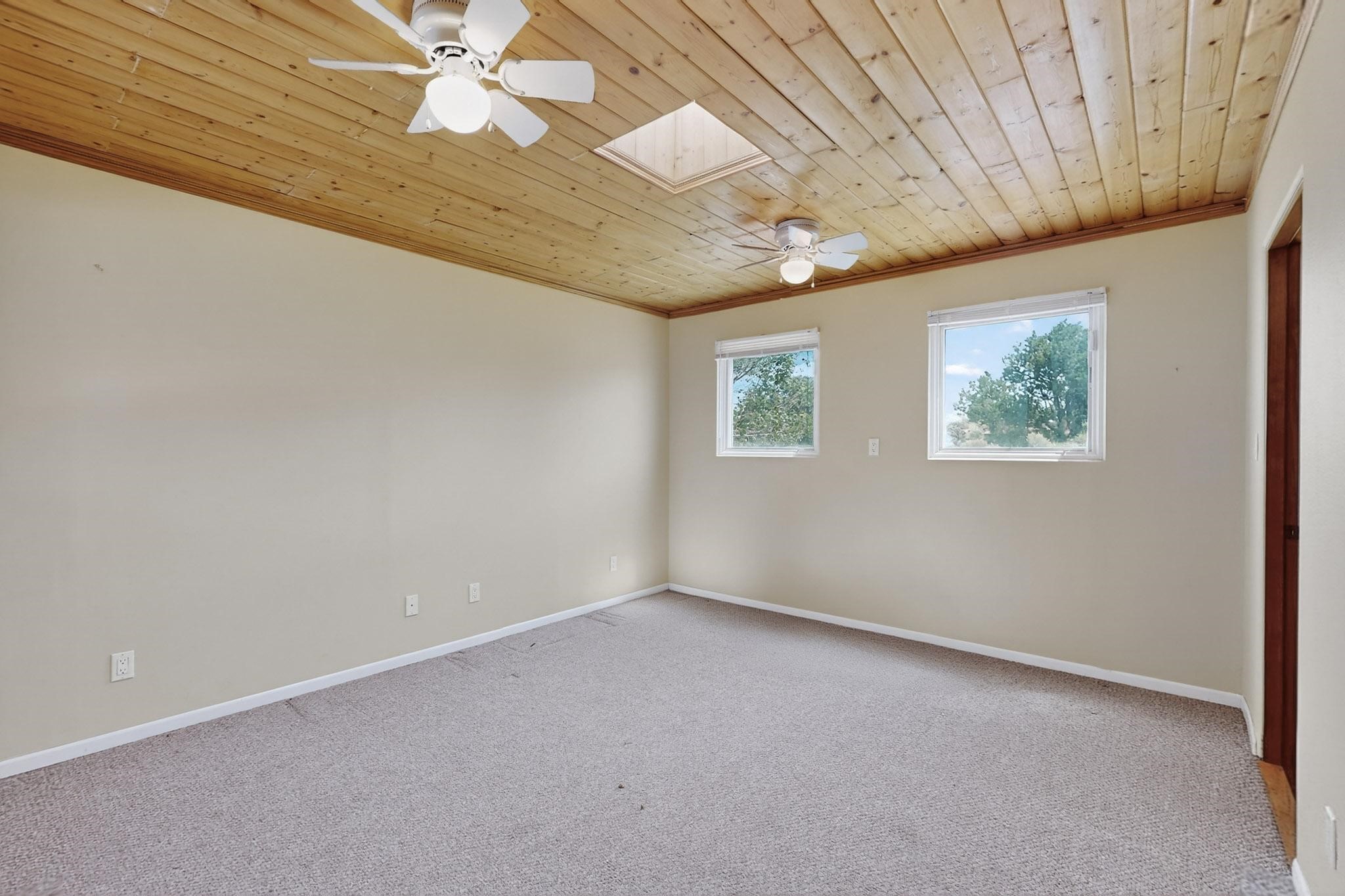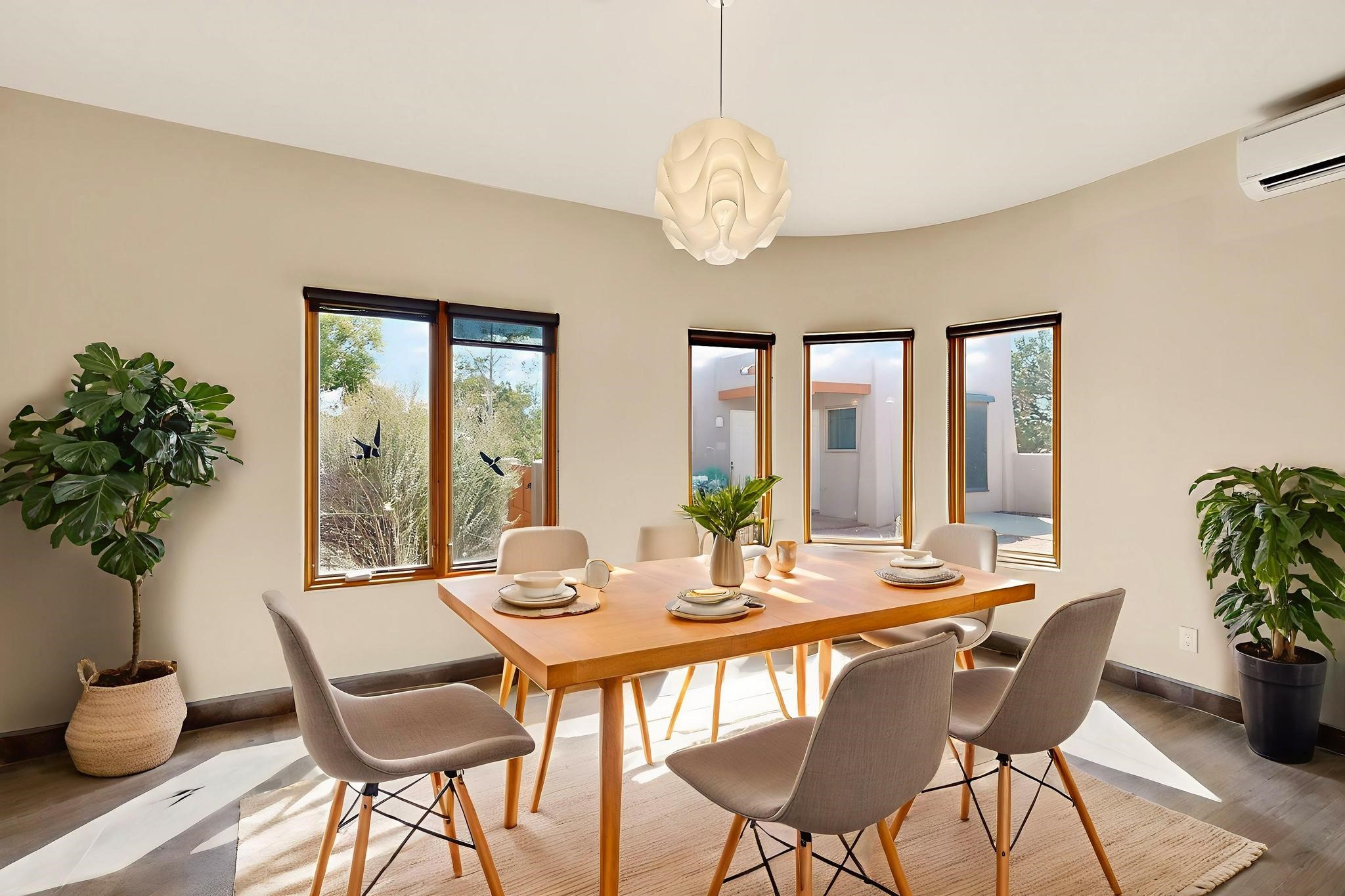 Priced to Sell! Potential multigenerational living. Expansive contemporary pueblo, split bedroom open plan design with high ceilings throughout. The main home includes a formal dining area, spacious great room with kiva fireplace, a large primary suite with kiva fireplace, large walk in closet and spa-like bathroom. Excellent separation from the two guest bedrooms and bath, plus a den/study. The kitchen has been remodeled including an induction range top, custom lighted cabinetry and 2 pantries. The radiant heating is supplemented by 5 mini splits to keep a comfortable temperature summer and winter. There is a large heated storage room/workroom for hobbies and toys plus an oversized 2 car garage with extra storage. Behind the home sits a detached 478 sq.ft. heated 2 room studio/guest with a 3/4 bathroom for extra guests/office or studio with a separate septic system. A lovely walled garden with a 3rd kiva fireplace for enjoyment plus a large portal for morning or evening outside entertainment. Enjoy the historic railway and rail trail bordering the back of your land. Plenty of guest parking with a paved driveway and easy access to Eldorado amenities, local shopping only minutes into Santa Fe.