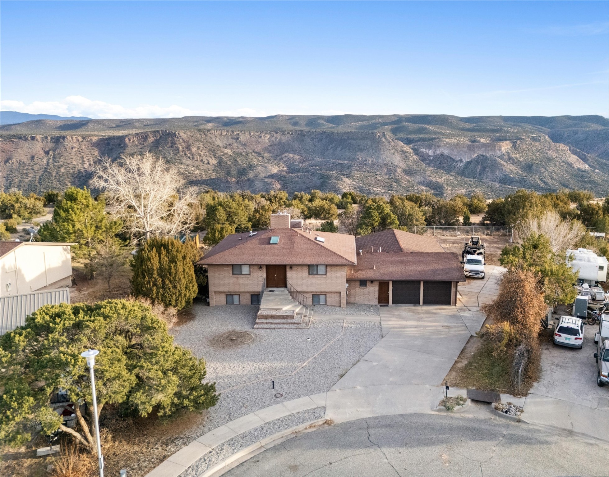 Rarely does a home offer this level of connectivity to nature. Situated on a prime lot overlooking White Rock Canyon. Situated on a prime 0.4-acre lot this 5-bedroom gem is a paradise for hikers, runners, and mountain lovers. With direct access to the Rim Trail and Overlook Park, your backyard is literally a gateway to miles of world-class adventure.Inside, the floor plan is designed for modern flexibility. Three distinct living areas provide ample room for work-from-home offices, media rooms, or creative studios. The updated kitchen and bathrooms offer a turnkey, sophisticated feel, while the oversized two-car garage includes a dedicated workshop for your mountain bikes and outdoor gear.Experience the privacy of a cul-de-sac and the drama of the Sangre de Cristo views. This is the White Rock location you've been waiting for.