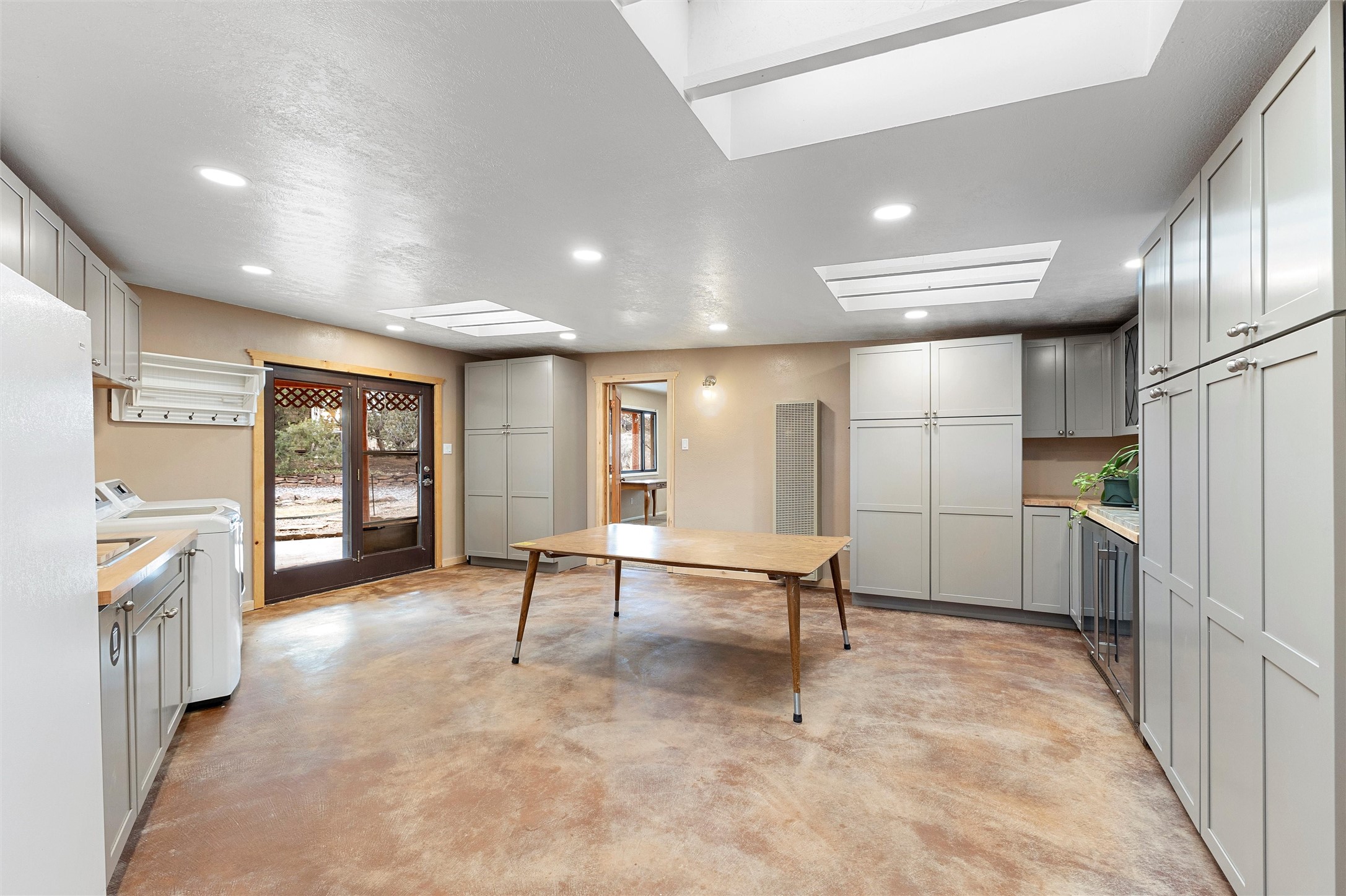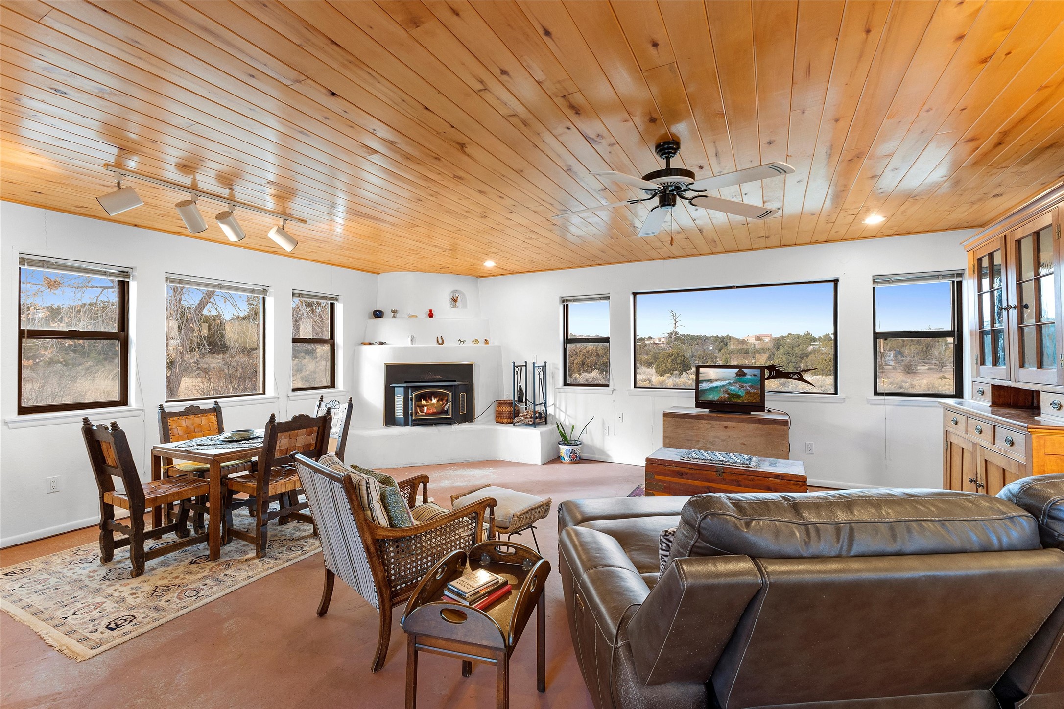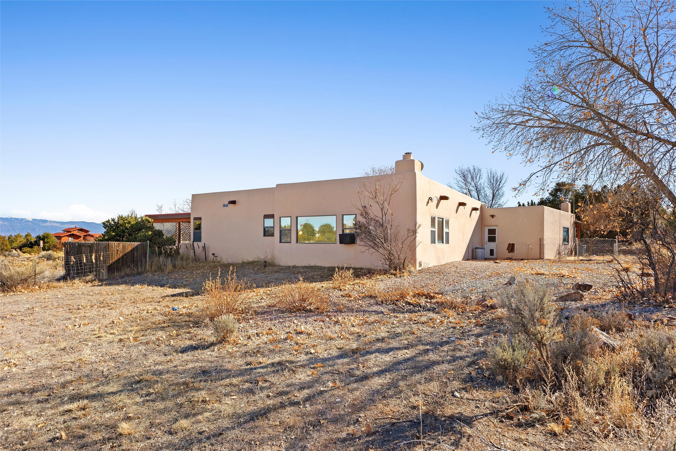 Rarely do you find a property that offers both expansive acreage and versatile living in the heart of White Rock. This extraordinary 2.2-acre La Senda estate features a spacious 4,260 sq. ft. footprint (total) including a main residence and a fully equipped guest house--perfect for a high-demand rental unit or a private multi-generational suite.The main home welcomes you with an updated chef's kitchen (2019) boasting quartz countertops, soft-close cabinetry, and modern appliances. Warm brick and wood-laminate flooring lead to a sun-drenched living area where a wood-burning stove creates a cozy mountain ambiance. Beyond the living space, a massive recreation room with its own fireplace and bath offers endless possibilities. For the hobbyist or professional, the crown jewel of the property is the 2,000 sq. ft. insulated shop with a roll-up door--large enough for a fleet of vehicles, a professional studio, or a world-class workshop. Complete with solar private carports for both dwellings, this is a rural sanctuary with modern efficiency.
