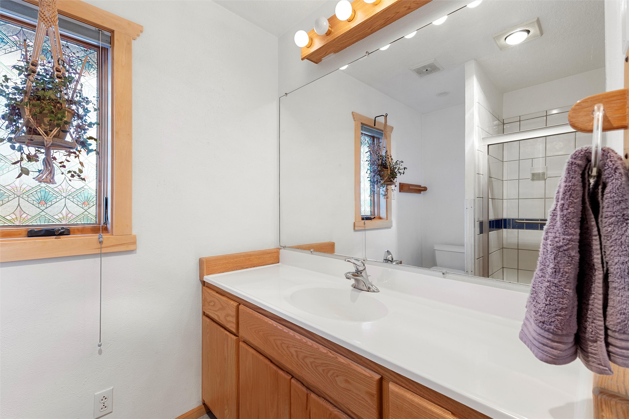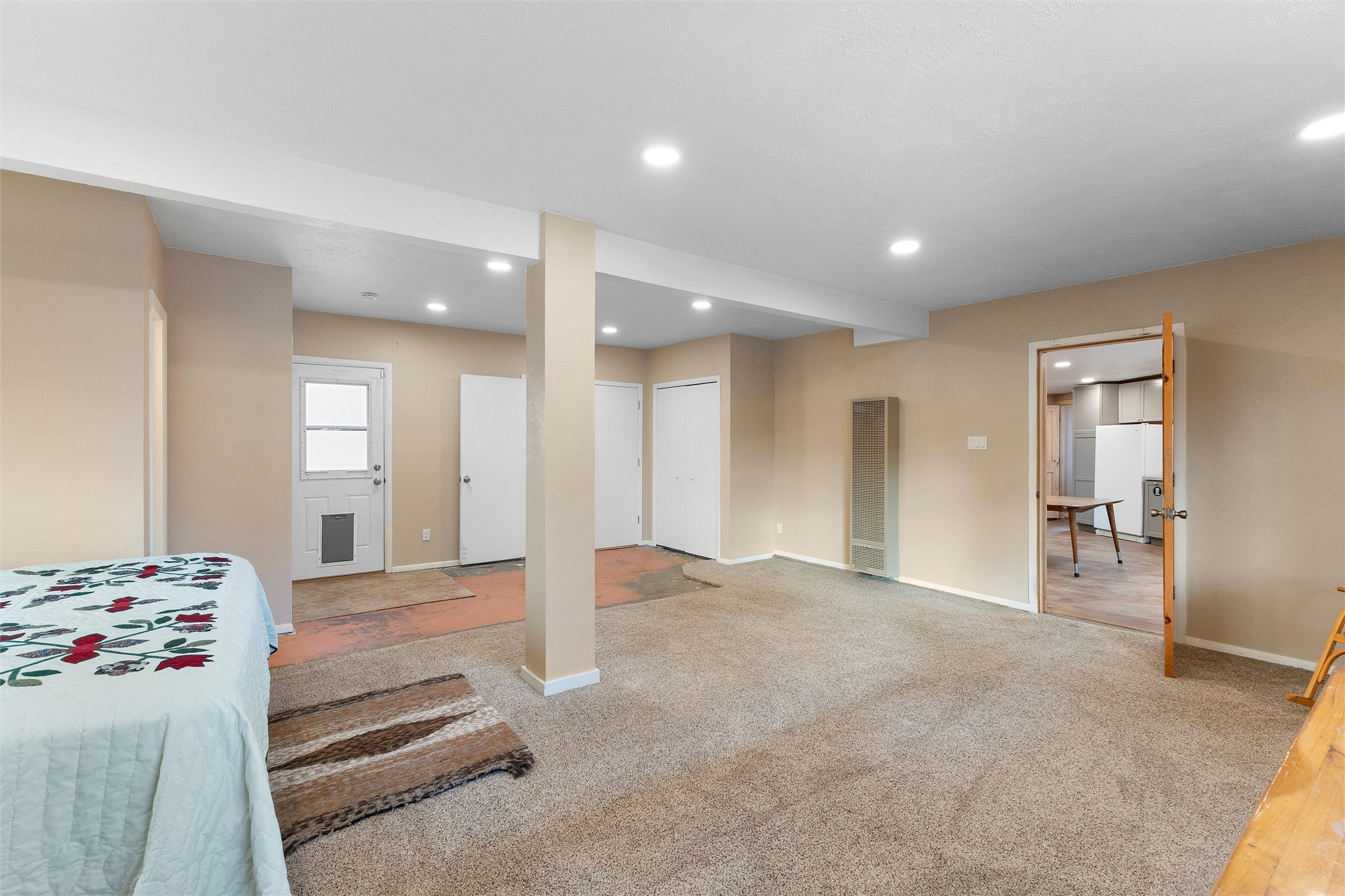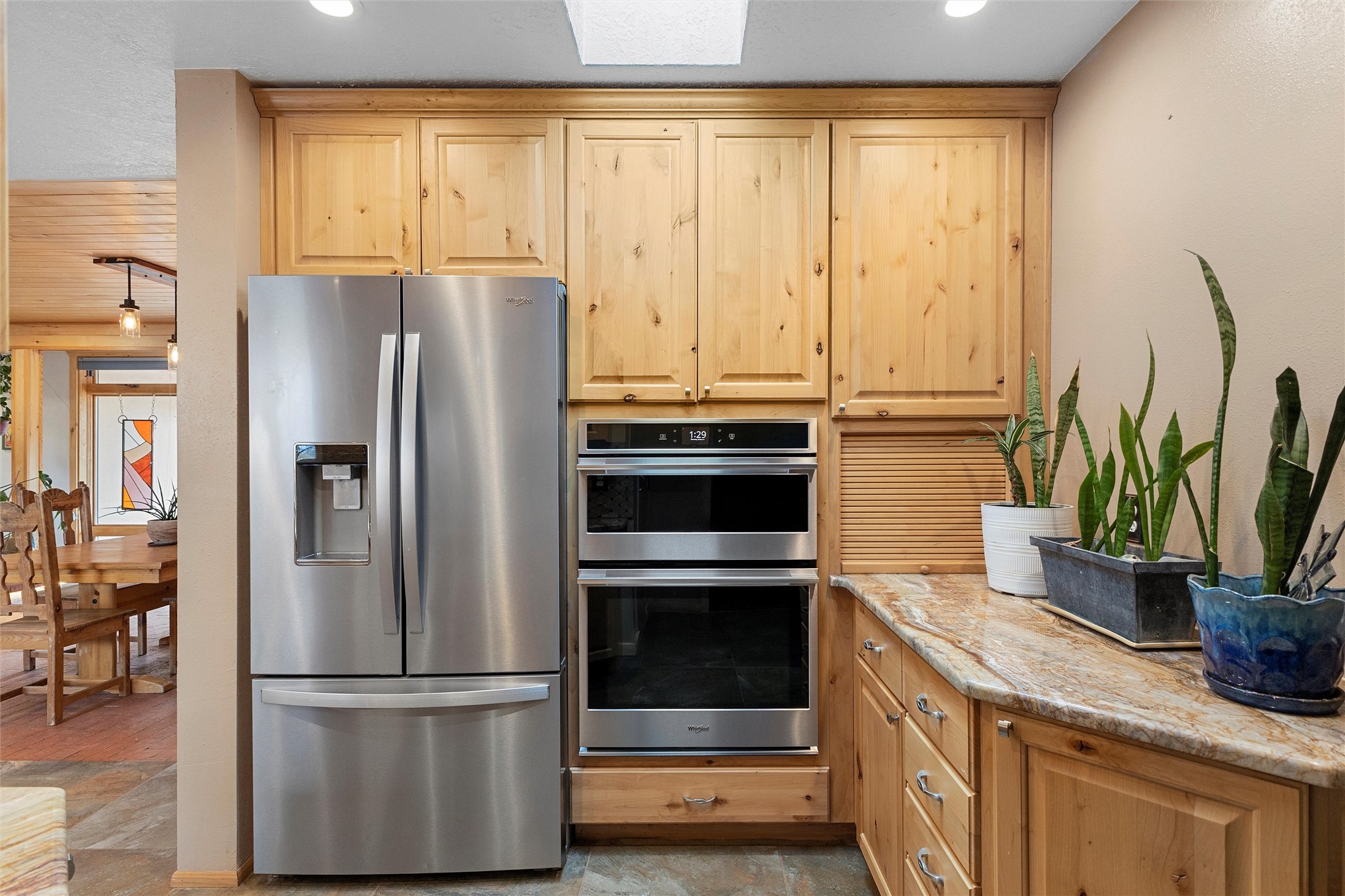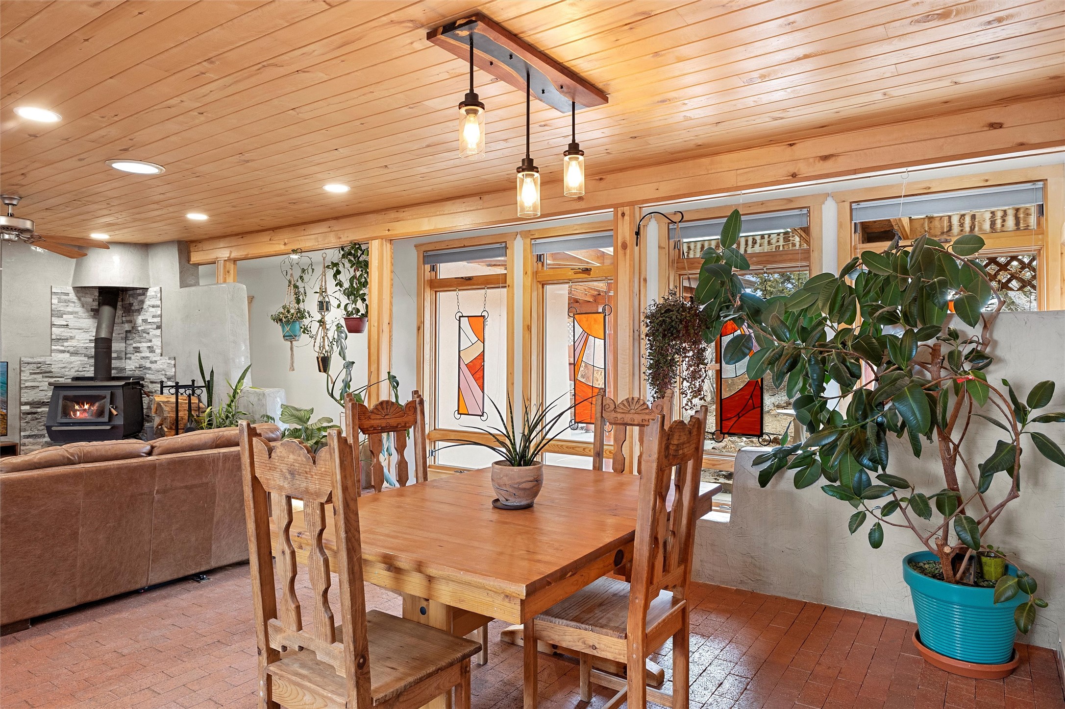 Rarely do you find a property that offers both expansive acreage and versatile living in the heart of White Rock. This extraordinary 2.2-acre La Senda estate features a spacious 4,260 sq. ft. footprint (total) including a main residence and a fully equipped guest house--perfect for a high-demand rental unit or a private multi-generational suite.The main home welcomes you with an updated chef's kitchen (2019) boasting quartz countertops, soft-close cabinetry, and modern appliances. Warm brick and wood-laminate flooring lead to a sun-drenched living area where a wood-burning stove creates a cozy mountain ambiance. Beyond the living space, a massive recreation room with its own fireplace and bath offers endless possibilities. For the hobbyist or professional, the crown jewel of the property is the 2,000 sq. ft. insulated shop with a roll-up door--large enough for a fleet of vehicles, a professional studio, or a world-class workshop. Complete with solar private carports for both dwellings, this is a rural sanctuary with modern efficiency.
