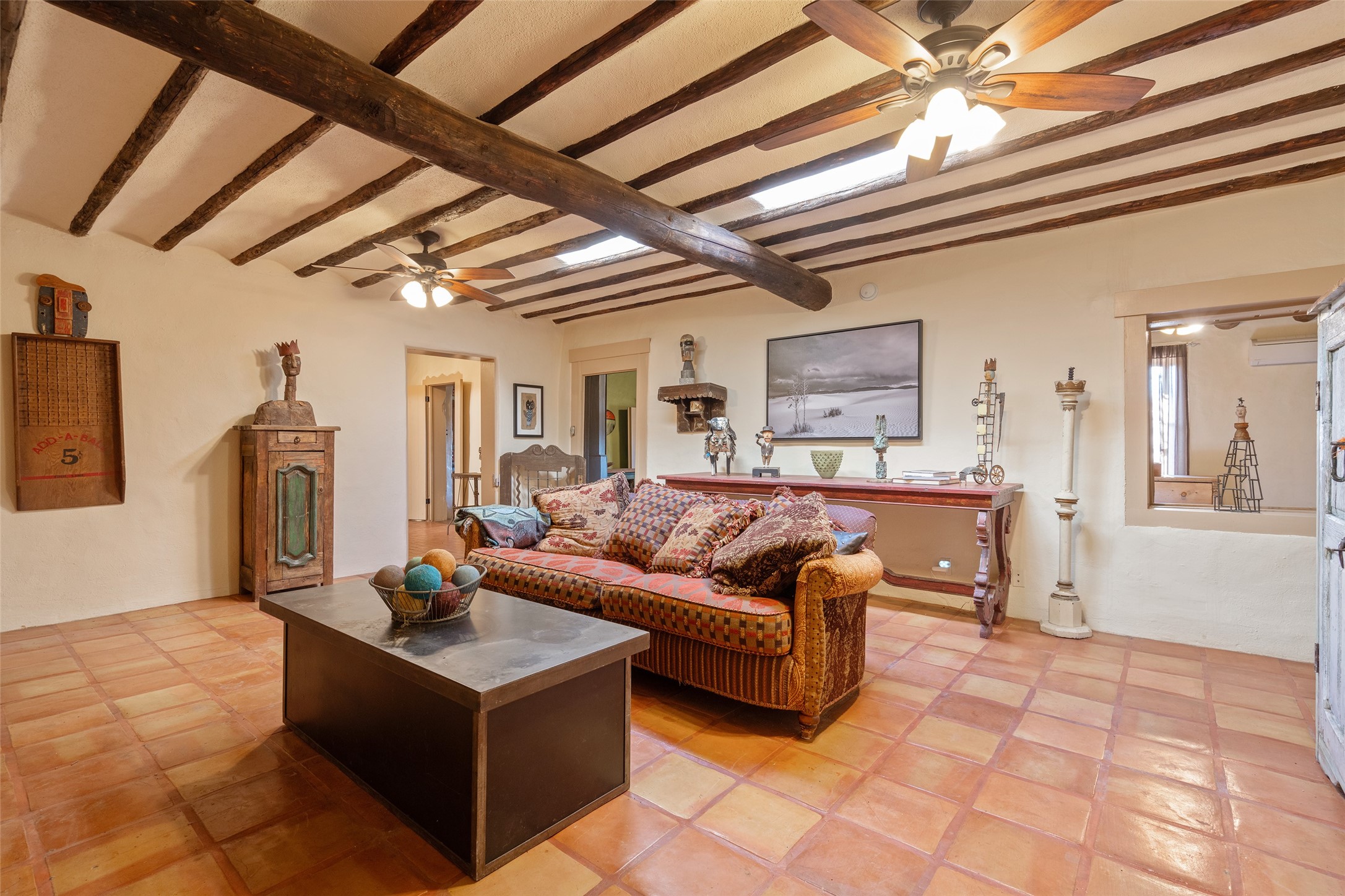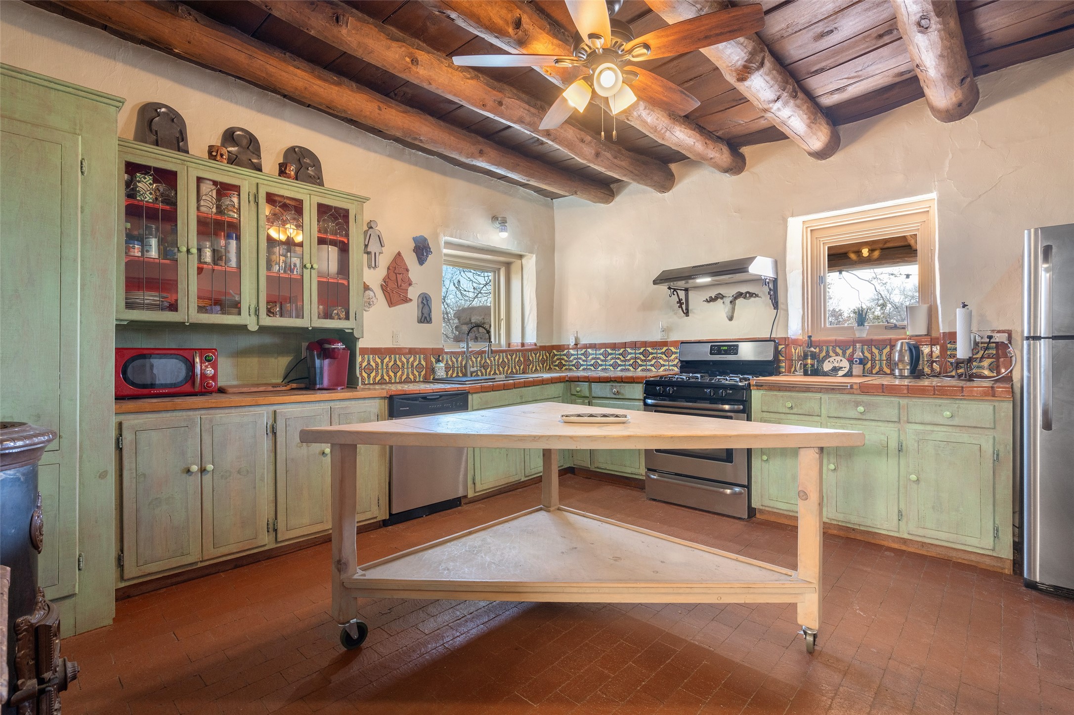 Something Old. Something New. Rare Commercial Opportunity.An exceptional and singular compound in the heart of historic Galisteo, this remarkable property weaves together centuries of heritage with thoughtful modern design. Dating to the 1800s, the 3-bedroom, 2-bath double-adobe Main House once housed the beloved La Mancha Restaurant (1959-1971), where the Ortiz family's New Mexican cuisine earned widespread acclaim.Tastefully renovated in 2012, the Main House features new brick floors, interior plaster walls, updated kitchen and baths, modern plumbing fixtures, and skylights, while honoring the home's original character, authenticity, and soul.Complementing the historic residence is a striking studio/gallery building originally designed by award-winning architect Beverly Spears and constructed in 1995 using Rastra construction for artist Linda Durham. A comprehensive 2006 remodel transformed the space into an extraordinary studio, gallery, and entertaining venue, featuring soaring 12-foot ceilings, exceptional lighting, integrated sound throughout, a home theater with surround sound and retractable screen, a bath, and a chef's kitchen equipped with Wolf, Sub-Zero, Miele, and Fisher & Paykel appliances, Bob Pepper custom cabinetry, and a generous pantry.The inviting Guest House, built in 2006, offers a warm and comfortable retreat with a living room, bedroom with fireplace, kitchen, and bath, ideal for visitors or extended stays.Commercially zoned and among the few such properties in Galisteo, this compound presents rare possibilities for a boutique B&B, restaurant, gallery, or creative retreat. Enclosed by historic adobe and stone walls and graced with fruit trees, this truly special offering invites vision, imagination, and opportunity in one of New Mexico's most cherished villages.