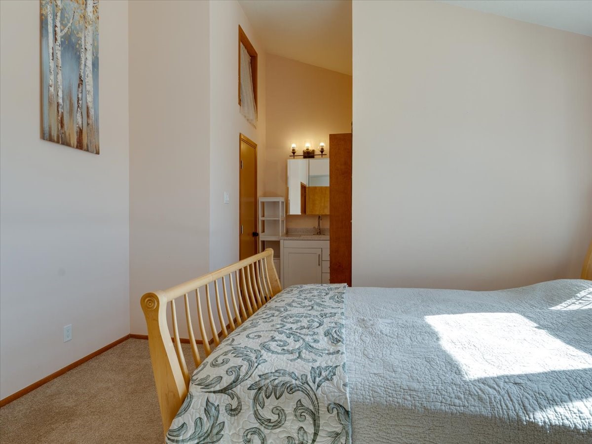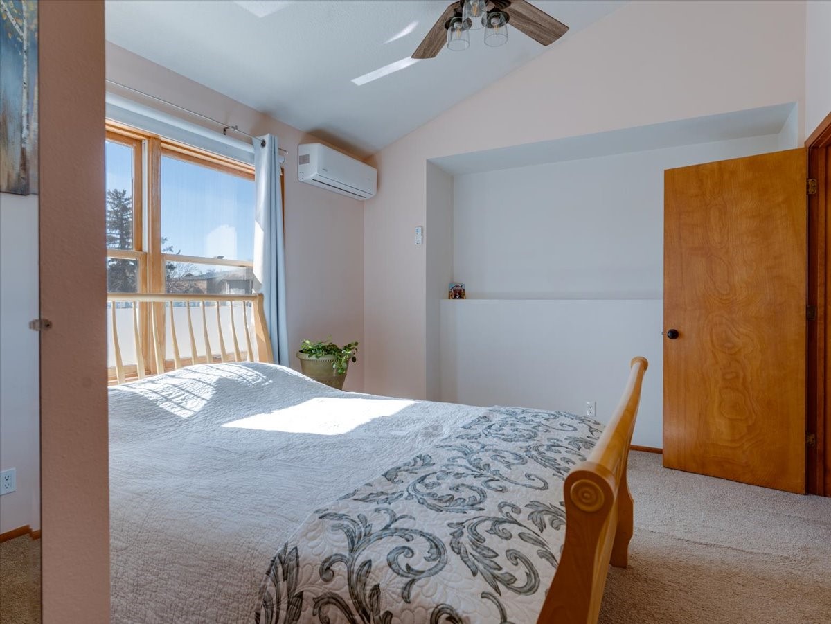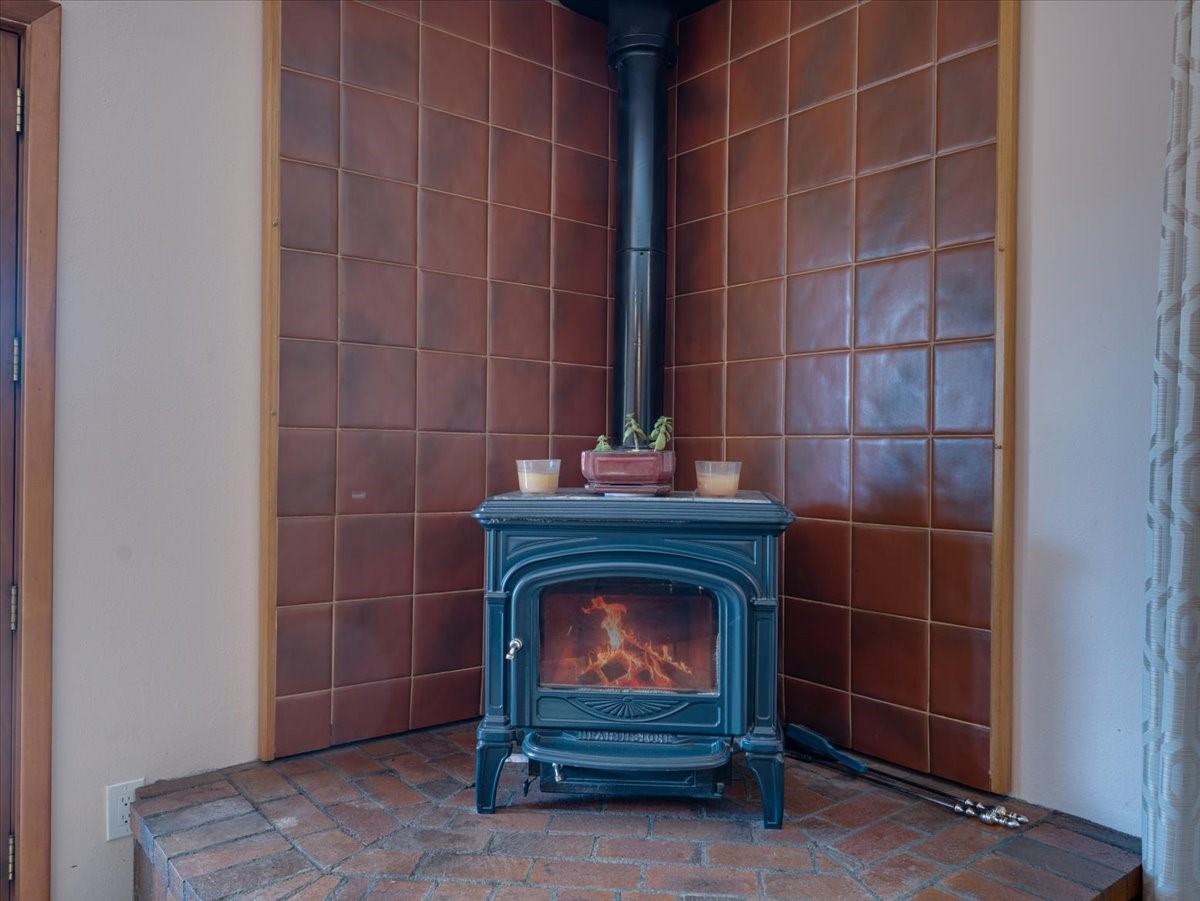 Charming Eastern area home that has been lovingly maintained and thoughtfully upgraded throughout. A beautiful wood front door with stained glass greets you setting the tone for the character found inside. Original hardwood floors lead into a spacious dining area open to the second level, creating a warm and inviting atmosphere. The kitchen sits at the front of the home and features a garden window, eat-in bar, refaced cabinetry (2019), and updated appliances replaced between 2020 and 2022. Laundry room and access to the attached heated garage with 240 volt outlet for EV charging are conveniently located just off the kitchen. The sunken living area offers beautiful windows, brick flooring, and a cozy corner wood-burning stove -- perfect for chilly months. A bright bonus room off the living room with lovely tile work and separate entry makes a perfect office, gym, yoga studio, or playroom. Two generously sized bedrooms on the main level share an updated full bath with solid-surface countertop and tiled tub surround. Upstairs, the primary suite features vaulted ceilings and a full ensuite bath. An additional upstairs bedroom with vaulted ceilings provides flexible space for guests, family, or a home office. The fenced backyard is a pollinator's dream with apple, pear, blue spruce and aspen trees -- plus a charming chicken coop that could easily be converted into a dog run. Major updates provide peace of mind, including a full electrical rewire with EV charging receptacle (November 2019), water heater with recirculating system (November 2019), refinished hardwood floors (November 2019), updated ceiling fans (November 2019), solar panels installed in August 2020, and HVAC. This beautifully updated home offers timeless charm, modern efficiency, and a fantastic location -- truly move-in ready and a must see!