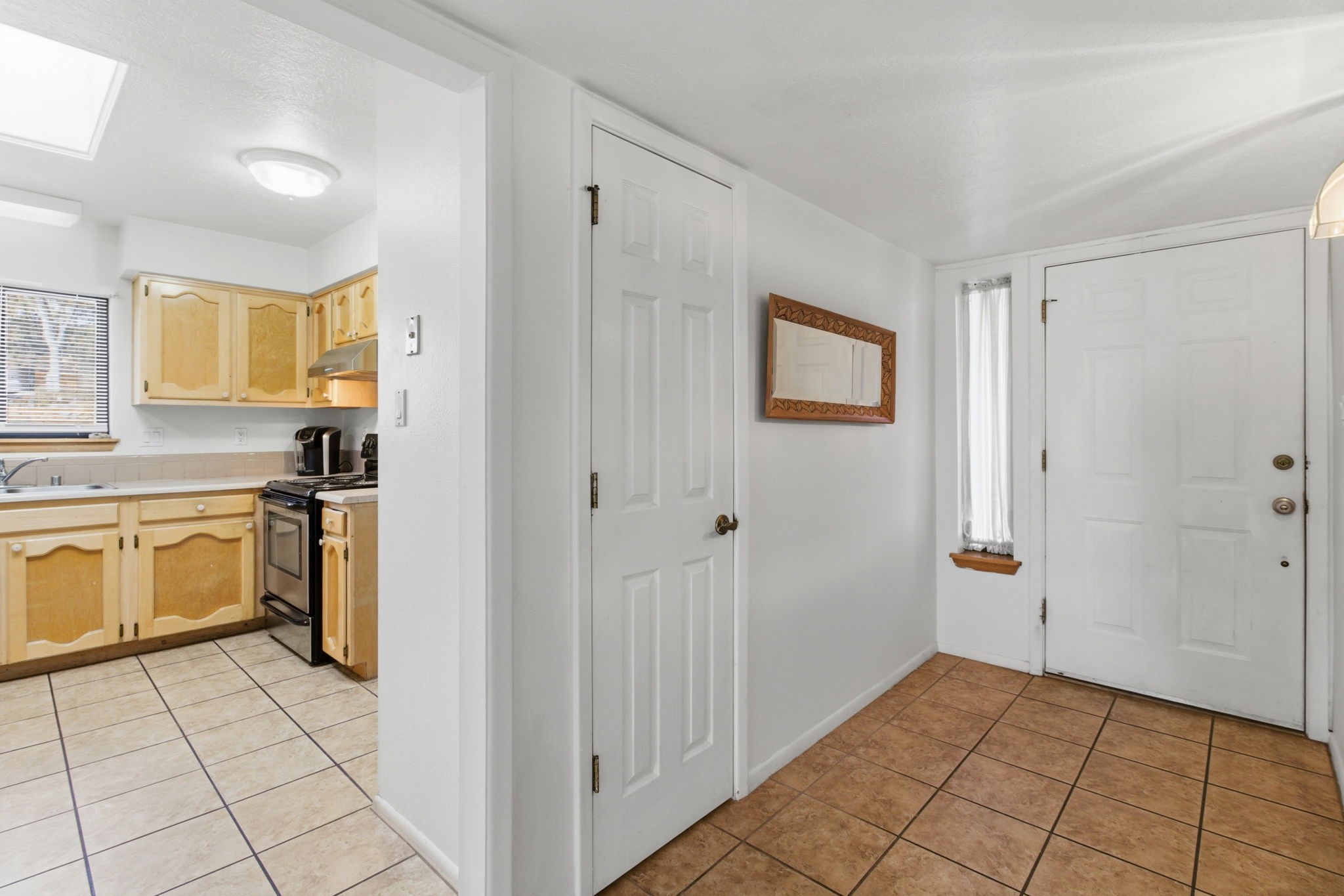 Nestled in the sought-after Park Plazas neighborhood, this beautifully maintained single-level, detached custom home offers comfort, warmth, and classic Santa Fe charm. With 2 bedrooms and 2 baths, the home backs to peaceful common areas and captures breathtaking sunset views of the Sandia Mountains. The spacious, light-filled kitchen features newer appliances, abundant cabinetry, and generous counter space--perfect for everyday living and entertaining.The dining room is enhanced by two skylights and a pony wall that opens to a large, square living room with high, tongue-and-groove ceilings, creating an inviting sense of space and character. A never-used wood-burning fireplace anchors the corner, while French doors lead to a covered portal, ideal for relaxing and enjoying the scenery. Thoughtfully cared for, the home includes a newer water heater, a well-maintained furnace (inspected twice yearly), newer appliances, a newer garage door, and a recently inspected roof.Park Plazas is a cozy, welcoming community close to shopping and all Santa Fe amenities, offering miles of walking trails, an off-leash dog park, tennis and pickleball courts, a community garden, and more. This lovely home truly has it all--and is not to be missed.
