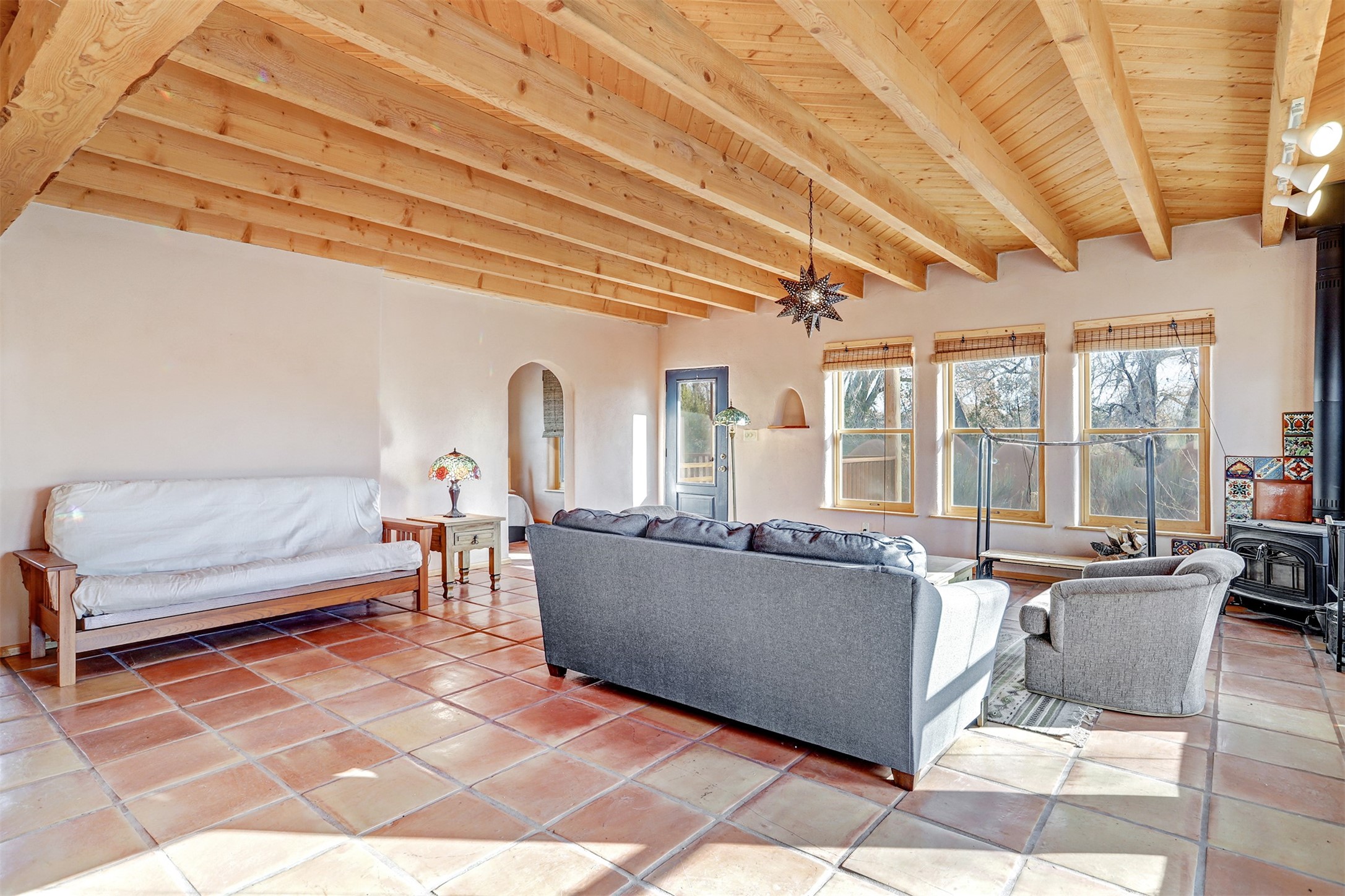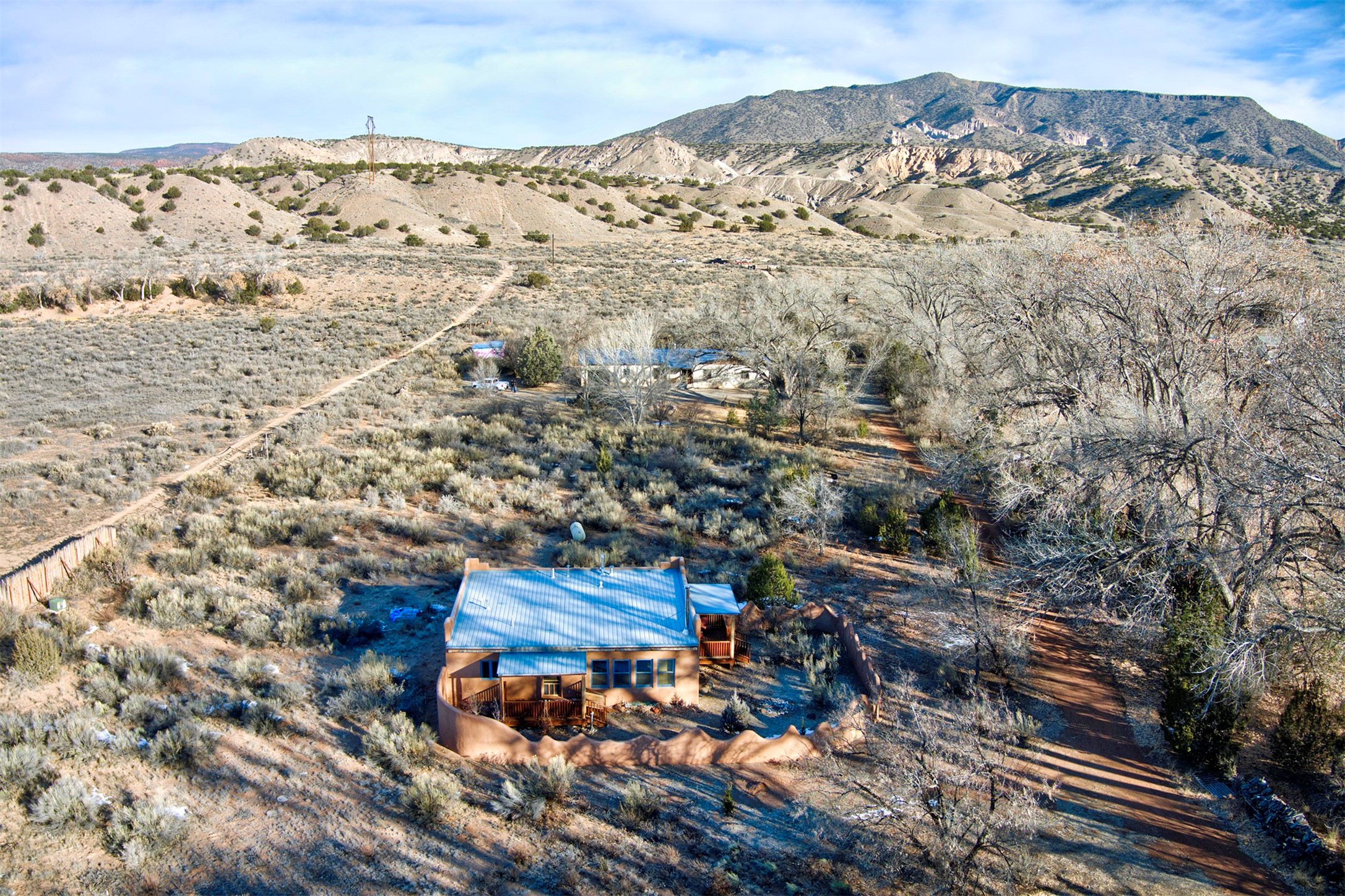 Nestled along the banks of the Rio Chama, this unique Abiquiu property offers a blend of classic charm, modern flexibility, and breathtaking natural beauty. The ranch-style main home, featuring warm wood floors, three bedrooms, and two bathrooms, with a comfortable, functional layout ideal for everyday living. Complementing the main home is a newer Pueblo-style casita, offering two bedrooms and one bathroom. With its own distinct character, the casita is perfect for guests, extended family, or potential rental income. The property is set among incredible, mature cottonwood trees, creating a serene, private setting with direct access to the Rio Chama. An exceptional backdrop for outdoor living, recreation, and relaxation. Enjoy the sights and sounds of nature right outside your door, all while being located in the heart of the iconic Abiquiu area. Conveniently located approximately 30 minutes from Los Alamos, 50 minutes from Santa Fe, and 60 minutes from Taos, this property offers peaceful seclusion without sacrificing access to art, culture, and amenities. A truly special property that captures the essence of Northern New Mexico living.