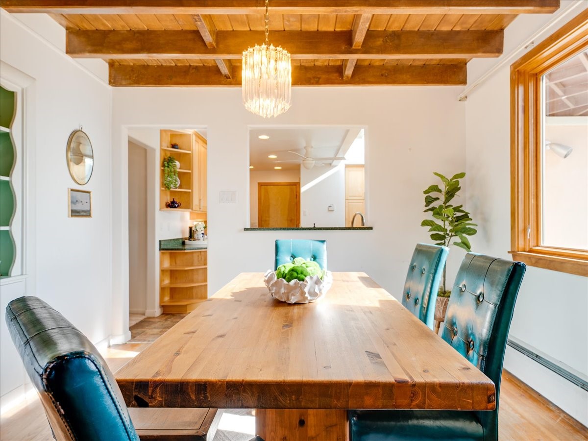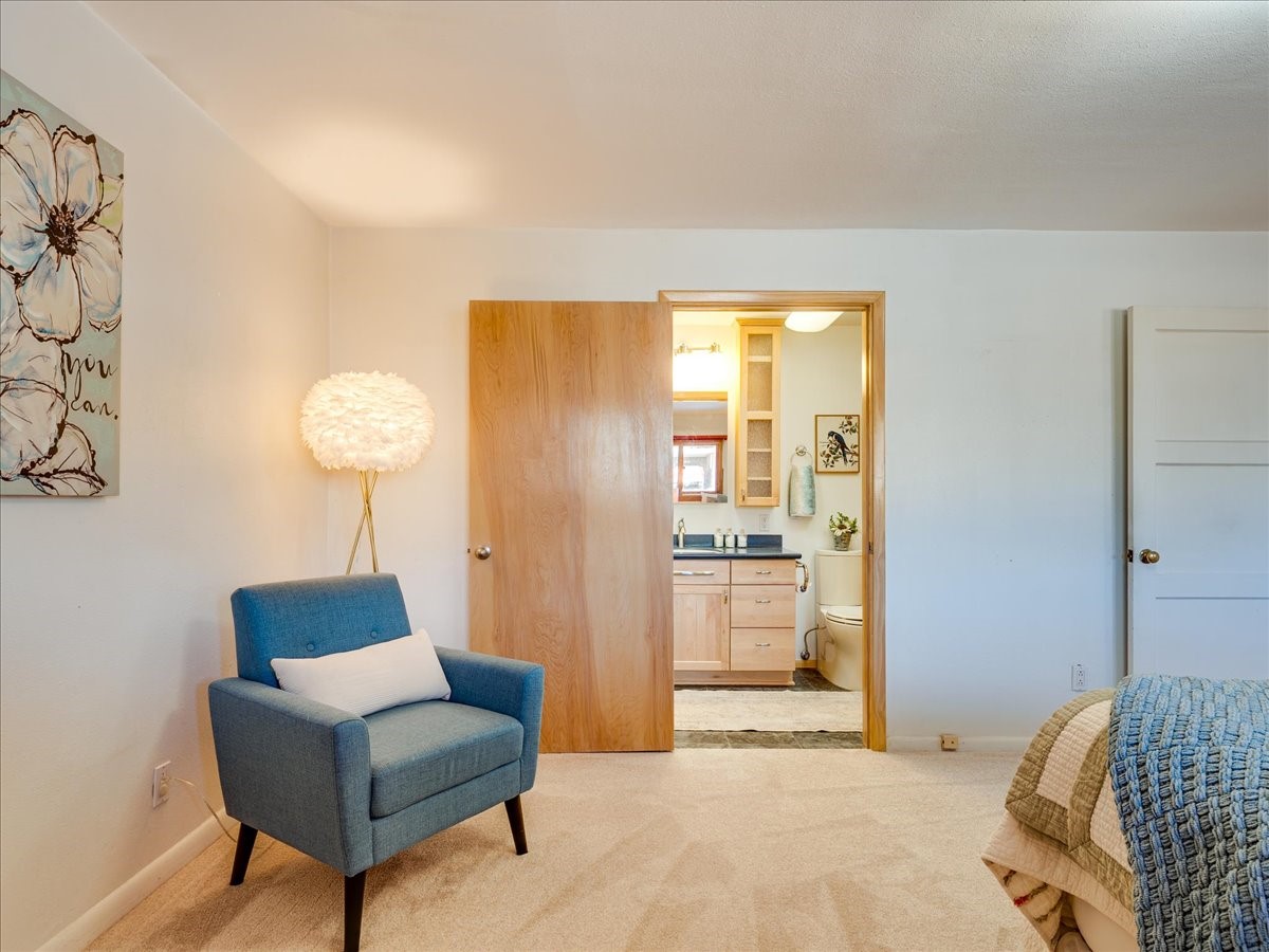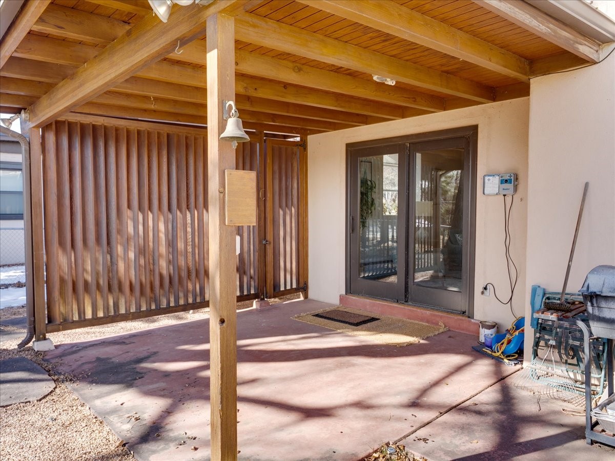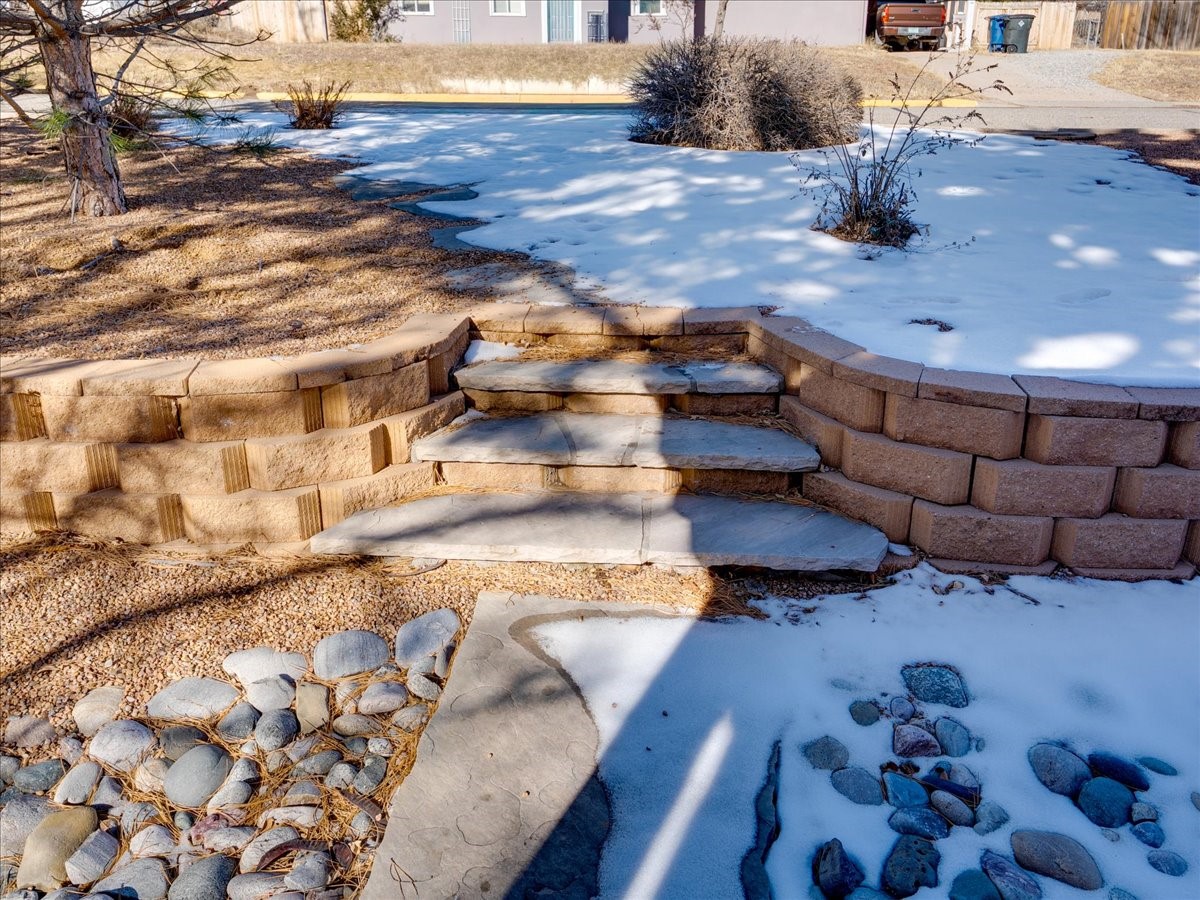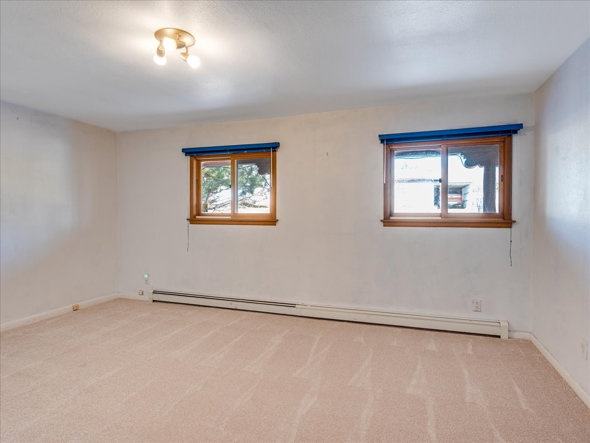 This charming Western Area home offers convenient access to bus stops, downtown, and the high school. While it retains the classic charm of Western Area homes, it has been thoughtfully updated to meet modern living needs. The original floor plan featured three bedrooms and one bathroom, but it has been reconfigured to create two spacious bedrooms, including a generous primary suite with a luxurious, updated bathroom. This area has new carpeting. In 2012, the kitchen underwent a major remodel and is truly a chef's delight, featuring an island with an induction cooktop, double ovens, and cabinetry equipped with pull-out organization drawers. Two built-in pantries provide exceptional storage, while two large skylights fill the space with natural light. The kitchen also offers direct access to the beautiful backyard, making it ideal for both everyday living and entertaining. The Zia Addition on the south side of the home added two additional bedrooms and a bathroom, providing flexible space for guests, family, or a home office. The backyard backs to Sullivan Field, allowing you to enjoy Friday Night Lights football, soccer games, or band performances from the comfort of your own yard. This will be great for entertaining friends and family. The landscaping has been professionally maintained by Los Alamos Landscaping for several years. The home features multiple LG mini-split units providing both air conditioning and heat with independent temperature controls for each room. The oversized garage includes an outlet for electric vehicle charging and features a full wall of storage cabinets for excellent organization. A French drain in the driveway outside the garage captures runoff from snow and rain, adding both function and peace of mind. This well-maintained home combines location, charm, and modern upgrades in a truly special setting. Schedule a private showing today!