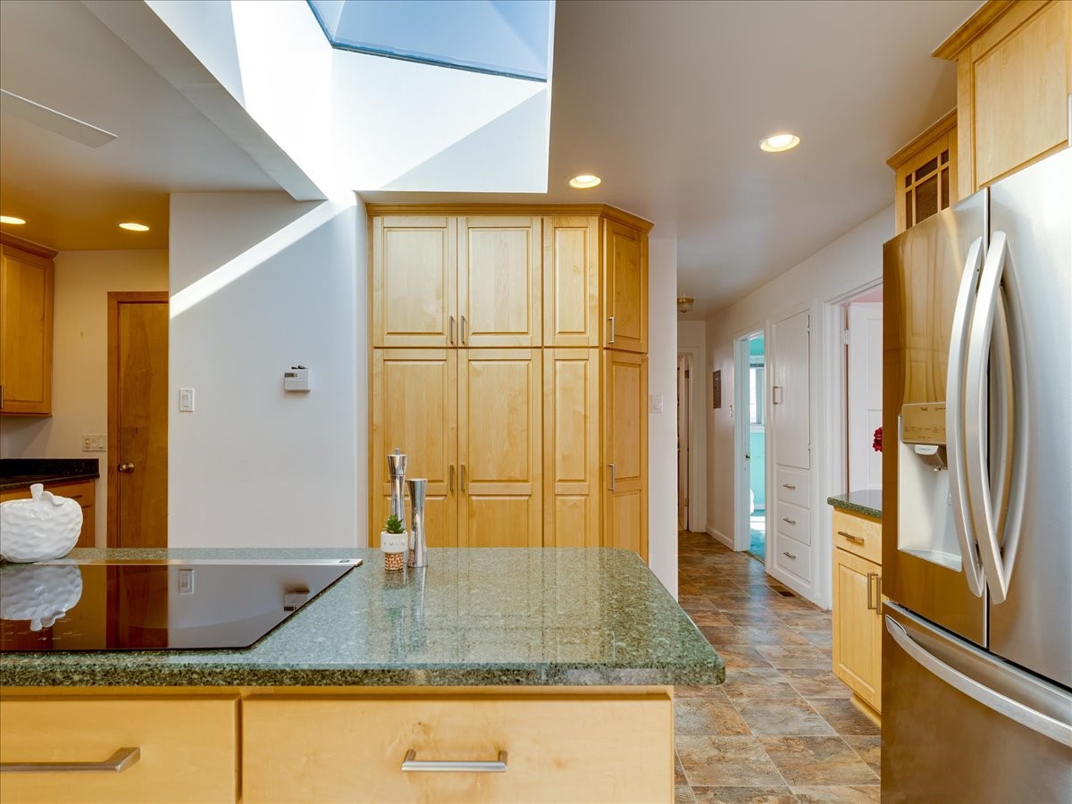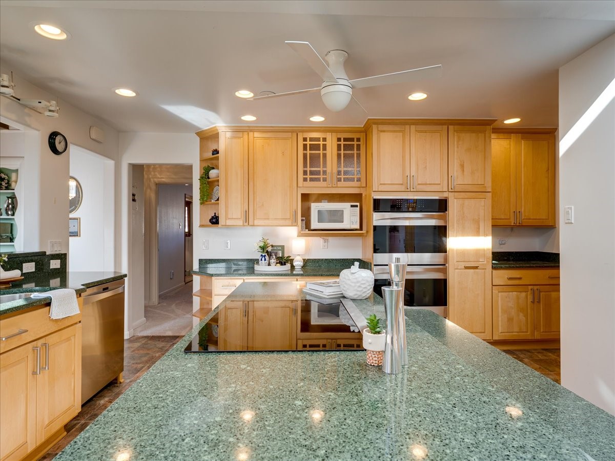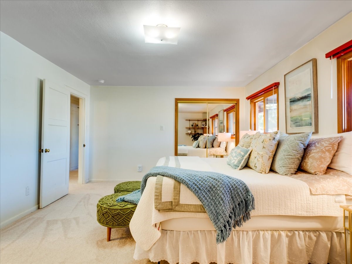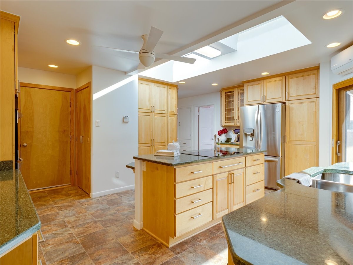 This charming Western Area home offers convenient access to bus stops, downtown, and the high school. While it retains the classic charm of Western Area homes, it has been thoughtfully updated to meet modern living needs. The original floor plan featured three bedrooms and one bathroom, but it has been reconfigured to create two spacious bedrooms, including a generous primary suite with a luxurious, updated bathroom. This area has new carpeting. In 2012, the kitchen underwent a major remodel and is truly a chef's delight, featuring an island with an induction cooktop, double ovens, and cabinetry equipped with pull-out organization drawers. Two built-in pantries provide exceptional storage, while two large skylights fill the space with natural light. The kitchen also offers direct access to the beautiful backyard, making it ideal for both everyday living and entertaining. The Zia Addition on the south side of the home added two additional bedrooms and a bathroom, providing flexible space for guests, family, or a home office. The backyard backs to Sullivan Field, allowing you to enjoy Friday Night Lights football, soccer games, or band performances from the comfort of your own yard. This will be great for entertaining friends and family. The landscaping has been professionally maintained by Los Alamos Landscaping for several years. The home features multiple LG mini-split units providing both air conditioning and heat with independent temperature controls for each room. The oversized garage includes an outlet for electric vehicle charging and features a full wall of storage cabinets for excellent organization. A French drain in the driveway outside the garage captures runoff from snow and rain, adding both function and peace of mind. This well-maintained home combines location, charm, and modern upgrades in a truly special setting. Schedule a private showing today!