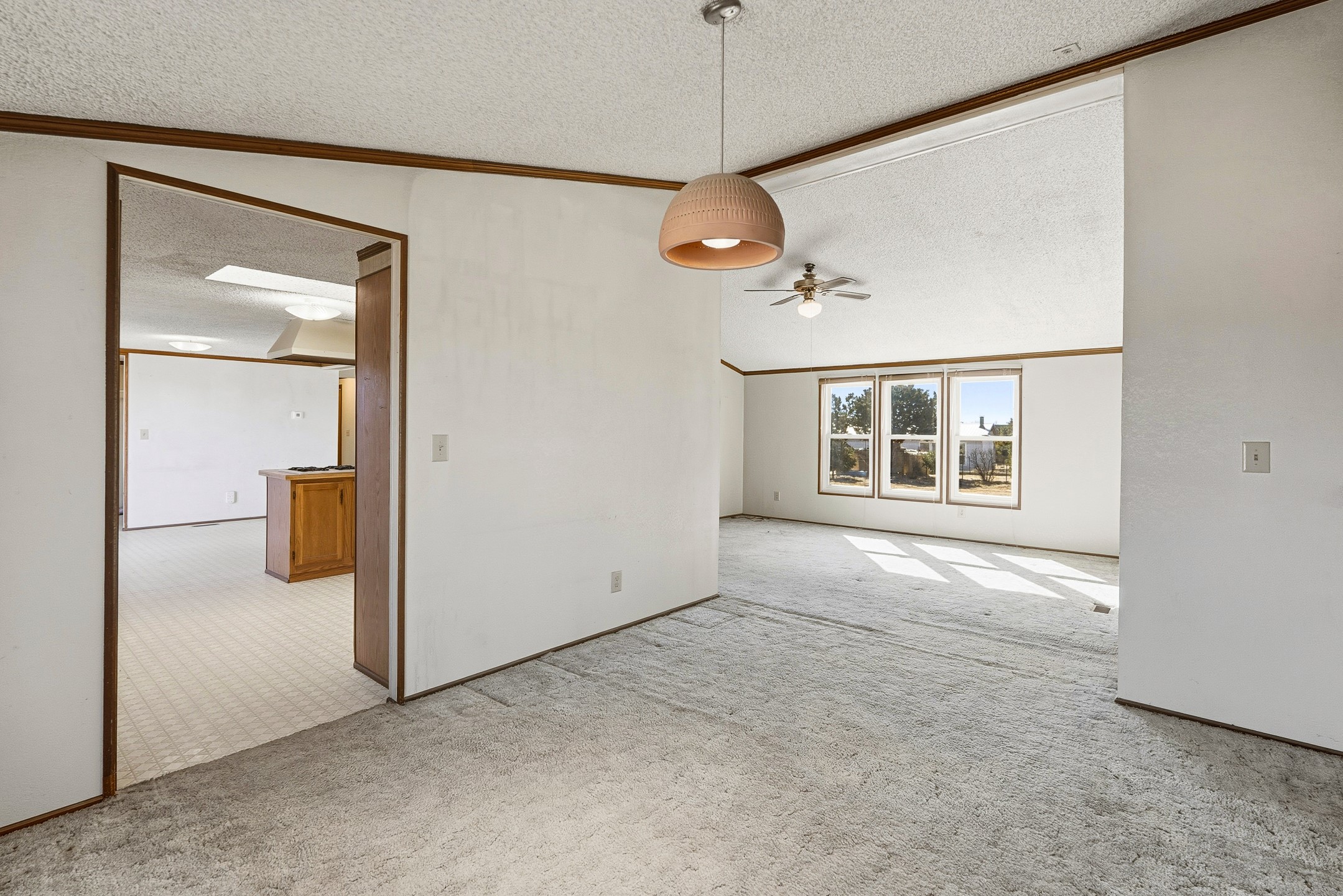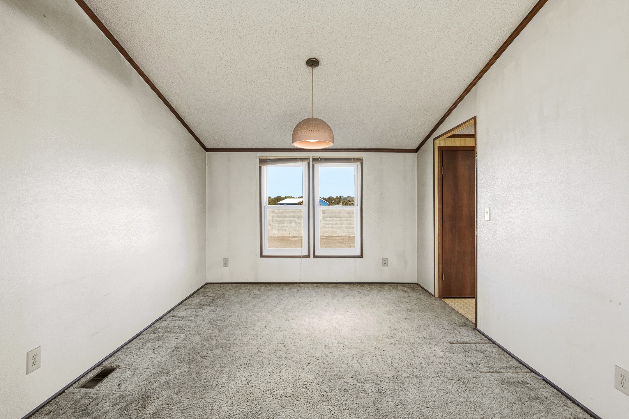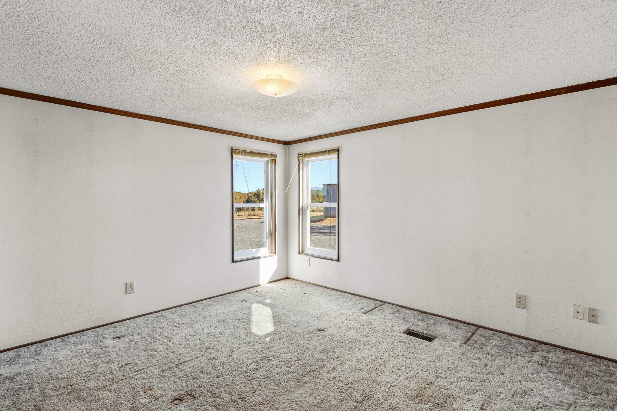 Peaceful private home in a rural setting with easy access to amenities and downtown Santa Fe. Enclosed front yard, metal roofing, newer windows, furnace and refrigerated ac. Theis in need of updating and there is deferred maintenance. Seller has priced it accordingly and does not intend to make repairs or concessions due to the property condition. Large lot is fully fenced for your privacy and enjoyment.