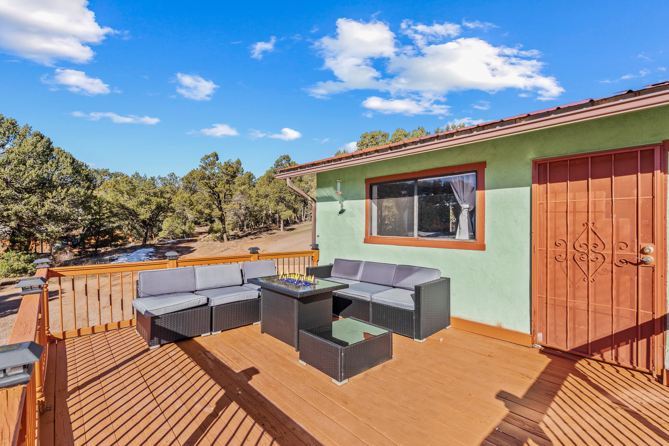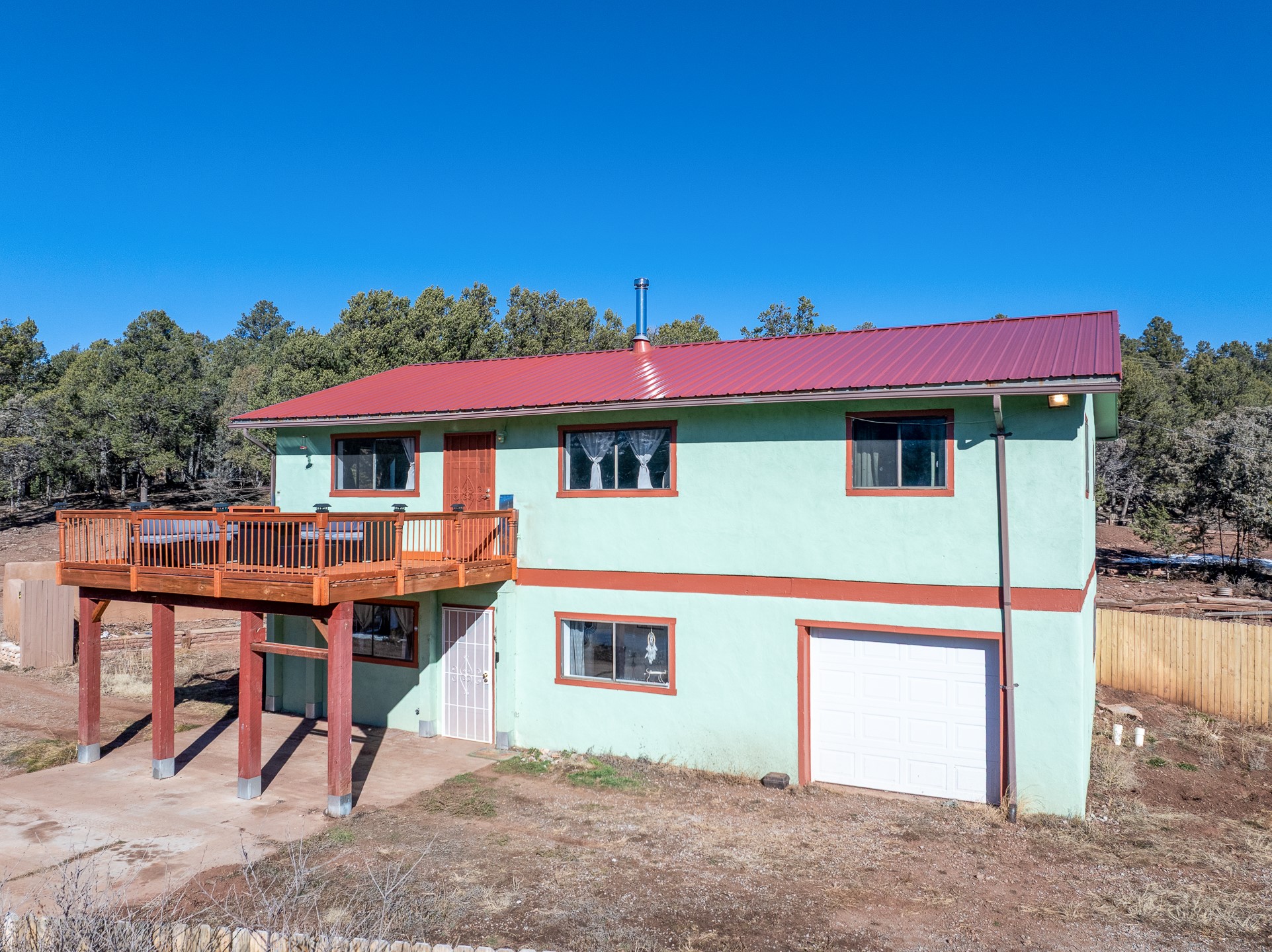 Situated on desirable acreage in Glorieta, 11 Eusebio Road offers expansive views and exceptional potential. This 3-bedroom, 2-bath home features a large downstairs great room and an elevated deck ideal for enjoying sweeping mountain and valley vistas. Additional features include a carport and a new garage door. The water heater, boiler, and baseboard heating were installed in 2025. With room to expand or customize, this property presents a unique opportunity to create a retreat or full-time residence in a peaceful, scenic setting.