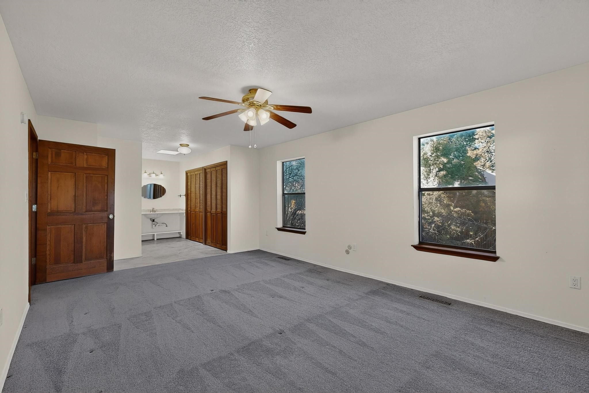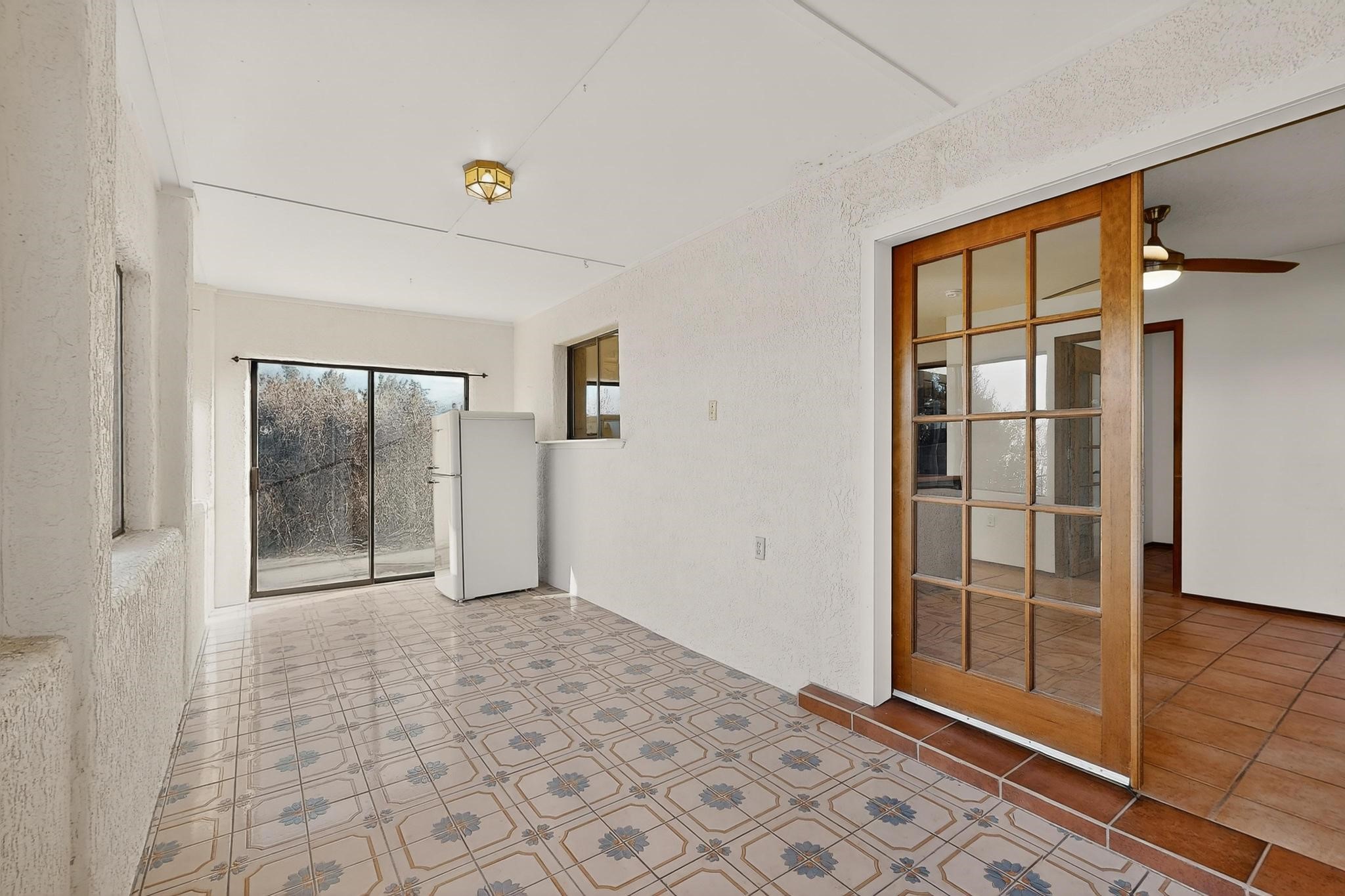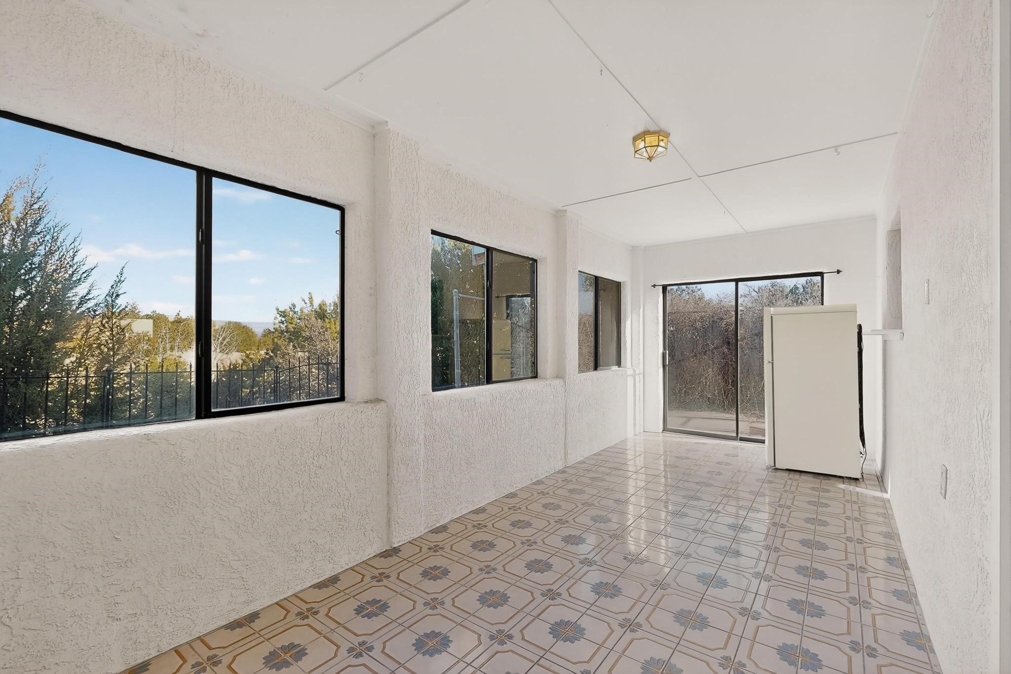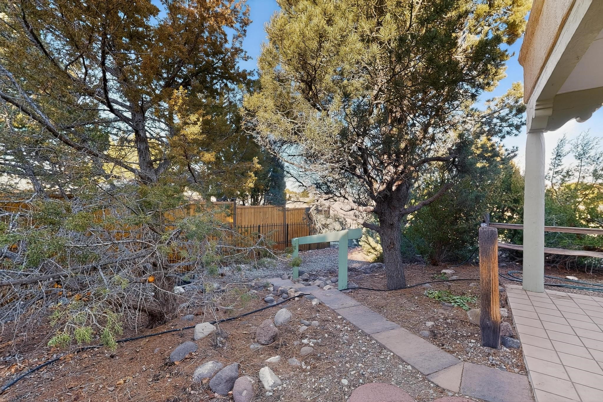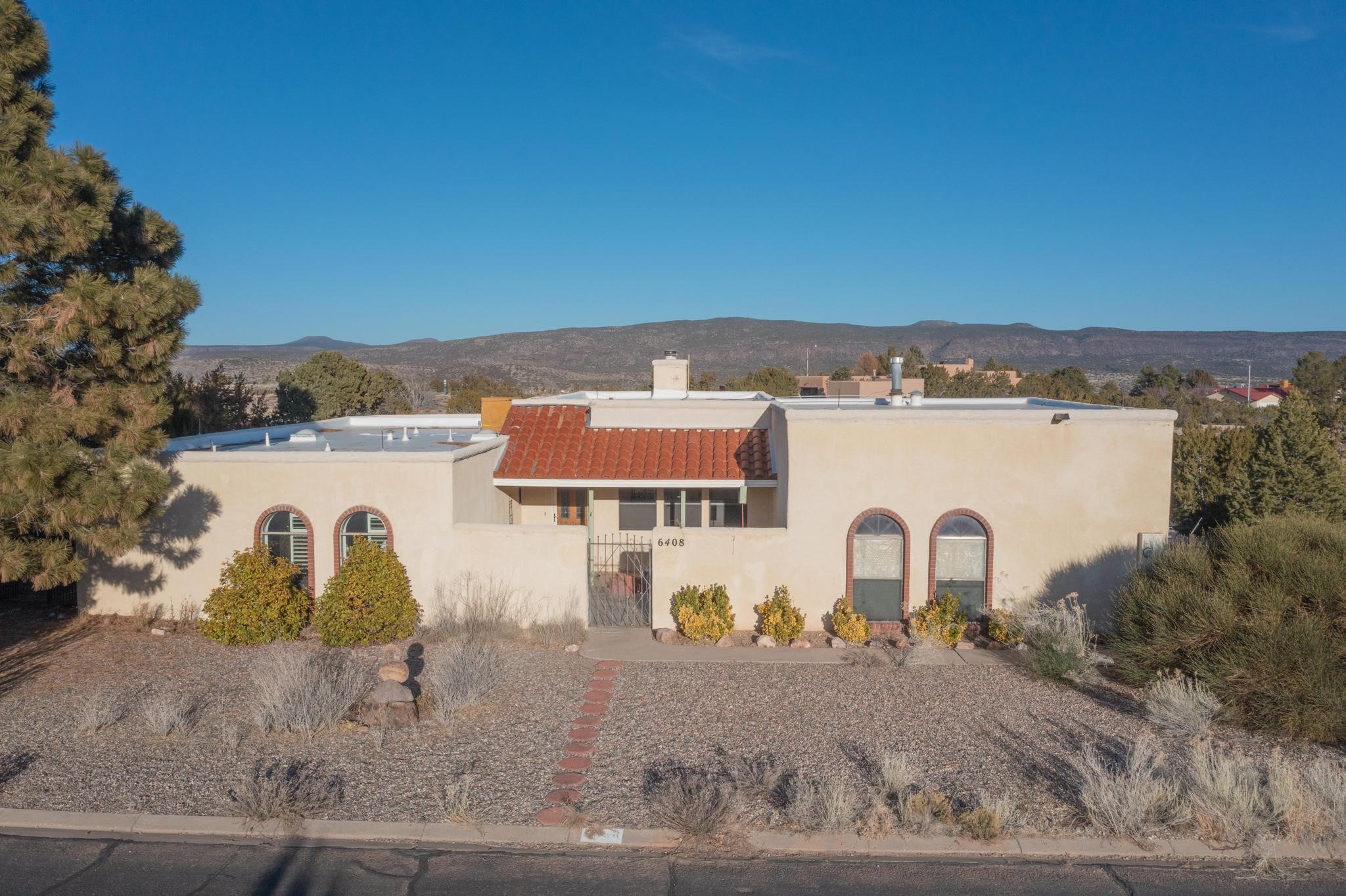 Thoughtfully designed approx. 2,500 sq ft, 3-bedroom plus flex room, 3-bath, 2-car garage home on a desirable double lot backing to open space, offering added privacy and beautiful views. The spacious living area, with room for an office or sitting area, features vaulted wood beam ceilings, a stone gas fireplace updated in 2023, and built-in shelving.The well-planned layout includes two primary bedrooms with en-suite baths, one with a walk-in closet, plus a third bedroom and an additional full bath. Bathrooms have been thoughtfully updated, including a remodeled primary bath with a walk-in shower. A sunroom, small office area off the kitchen, direct-access garage, and dedicated laundry room provide excellent flexibility for daily living.Notable improvements include a new furnace and water heater (2019), updated kitchen appliances and lighting, newer washer and dryer, insulated garage door, updated interior and exterior lighting, ceiling fans, window coverings, replaced window pulleys and screens, UV/heat-filtering window film, and new carpet in the living area and bedrooms. Additional amenities include marble flooring, forced air heating, central evaporative cooling, raised garden beds, fruit trees, and recent exterior updates.A wonderful opportunity to enjoy space, privacy, views, and relaxed Cochiti living. Please see the documents section for a complete list of updates and improvements.