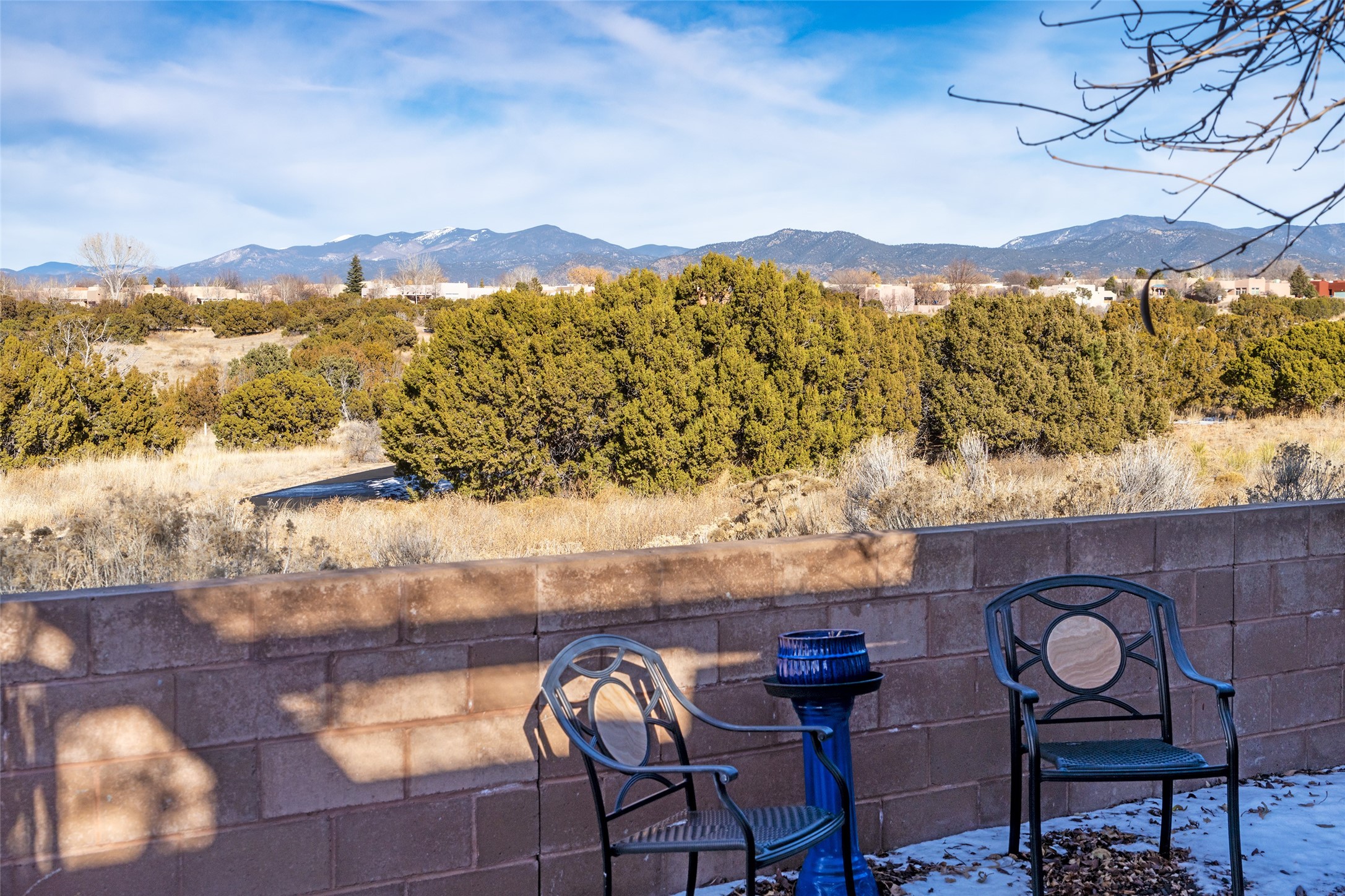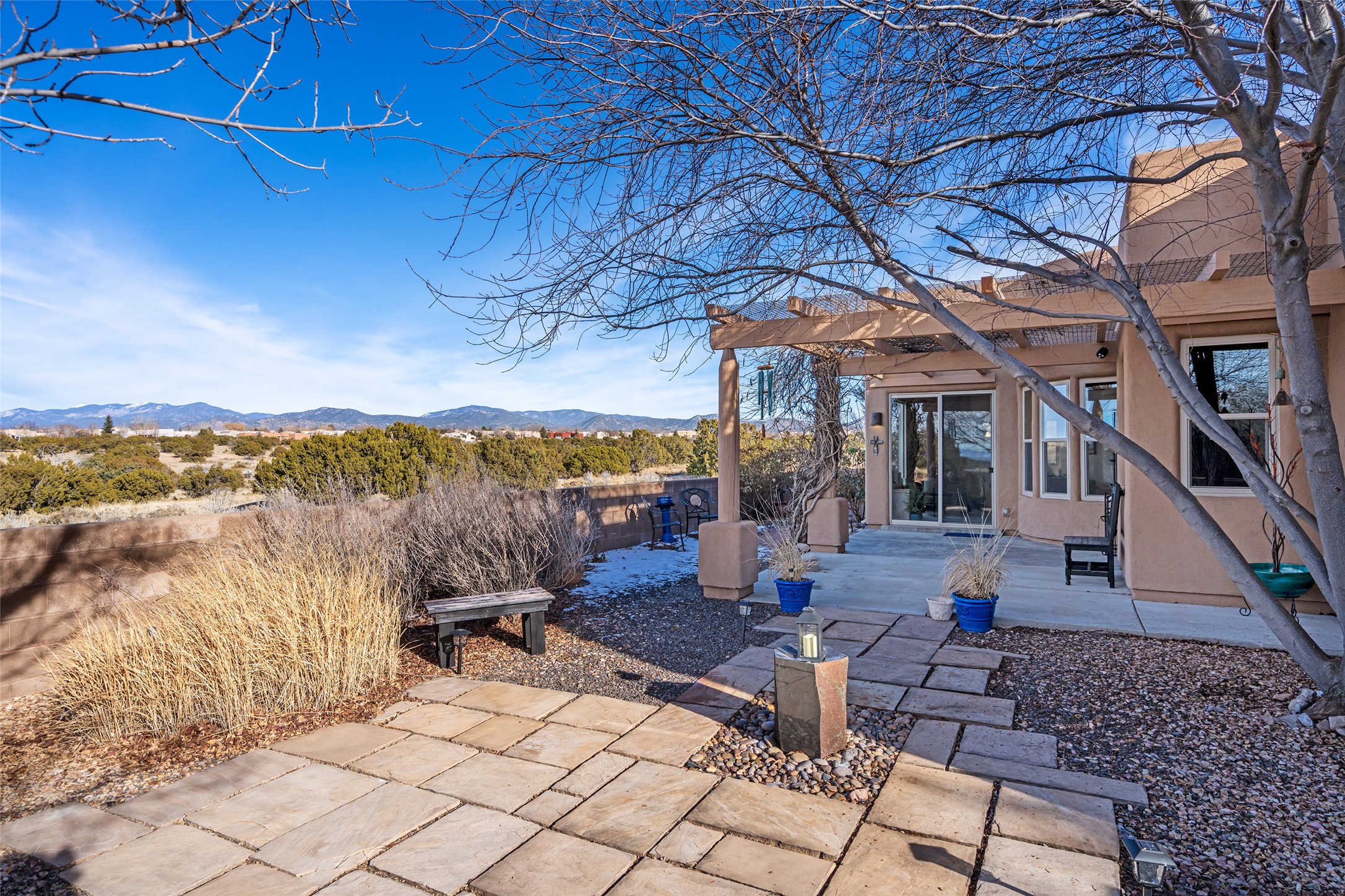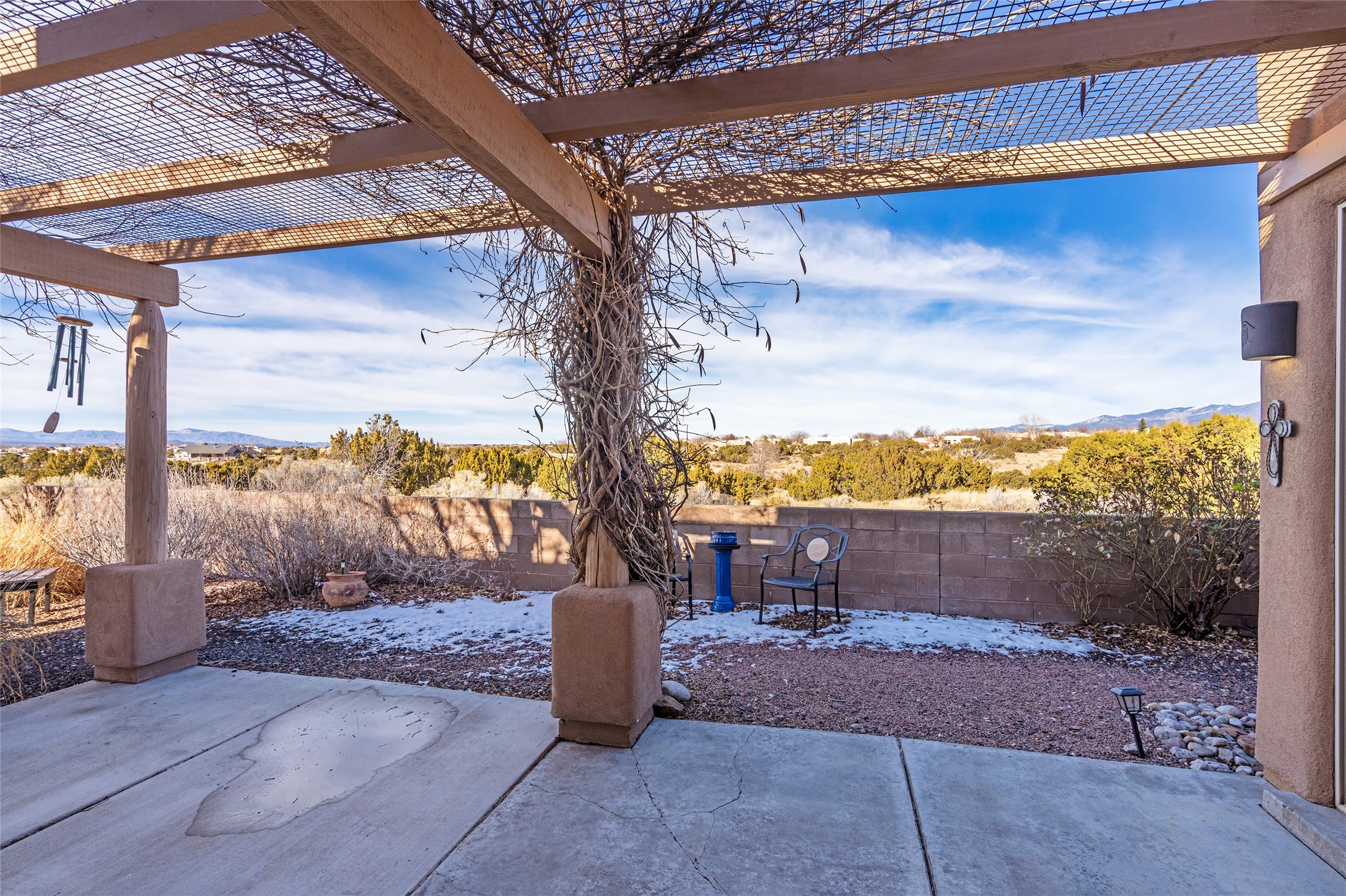 Sublime and serene, this one-owner home is sure to amaze and impress. Set on a highly sought-after lot bordering open space, the property offers forever views of the Sangre de Cristo and Jemez mountain ranges. Nestled within a well-established neighborhood, the home enjoys a rare balance of privacy, natural beauty, and a strong sense of security.Thoughtfully re-envisioned to suit today's lifestyles, the interior is filled with light and views. Oversized picture windows in the living room and office nook frame the surrounding landscape and bring the outdoors in. The open-concept kitchen has been beautifully upgraded with the finest materials, creating a stunning and functional gathering space. The primary suite is a true retreat, featuring a beautifully renovated bath and a walk-in closet. Just off the main living area, a versatile den functions perfectly as a media room or creative space and can easily serve as a third bedroom if desired. A comfortable guest bedroom and renovated guest bath provide a welcoming experience for visiting family and friends. Outside, the rear courtyard overlooks expansive open space and is anchored by a tranquil water feature, a new ramada, and simple, indigenous landscaping--an ideal setting for relaxation and entertaining. Recent improvements include many new windows, new kitchen appliances, new granite counters in kitchen and baths, new tile in the baths, new carpet, new light fixtures and so much more! Rarely does a home with this level of upgrades and such an exceptional lot come together at this remarkable price. Located within the Windmill Ridge area of Rancho Viejo, the neighborhood offers over 12 miles of paved walking trails and many community parks. You do not want to miss this exceptional home!