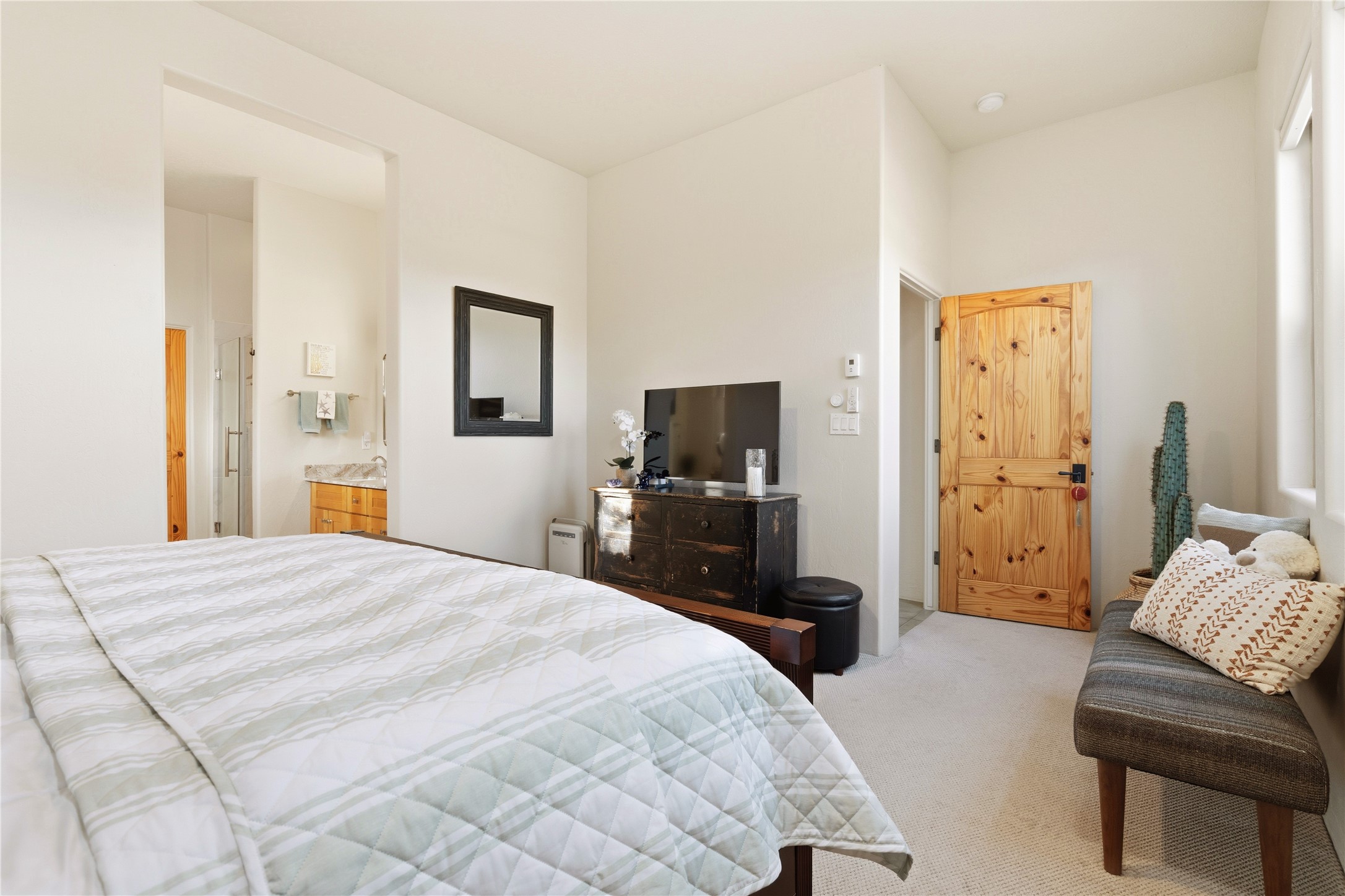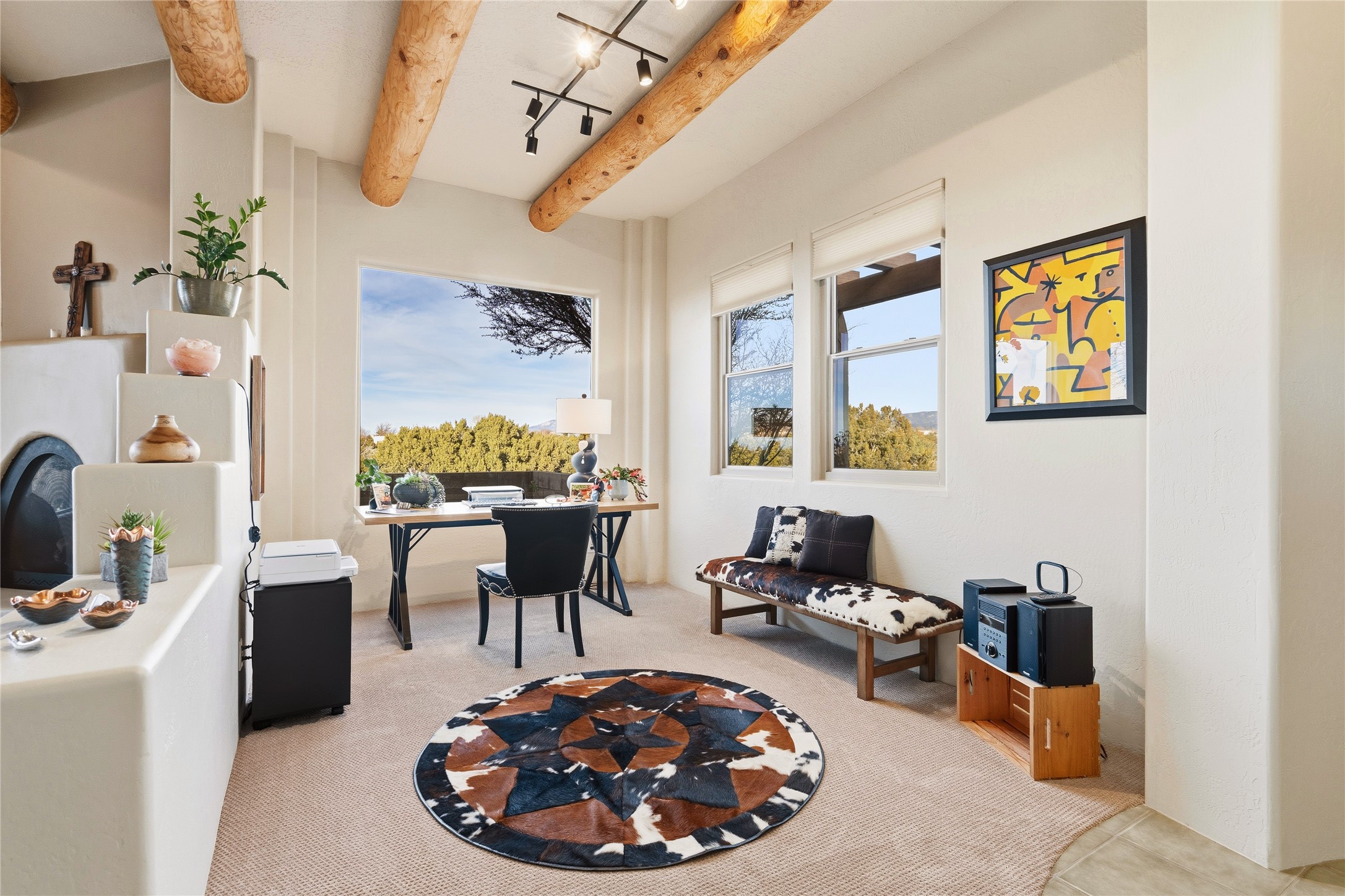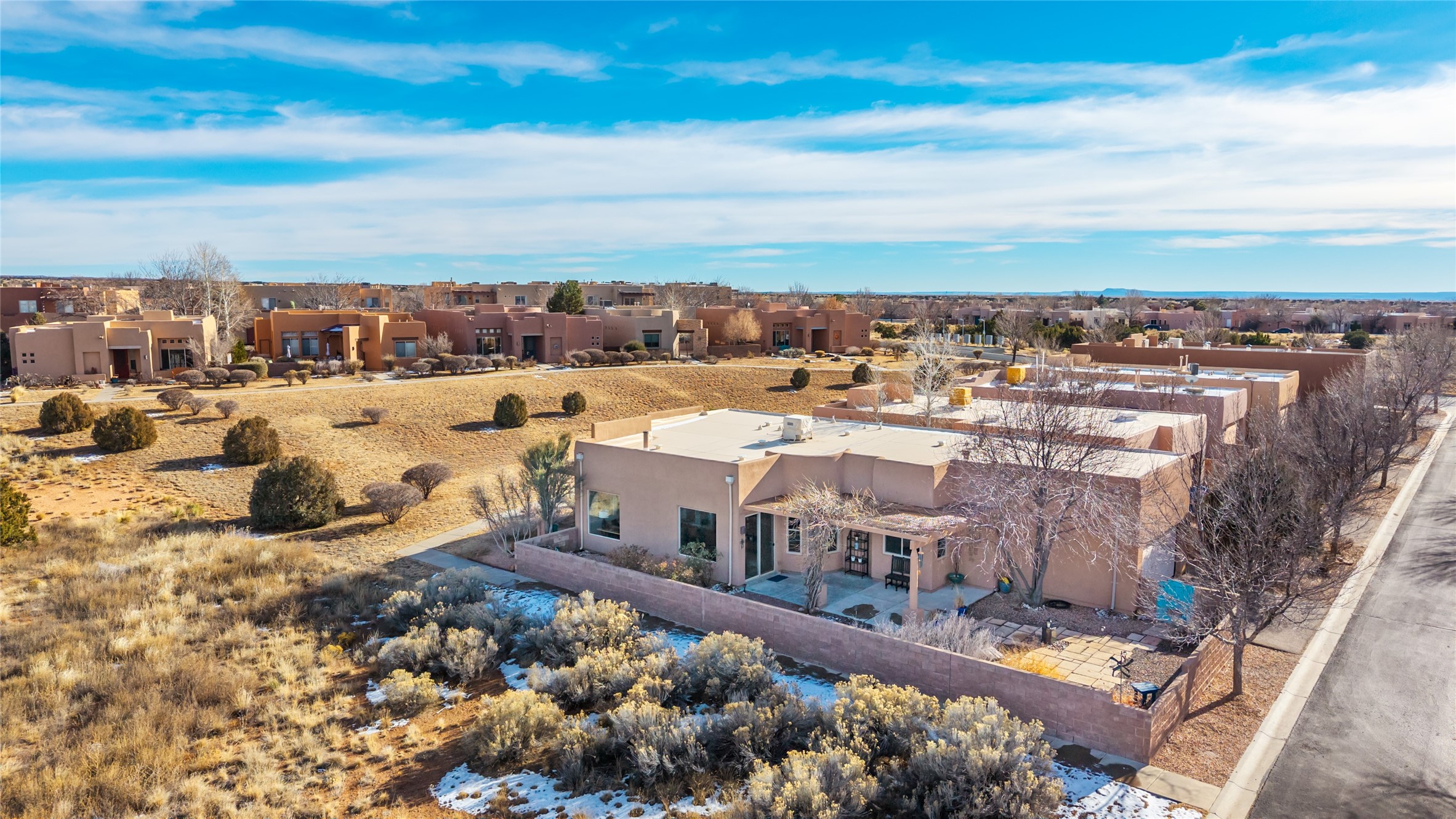 Sublime and serene, this one-owner home is sure to amaze and impress. Set on a highly sought-after lot bordering open space, the property offers forever views of the Sangre de Cristo and Jemez mountain ranges. Nestled within a well-established neighborhood, the home enjoys a rare balance of privacy, natural beauty, and a strong sense of security.Thoughtfully re-envisioned to suit today's lifestyles, the interior is filled with light and views. Oversized picture windows in the living room and office nook frame the surrounding landscape and bring the outdoors in. The open-concept kitchen has been beautifully upgraded with the finest materials, creating a stunning and functional gathering space. The primary suite is a true retreat, featuring a beautifully renovated bath and a walk-in closet. Just off the main living area, a versatile den functions perfectly as a media room or creative space and can easily serve as a third bedroom if desired. A comfortable guest bedroom and renovated guest bath provide a welcoming experience for visiting family and friends. Outside, the rear courtyard overlooks expansive open space and is anchored by a tranquil water feature, a new ramada, and simple, indigenous landscaping--an ideal setting for relaxation and entertaining. Recent improvements include many new windows, new kitchen appliances, new granite counters in kitchen and baths, new tile in the baths, new carpet, new light fixtures and so much more! Rarely does a home with this level of upgrades and such an exceptional lot come together at this remarkable price. Located within the Windmill Ridge area of Rancho Viejo, the neighborhood offers over 12 miles of paved walking trails and many community parks. You do not want to miss this exceptional home!