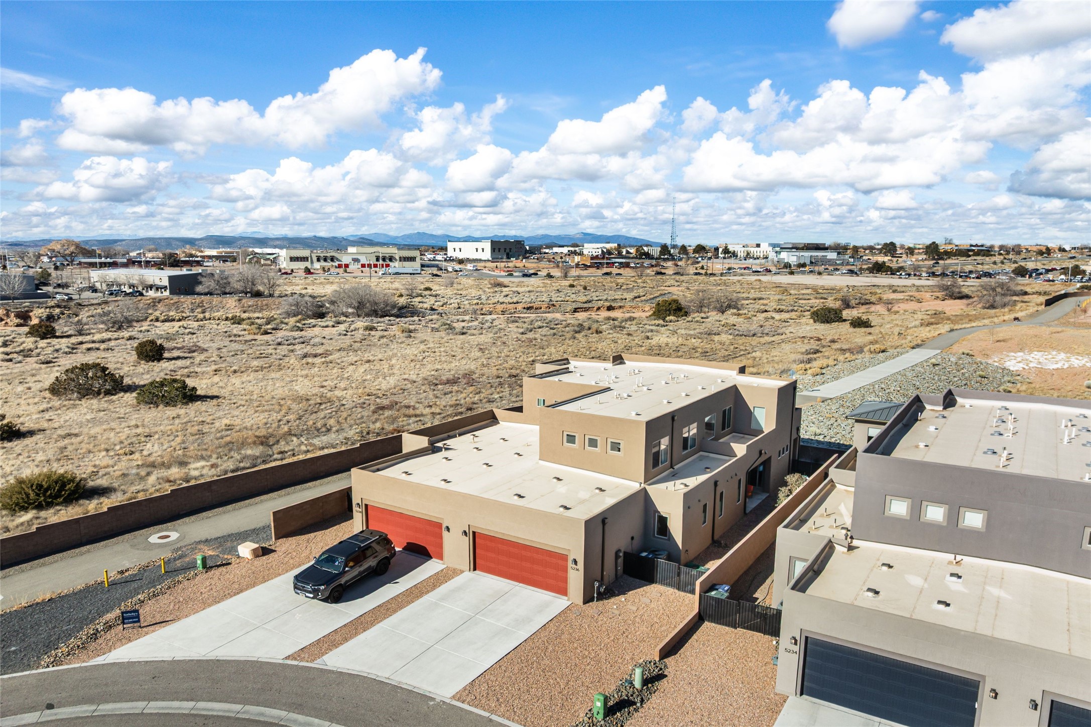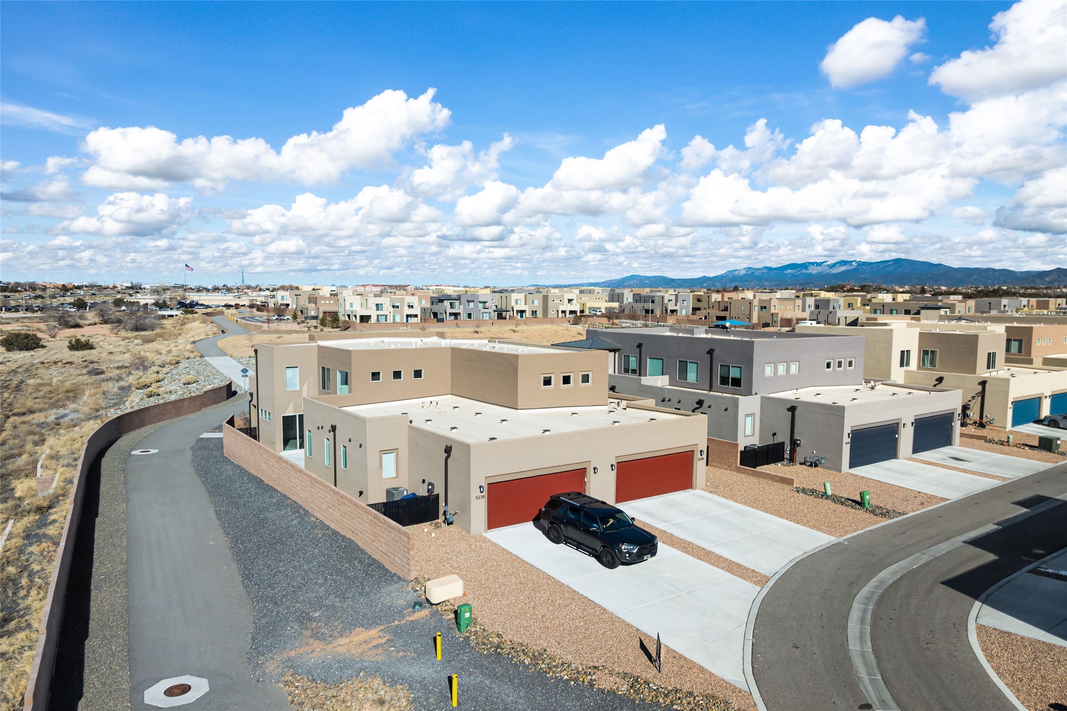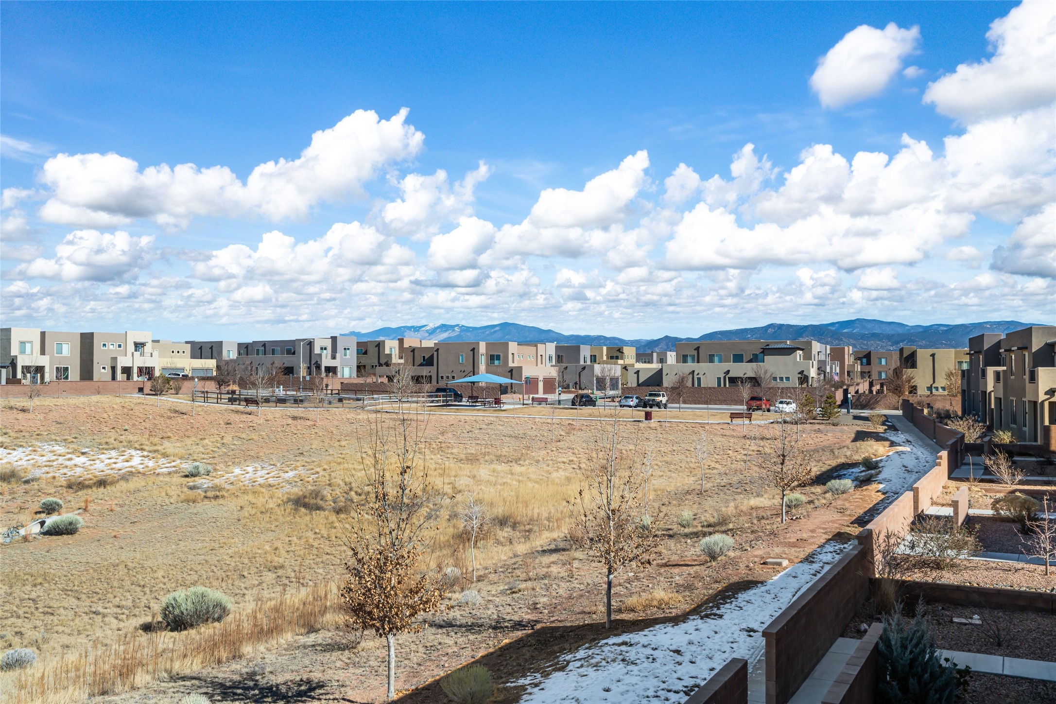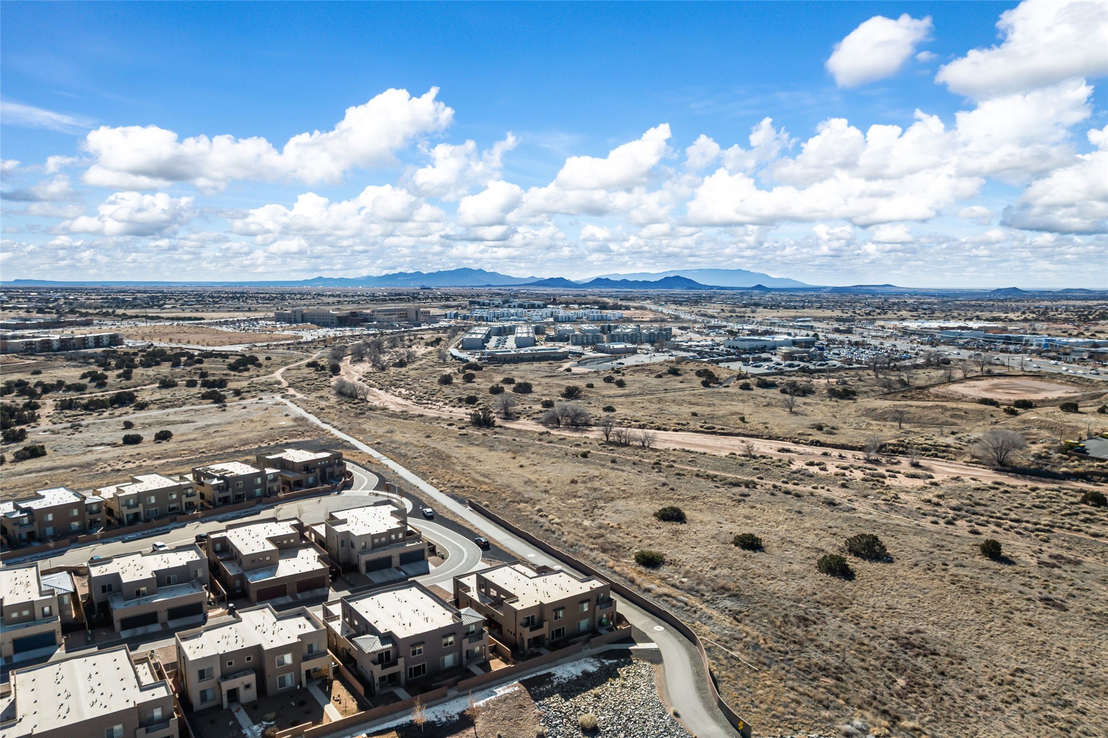 Convenient Las Soleras 2022 built 3-bedroom, 2.5 bath townhouse with tall ceilings and plentiful natural light. Open concept downstairs with easy flow for daily living and entertaining. The modern kitchen is appointed with island/breakfast bar and stainless steel appliances. The main floor primary suite features an ensuite bath with walk-in shower, walk-in closet and direct access to an outdoor patio--perfect for morning coffee or evening relaxation. The laundry room is located downstairs as well. Upstairs, you'll find a generous second living area, offering flex space for a media room or studio. Adjacent to this living area is a versatile loft office space providing an ideal setup for remote work or study. The other two guest rooms are located upstairs with a shared full bathroom. Two car garage. Bonus highlight is a paved trail right outside your door. Excellent location close to Presbyterian Santa Fe Medical Center with easy access to all the shopping and dining on NM 14-Cerrillos Rd. and the Santa Fe Plaza.