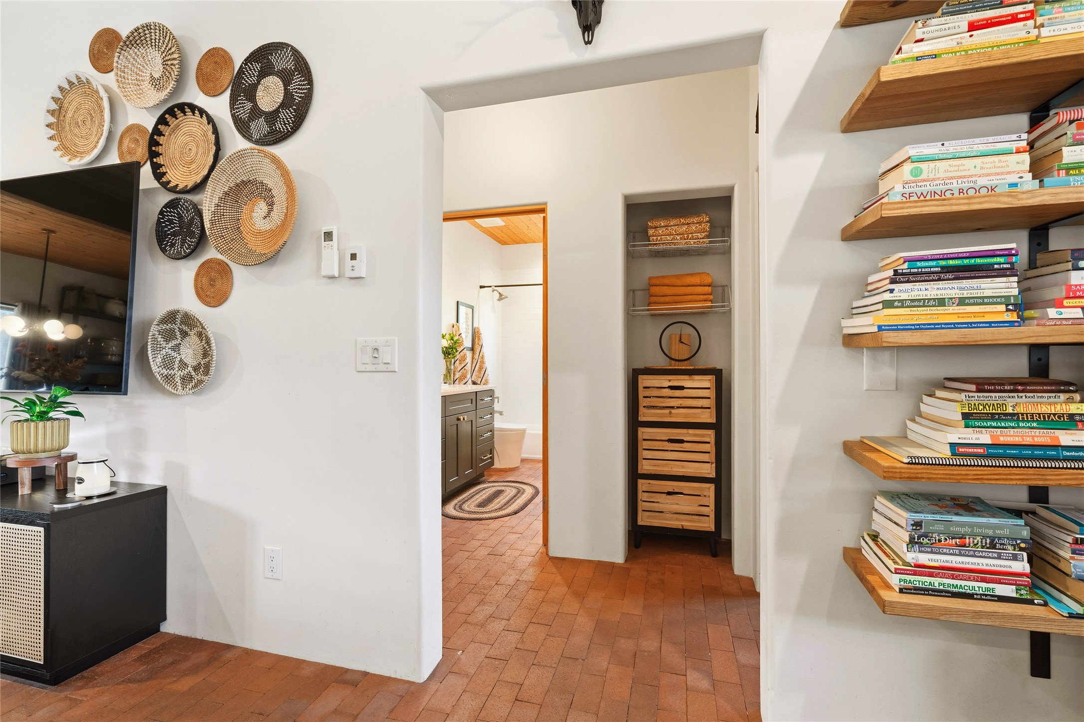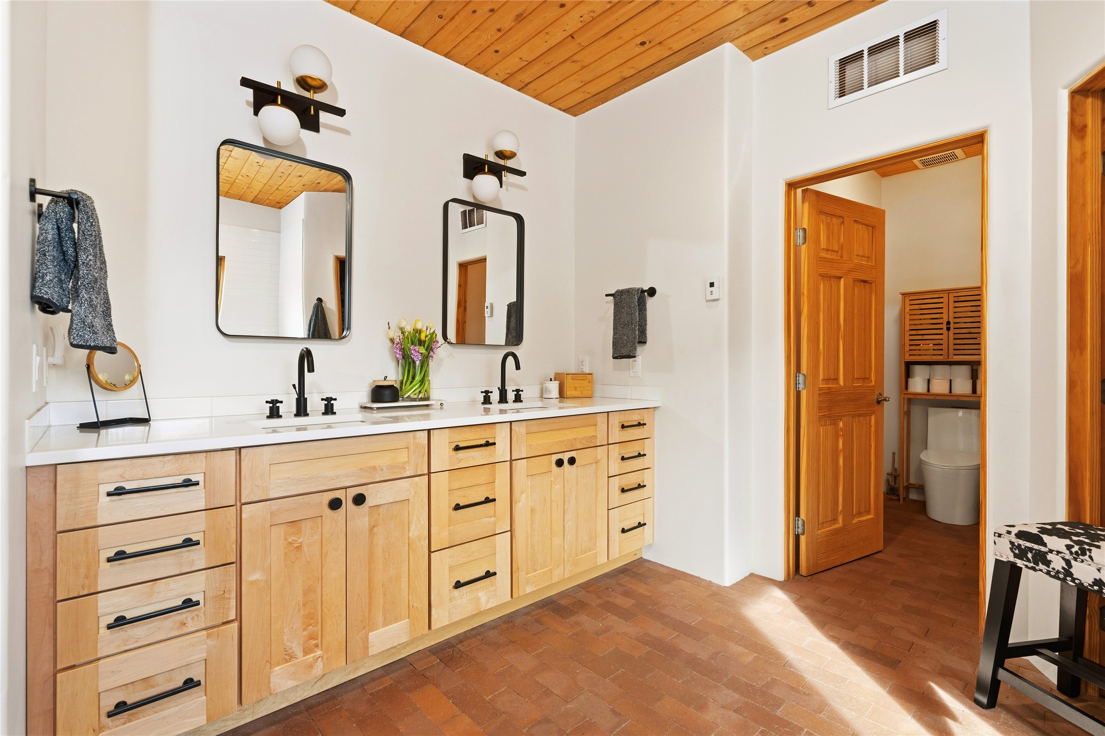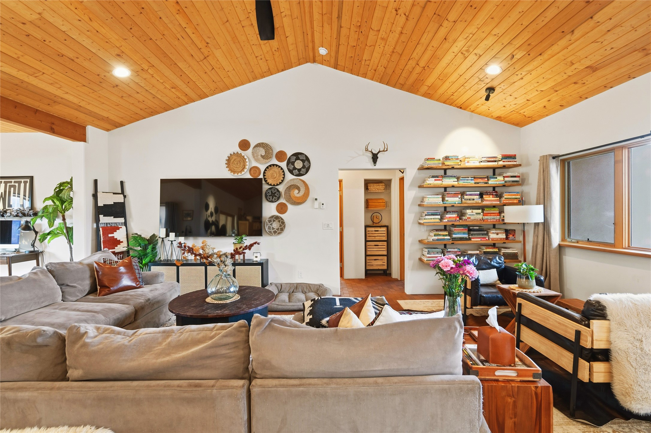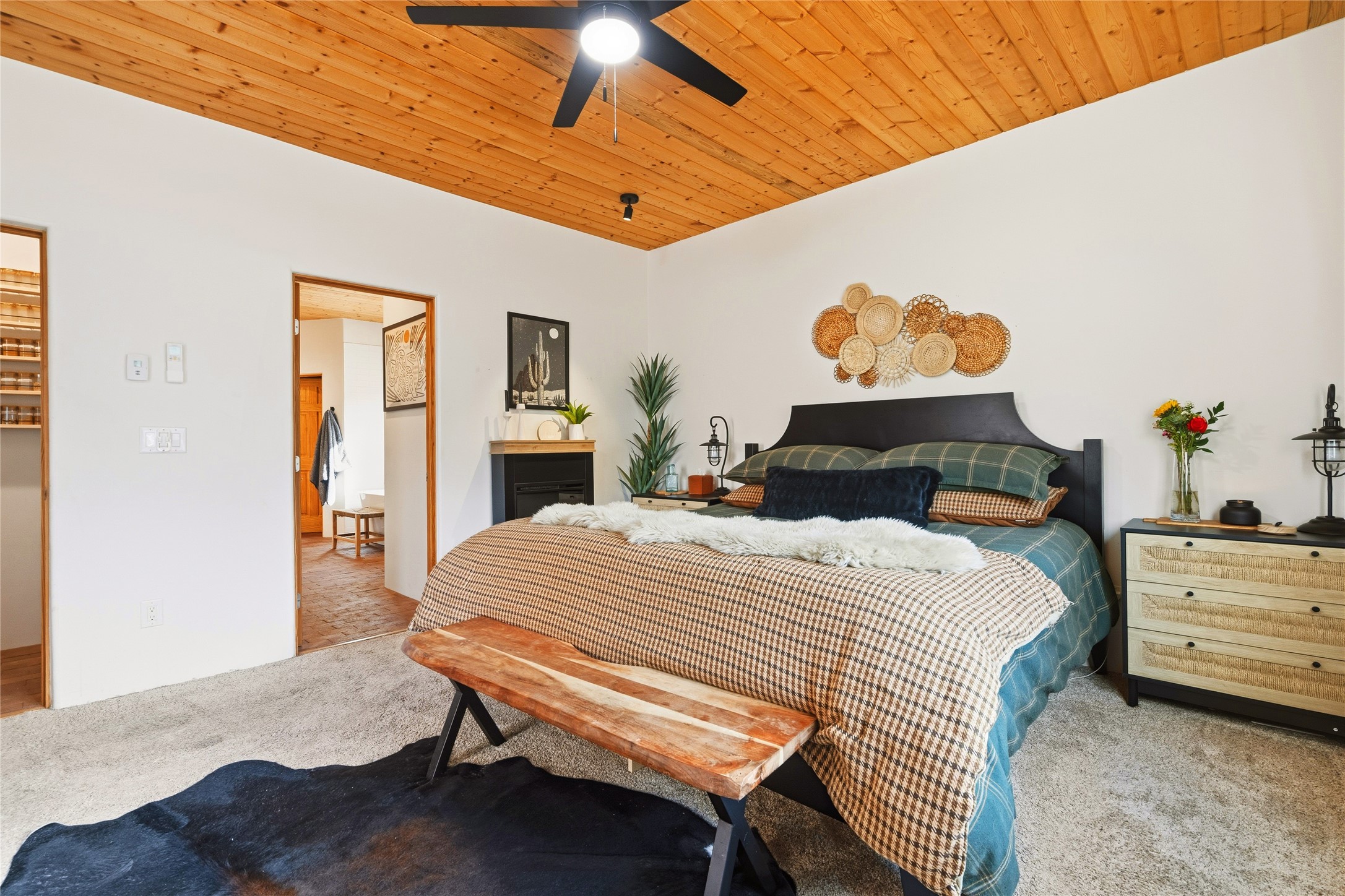 Located at the base of Rowe Mesa, this ranch-style home on nearly 4 Acres of flat useable land, offers wide skies, mountain views, and rural privacy all just 30 minutes from Santa Fe.Built in 2021, the custom residence provides exceptional comfort with a modern ranch style. A pitched propanel roof, classic stucco exterior, and warm natural finishes create an inviting, grounded feel throughout. Inside, the open-concept living and kitchen area is ideal for entertaining, with island seating, a pantry, and easy access to the attached two car garage. Brick floors, wood cabinetry, subway tile accents, and planked wood ceilings add texture and space, while three bedrooms and two baths provide flexible, comfortable living. Radiant heat and mini-splits ensure year-round comfort.Outside, the land truly shines. Mature fruit trees, thoughtfully tended garden beds, and two chicken coops support a slower, more self-sufficient lifestyle. Bordering the Santa Fe National Forest, the property offers direct access to nature, and unbounded recreation.With usable acreage and newer construction in a serene high-desert setting, this is a place to breathe deeply, spread out, and feel at home.