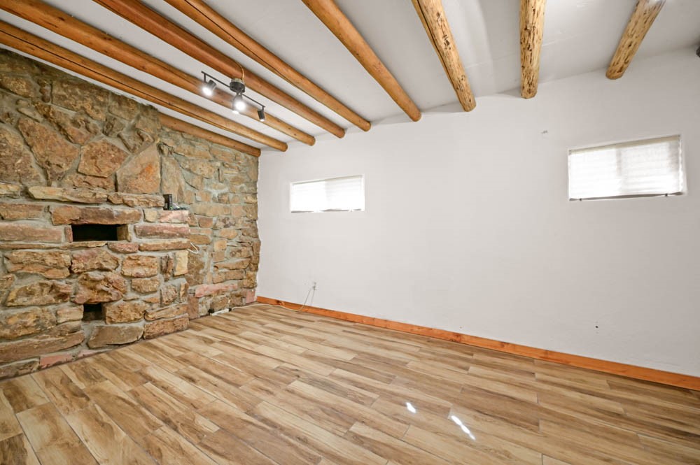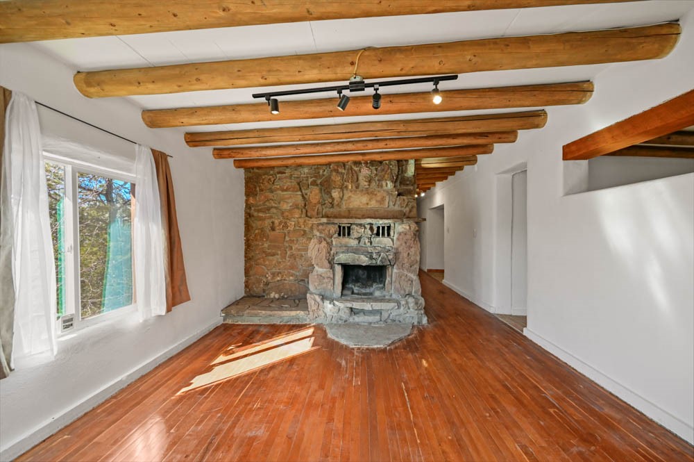 Nestled in one of Santa Fe's most desirable neighborhoods, this 2-bedroom, 1-bath home sits on an exceptional 0.4-acre lot. The property offers a rare opportunity for expansion or reimagining: add a casita, build a garage, create additional living space, or design outdoor areas that fully embrace the hillside setting. The existing home features classic Santa Fe touches, including viga ceilings and a cozy rock fireplace, and is filled with natural light. The layout offers a unique footprint that invites thoughtful updates or redesign to suit modern living. Outdoors, terraced grounds provide ample room to expand while taking in beautiful views of the Sangre de Cristo Mountains and surrounding hills, and even the Jemez Mountains. Ideally located near St. John's College, the Santa Fe Watershed, the Ski Basin, Santa Fe Preparatory School, Cristo Rey Church, and several elementary schools, with Canyon Road, galleries, shops, and the Santa Fe Plaza just minutes away.