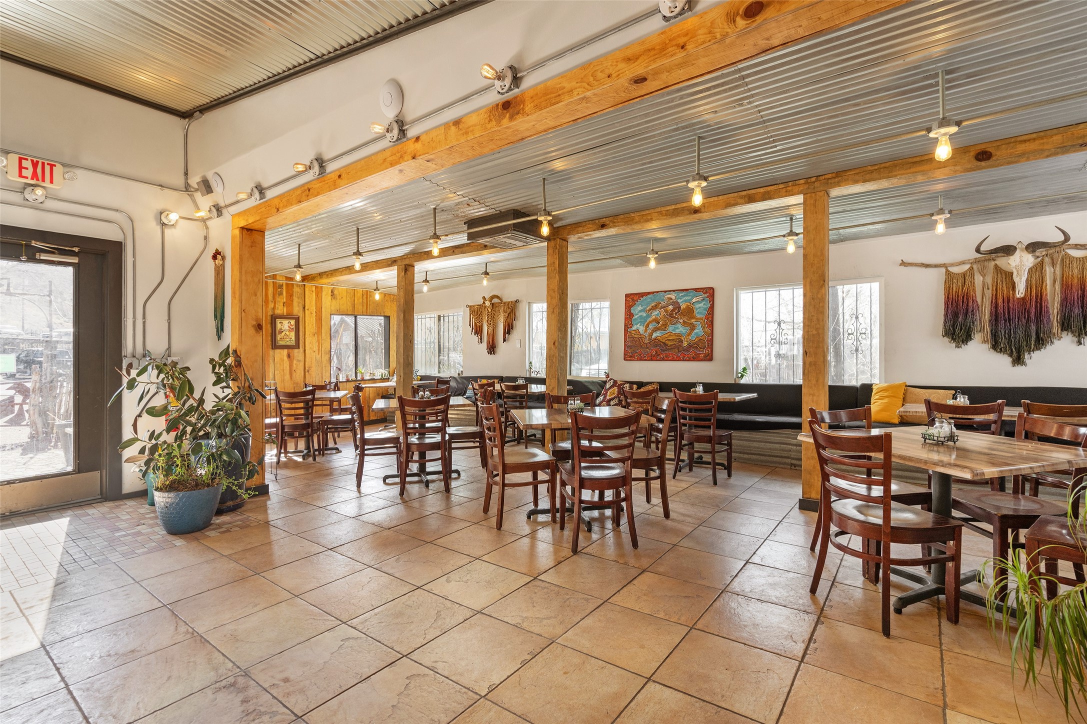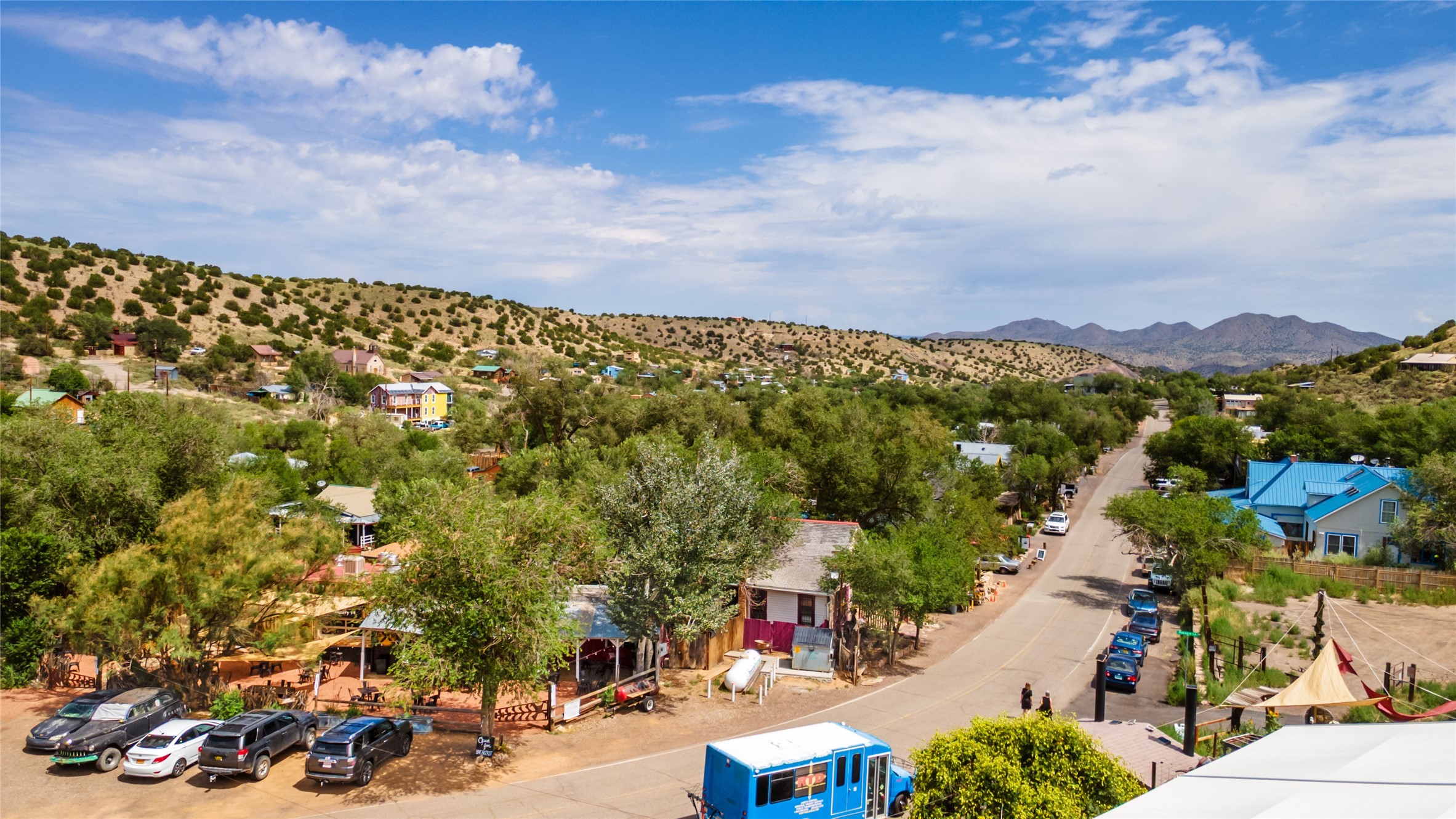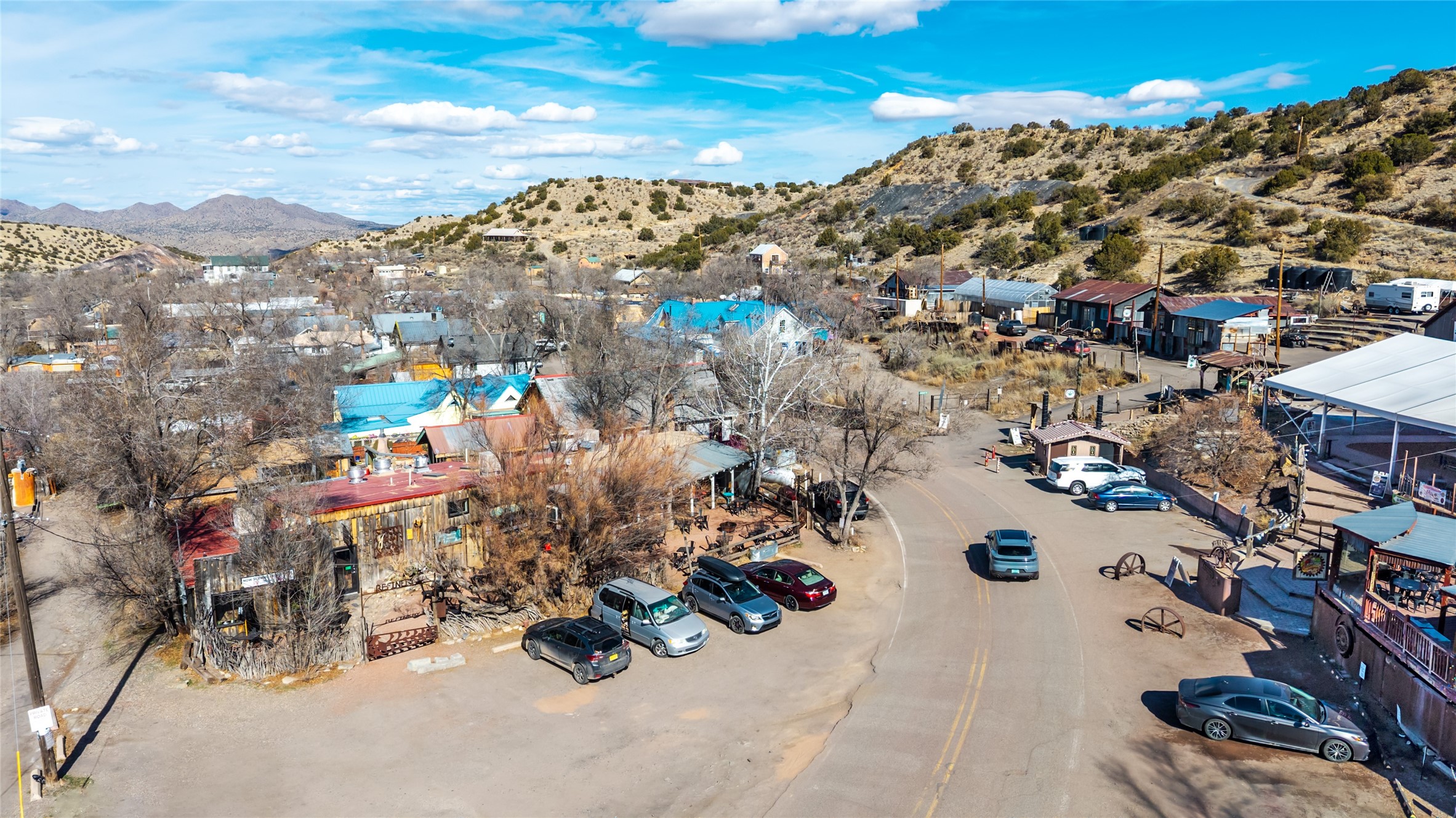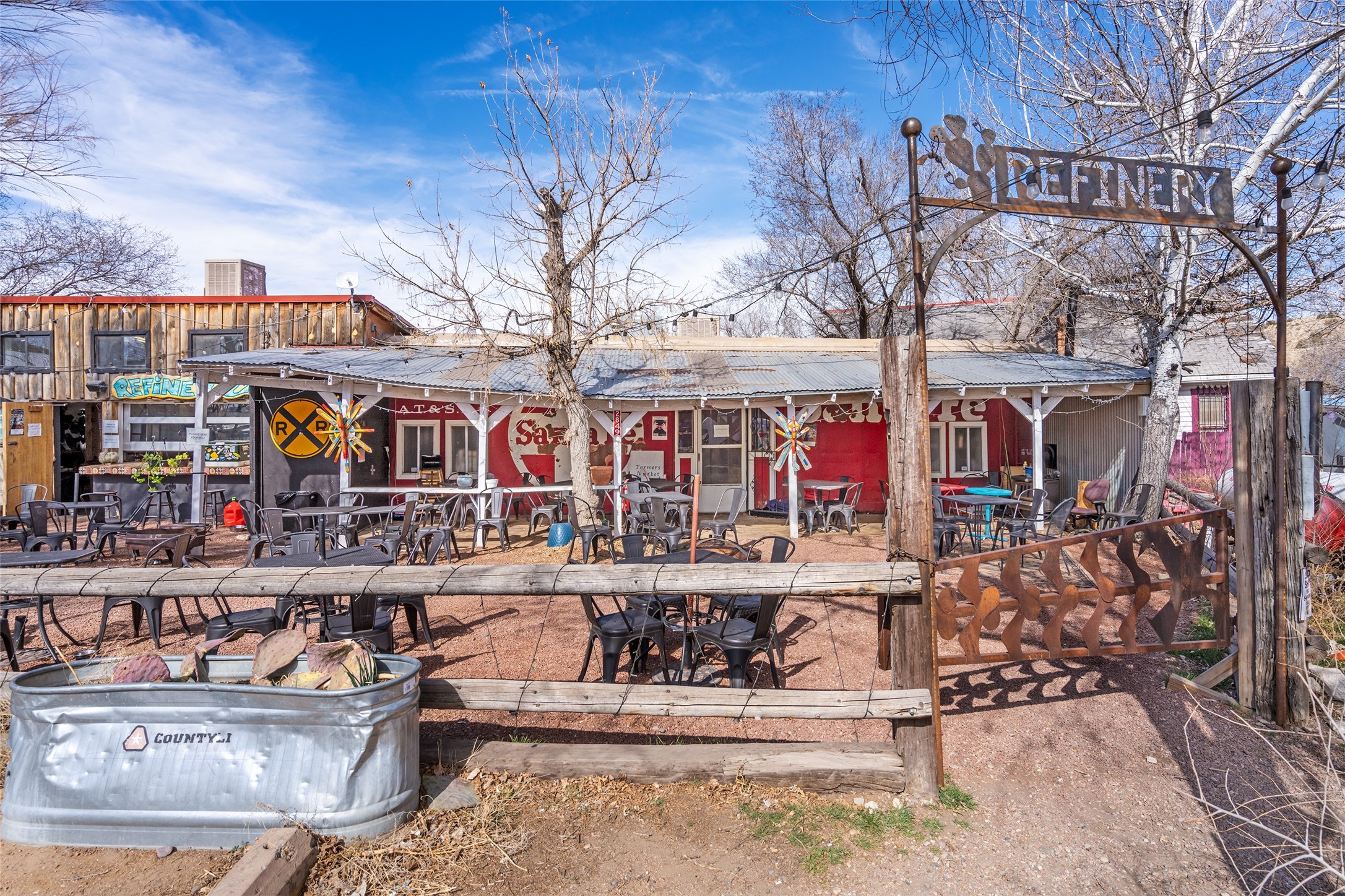 Commercially zoned property in the heart of the quintessential historic town of Madrid, perfectly located on vibrant Main Street in a highly desirable location to capture business from tourists and locals alike. Madrid is a fun and colorful community just outside of Santa Fe and is the most popular visitor stop along the National Scenic Byway, the Turquoise Trail, making it an ideal day trip linking Santa Fe and Albuquerque. The Trail attracts visitors from all over the world who come to experience the rich culture and history of this picturesque Western town. The property features a fully equipped commercial kitchen and is being sold fully furnished and equipped to operate a successful restaurant. It also boasts a state-of-the-art fire alarm system. Currently leased to The Refinery, offering a solid investment opportunity with a high cap rate and return. At one time, the property operated as two businesses, a retail space in the Santa Fe Railroad railcar situated on site; the railcar is now configured as additional indoor dining. The property offers both indoor and outdoor dining experiences, with the outdoor space overlooking the Madrid Museum and long serving as a dynamic setting for dining and live music. Designated parking is conveniently located along State Highway 14 directly in front of the restaurant.