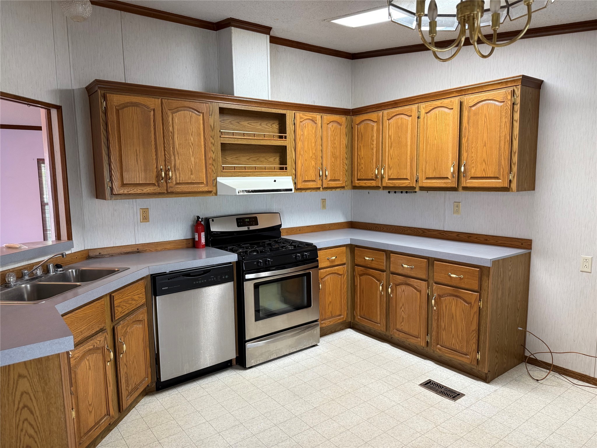 Spacious Ranch Style Manufactured home situated on a .61/acre lot! Covered deck entry welcomes you in to the bright living room, eat-in kitchen with an abundance of wood cabinets, den with fireplace and lovely built-in bookcases. The main bedroom with ensuite bath is a perfect space to unwind, relax, and rejuvenate. The addition of the large den offers many possibilities for family gatherings. The oversized 2 car garage provides plenty of room for those vehicles and added storage. This home has a new roof! The rock and chain link fencing nicely secure this property located close to everything!