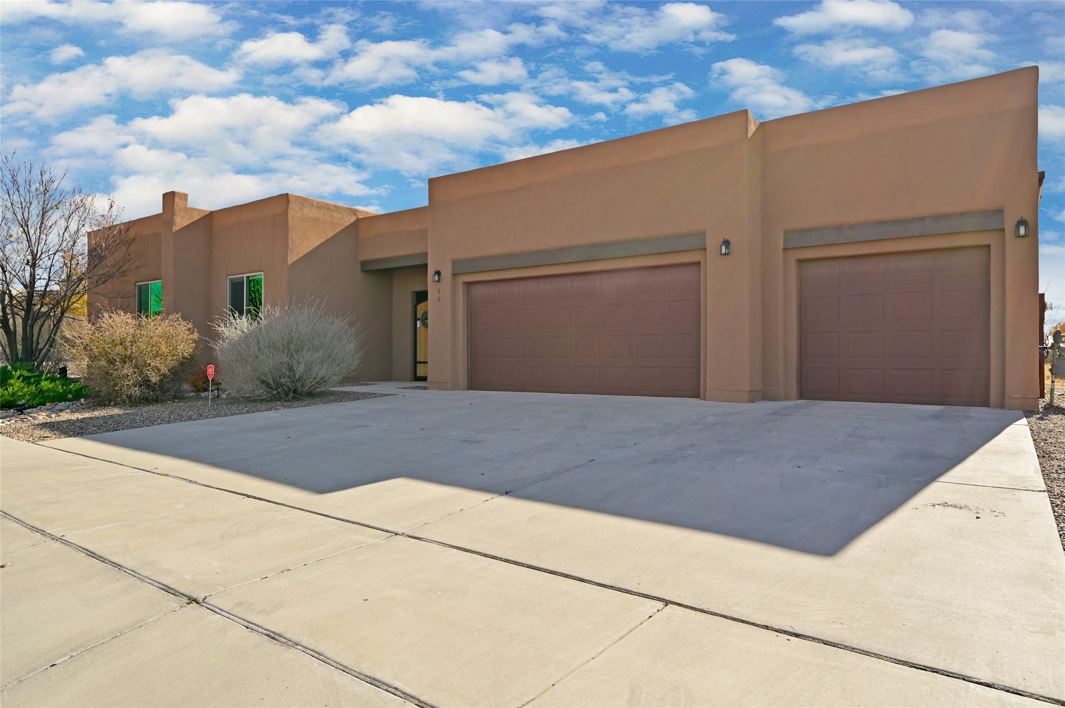 Located in the highly sought-after La Pradera subdivision, this refined Pueblo-style residence embodies the ease and elegance of Santa Fe living. The property features a spacious 1,692 sq ft main home and a charming 394 sq ft casita--ideal for hosting guests, creating a private studio, or generating rental income. The main home welcomes you with an expansive open-concept great room, where the kitchen, dining, and living areas blend seamlessly under warm Southwestern accents and a classic kiva fireplace. A thoughtful floor plan provides excellent bedroom separation, ensuring comfort and privacy for both residents and guests. The luxurious primary suite offers a soaking tub, walk-in shower, and dual walk-in closets, creating a serene retreat. Across a beautifully designed courtyard, the casita offers its own bedroom, 3/4 bath, a cozy living area, and a kitchenette, providing guests with independence and comfort throughout their stay. A rare 3-car garage enhances both convenience and storage. The neighborhood features extensive paved and natural walking trails, as well as a playground, making it ideal for an active lifestyle. The home also backs to protected open space, offering added privacy and unobstructed views. Designed for low-maintenance living, the xeriscaped landscaping makes this an ideal second home or lock-and-leave retreat. Even better, all furniture conveys (excluding art, rugs & TVs), allowing you to step effortlessly into the Santa Fe lifestyle from the moment you arrive. The furniture package is optional.