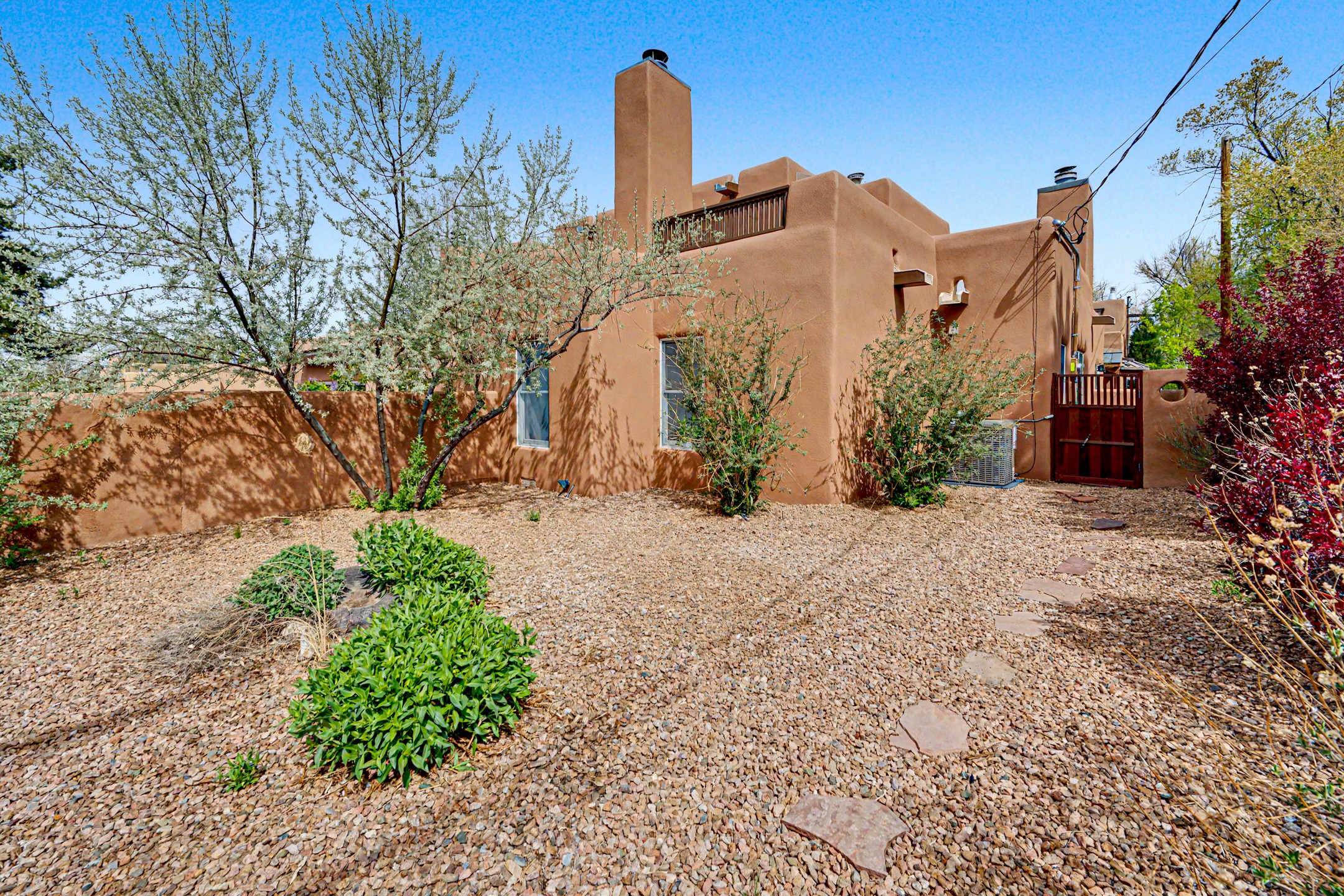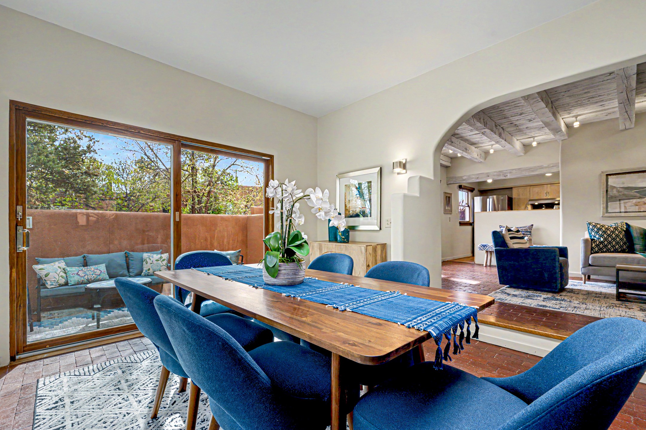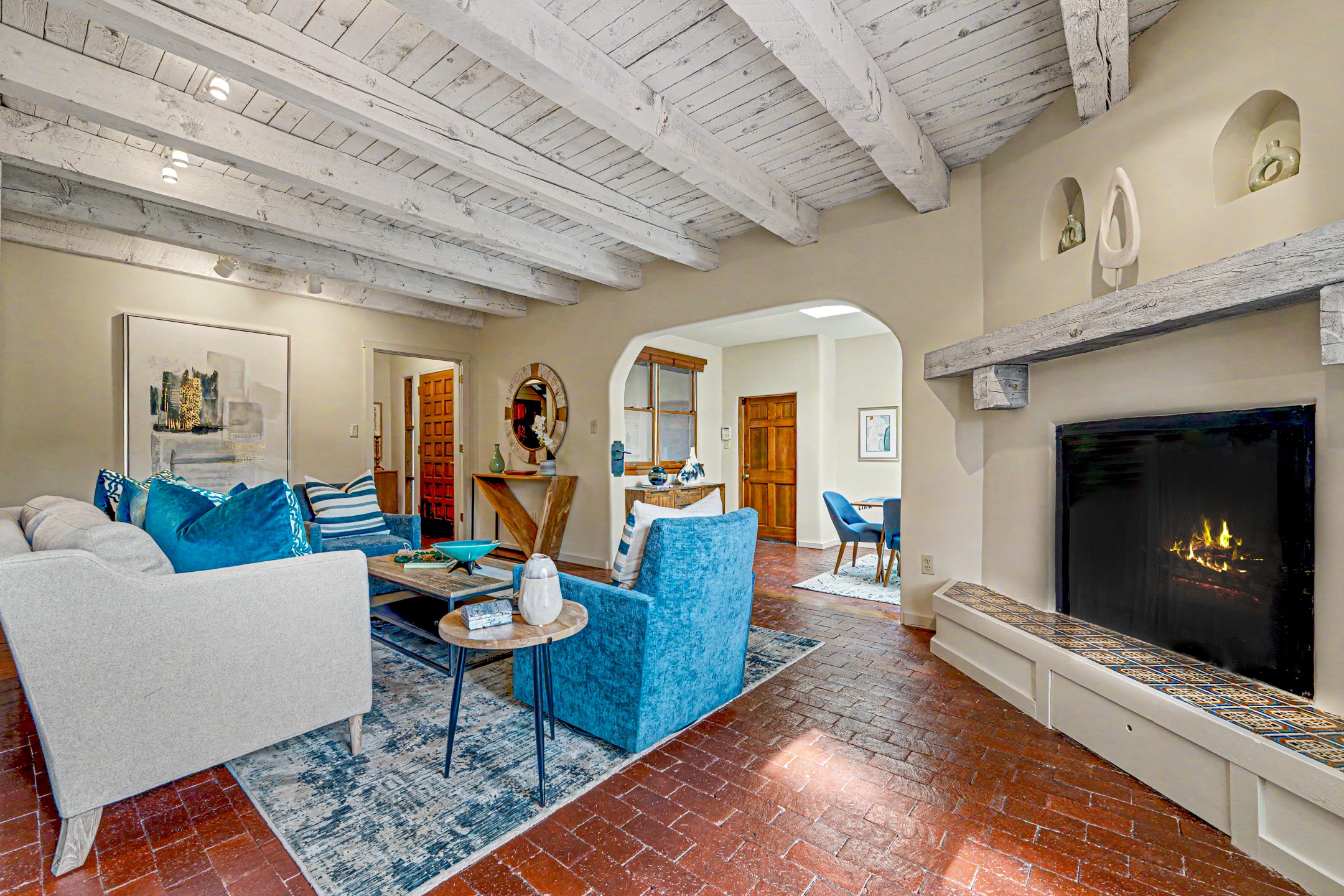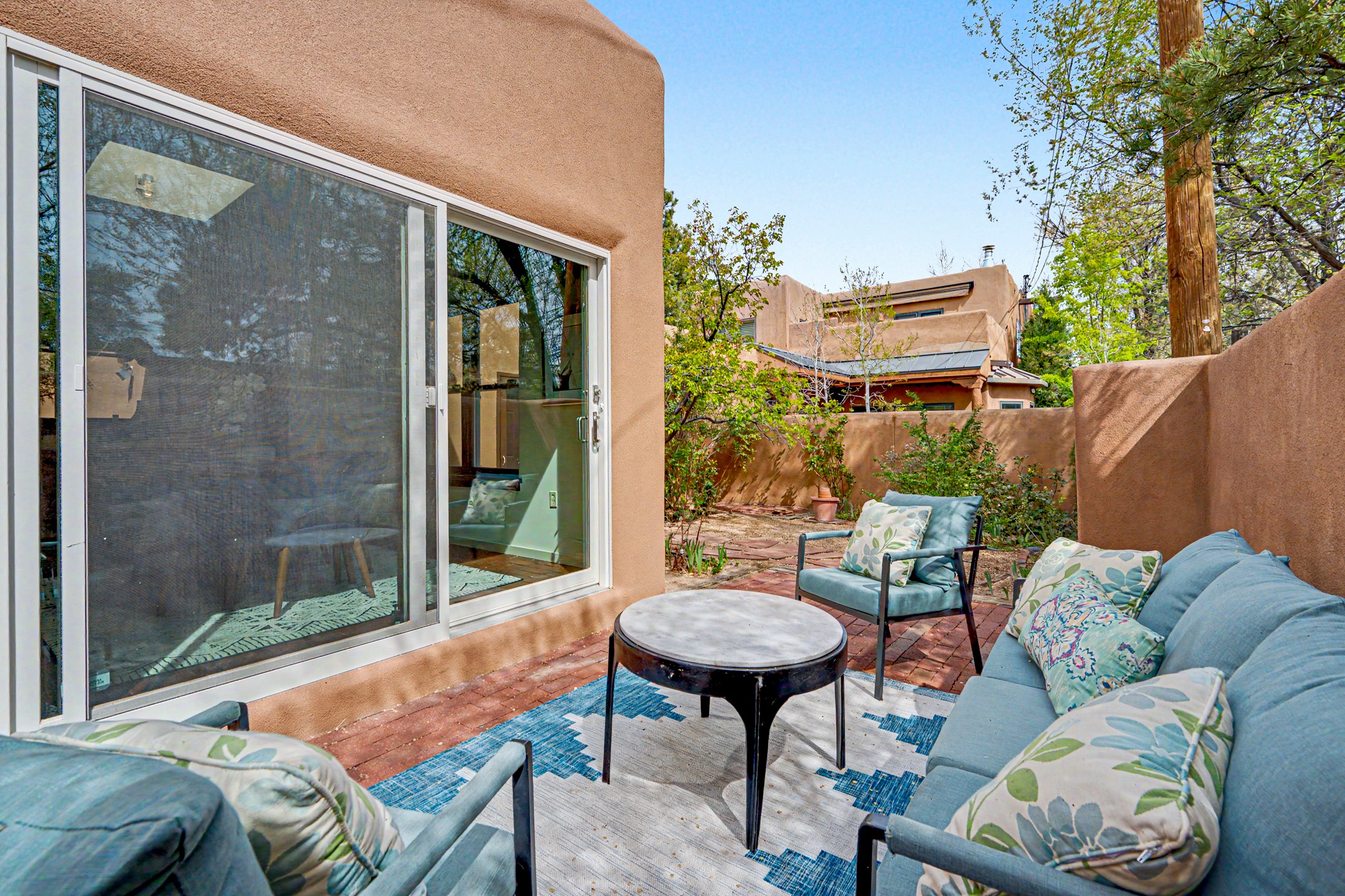 Rare opportunity to own an updated luxury condo just moments from the Santa Fe Plaza.This beautifully updated 3BD/2.5BA home offers 2,102 sq ft of refined Southwestern living. Warm and inviting, it features classic brick floors in the living and dining areas, two wood-burning fireplaces, wood flooring in the kitchen, and new carpet (March 2026) in the bedrooms. The updated kitchen includes butcher block countertops, a new refrigerator, and a new oven/stove(March 2026)--perfect for everyday living and entertaining. Recent upgrades provide exceptional comfort and peace of mind, including new HVAC with forced air heating and A/C (April 2026), TPO roof (Oct 2025), stucco (Nov 2025), and updated electrical panel and sub-panel (April 2026), along with extensive infrastructure improvements for long-term durability. Enjoy charming outdoor patios, a finished attached 2-car garage, and a highly desirable location just minutes from dining, galleries, and the heart of Santa Fe.
