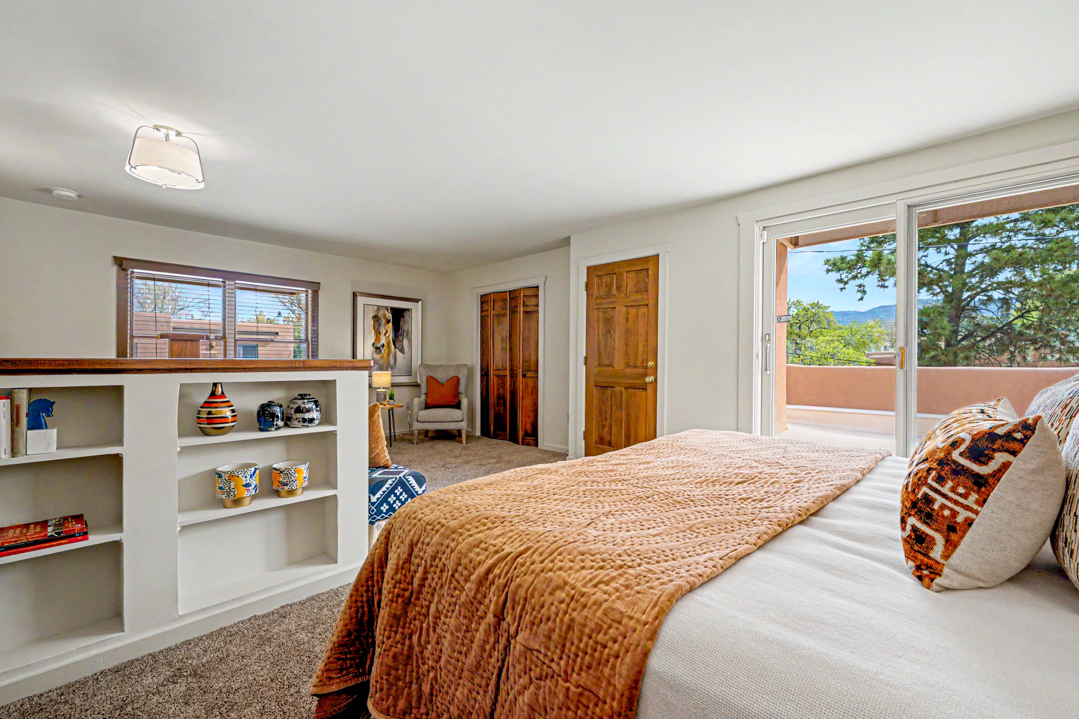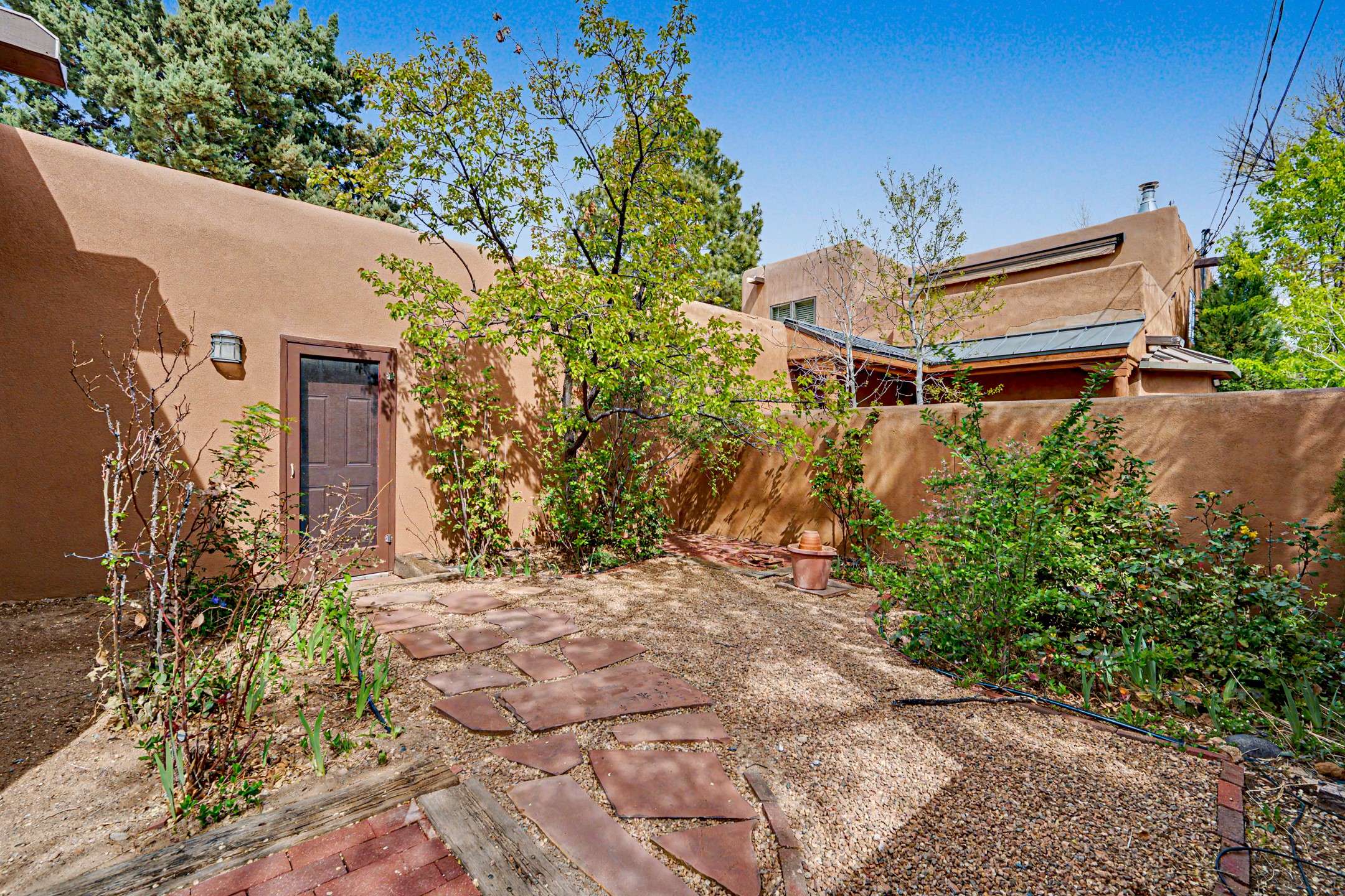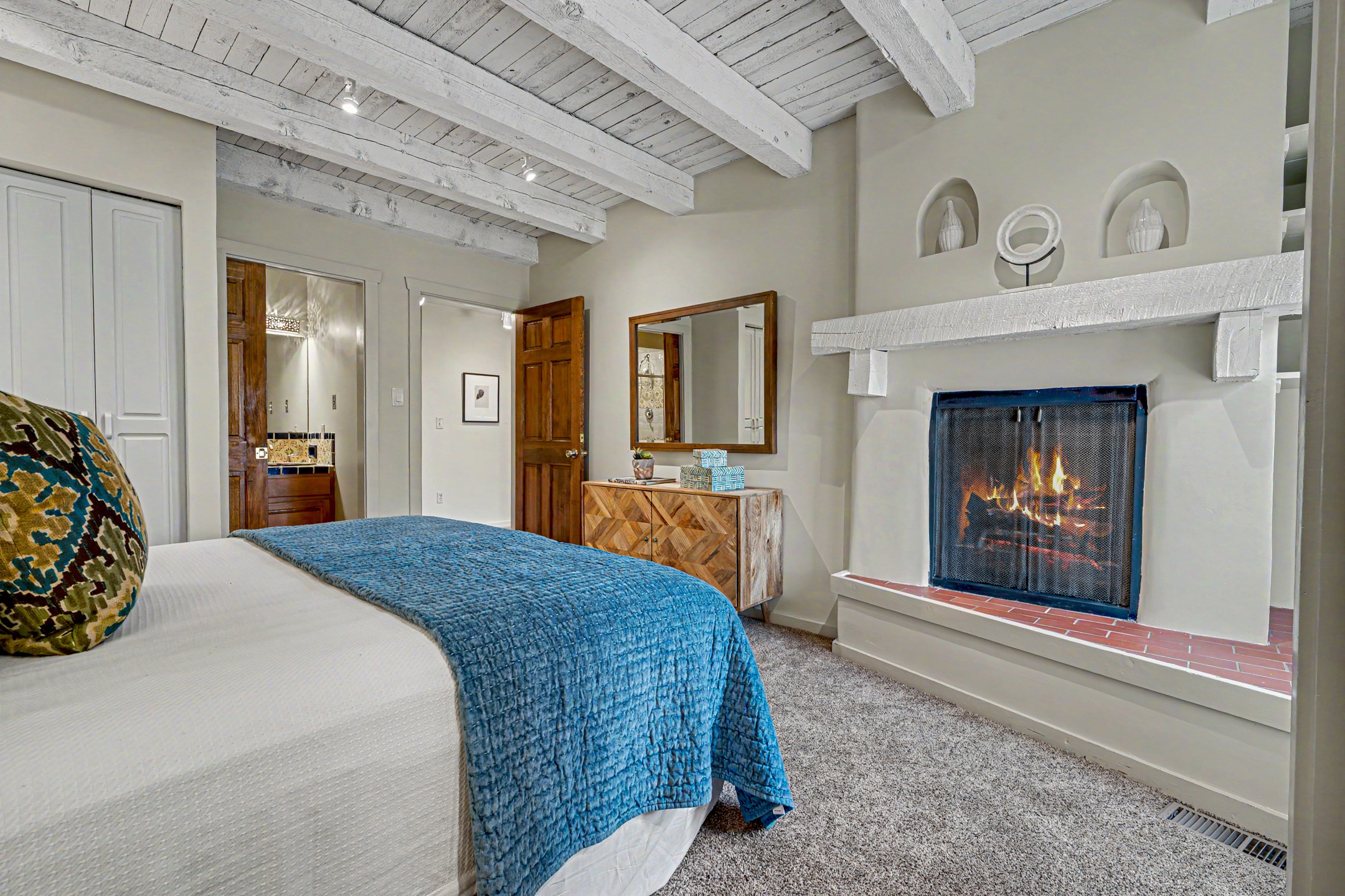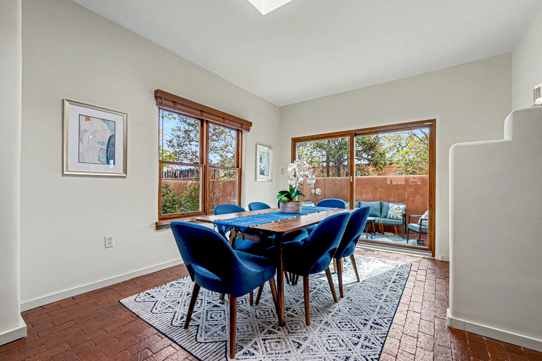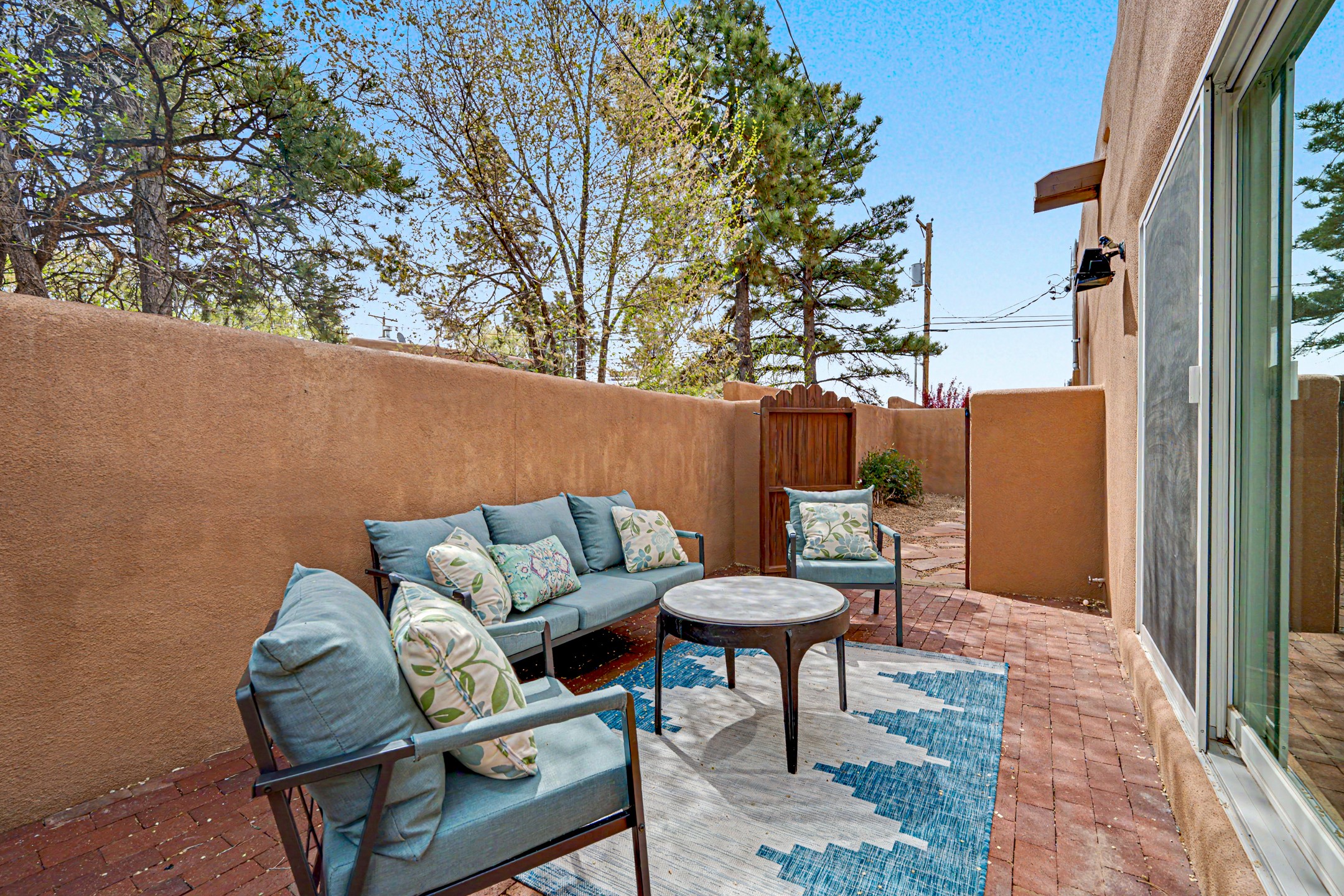 Rare opportunity to own an updated luxury condo just moments from the Santa Fe Plaza.This beautifully updated 3BD/2.5BA home offers 2,102 sq ft of refined Southwestern living. Warm and inviting, it features classic brick floors in the living and dining areas, two wood-burning fireplaces, wood flooring in the kitchen, and new carpet (March 2026) in the bedrooms. The updated kitchen includes butcher block countertops, a new refrigerator, and a new oven/stove(March 2026)--perfect for everyday living and entertaining. Recent upgrades provide exceptional comfort and peace of mind, including new HVAC with forced air heating and A/C (April 2026), TPO roof (Oct 2025), stucco (Nov 2025), and updated electrical panel and sub-panel (April 2026), along with extensive infrastructure improvements for long-term durability. Enjoy charming outdoor patios, a finished attached 2-car garage, and a highly desirable location just minutes from dining, galleries, and the heart of Santa Fe.