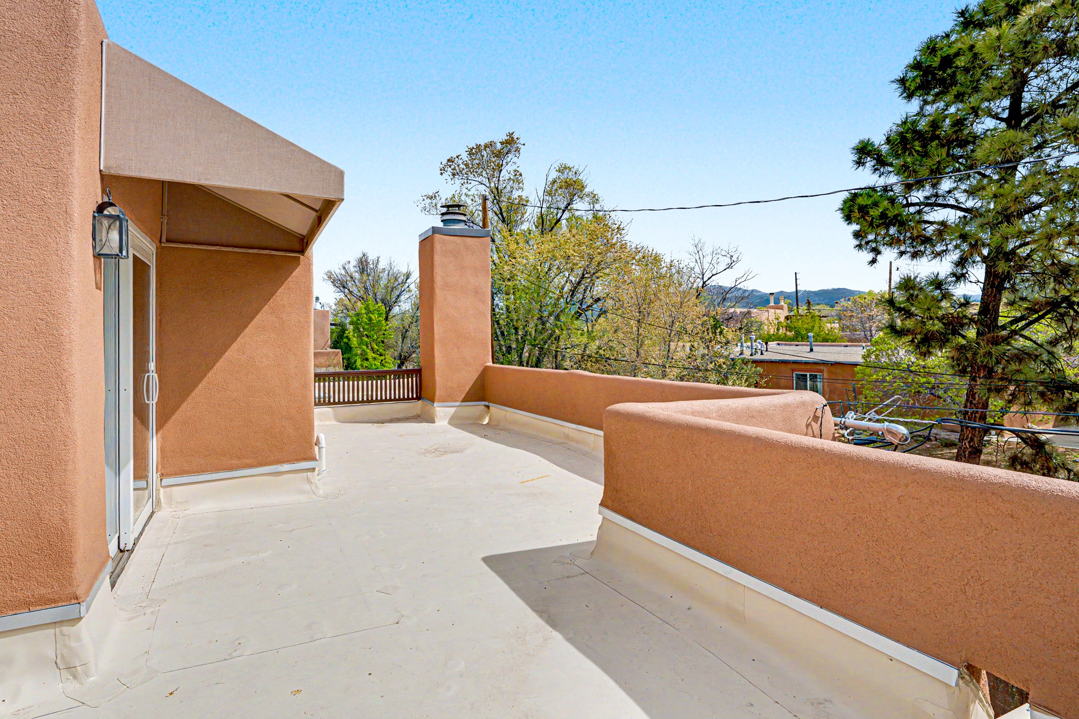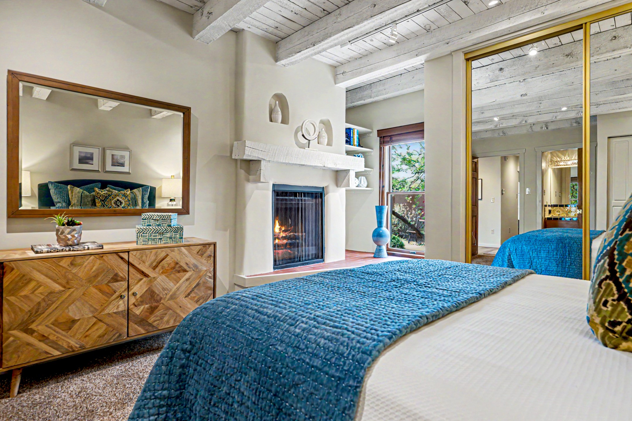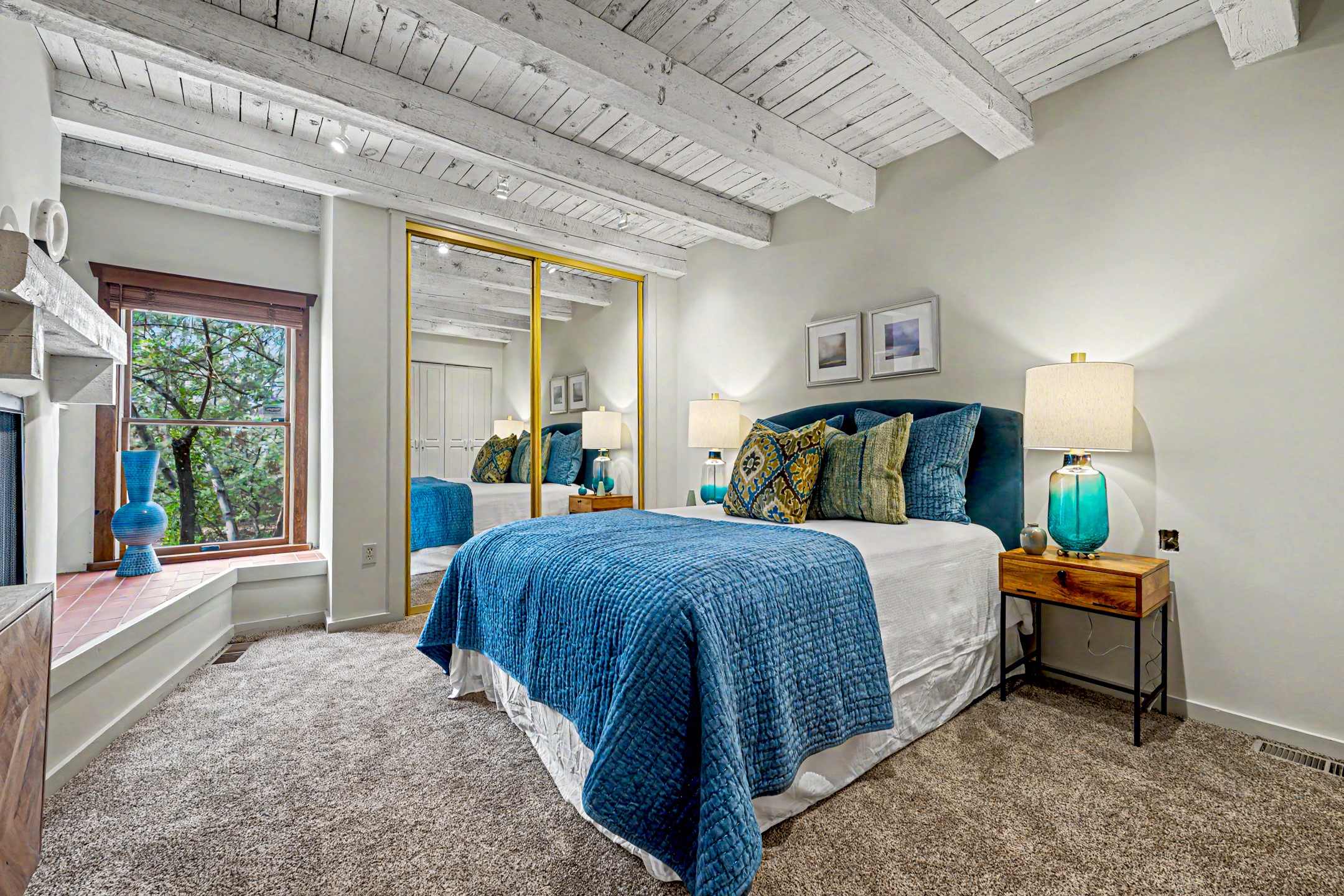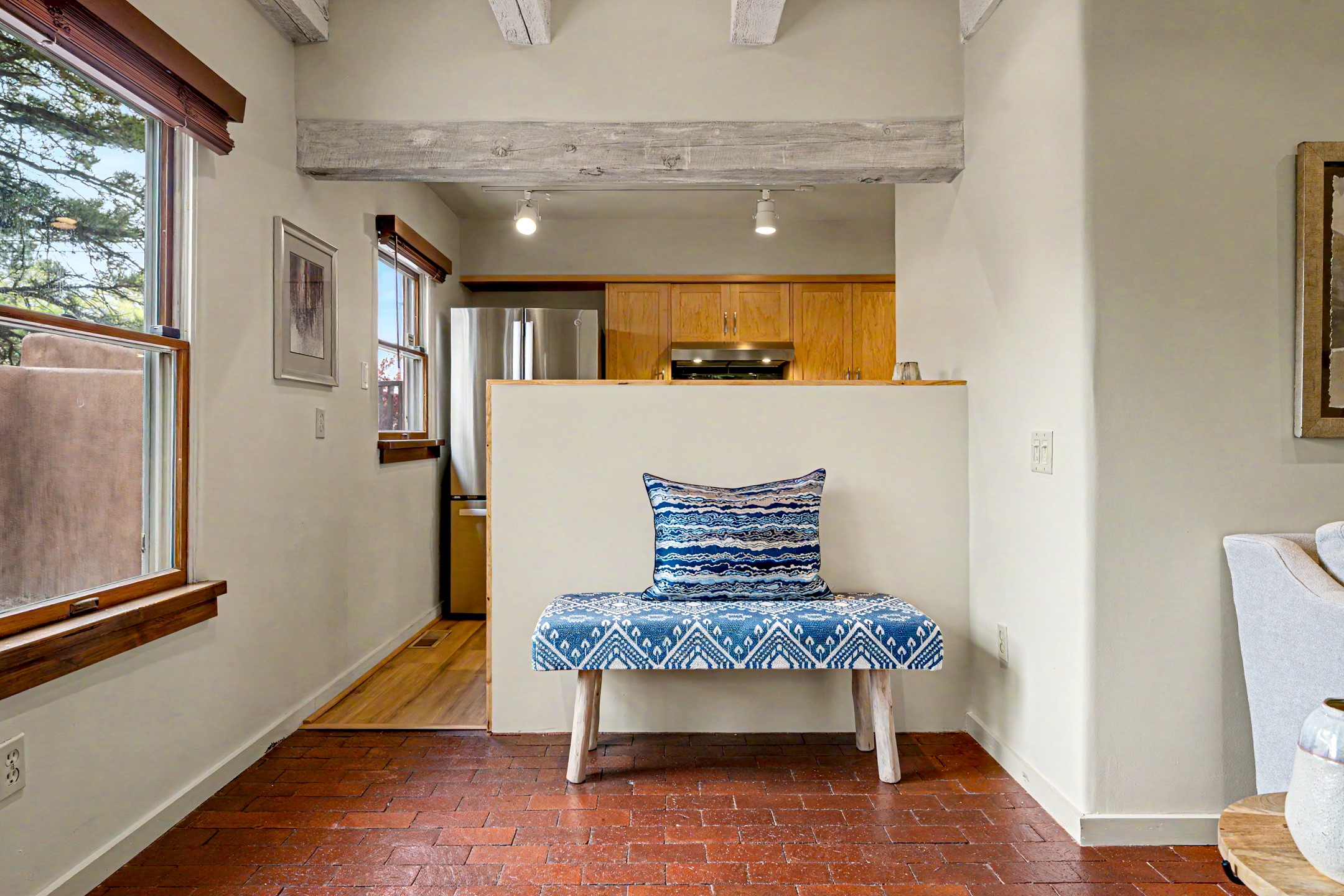 Rare opportunity to own an updated luxury condo just moments from the Santa Fe Plaza.This beautifully updated 3BD/2.5BA home offers 2,102 sq ft of refined Southwestern living. Warm and inviting, it features classic brick floors in the living and dining areas, two wood-burning fireplaces, wood flooring in the kitchen, and new carpet (March 2026) in the bedrooms. The updated kitchen includes butcher block countertops, a new refrigerator, and a new oven/stove(March 2026)--perfect for everyday living and entertaining. Recent upgrades provide exceptional comfort and peace of mind, including new HVAC with forced air heating and A/C (April 2026), TPO roof (Oct 2025), stucco (Nov 2025), and updated electrical panel and sub-panel (April 2026), along with extensive infrastructure improvements for long-term durability. Enjoy charming outdoor patios, a finished attached 2-car garage, and a highly desirable location just minutes from dining, galleries, and the heart of Santa Fe.