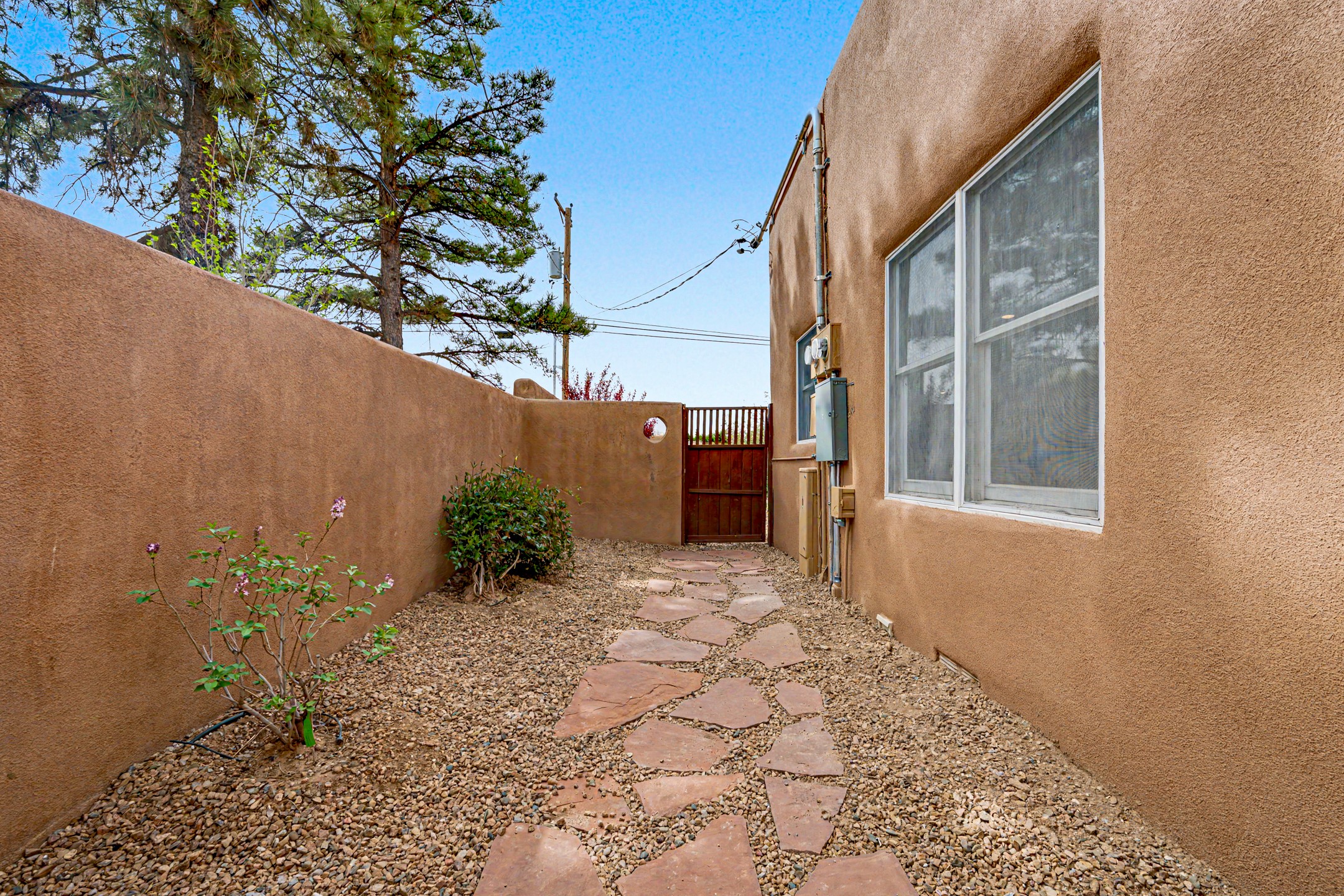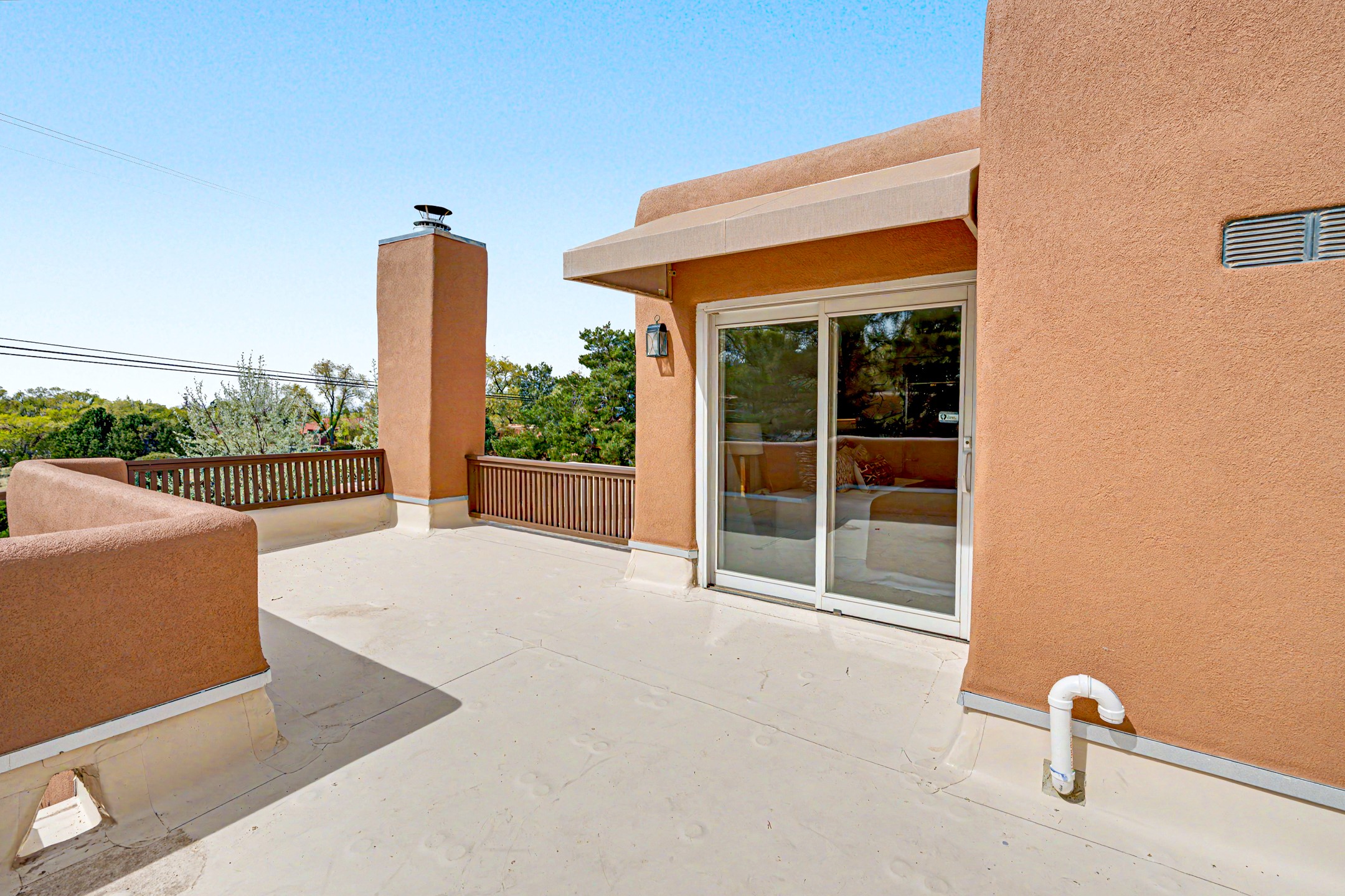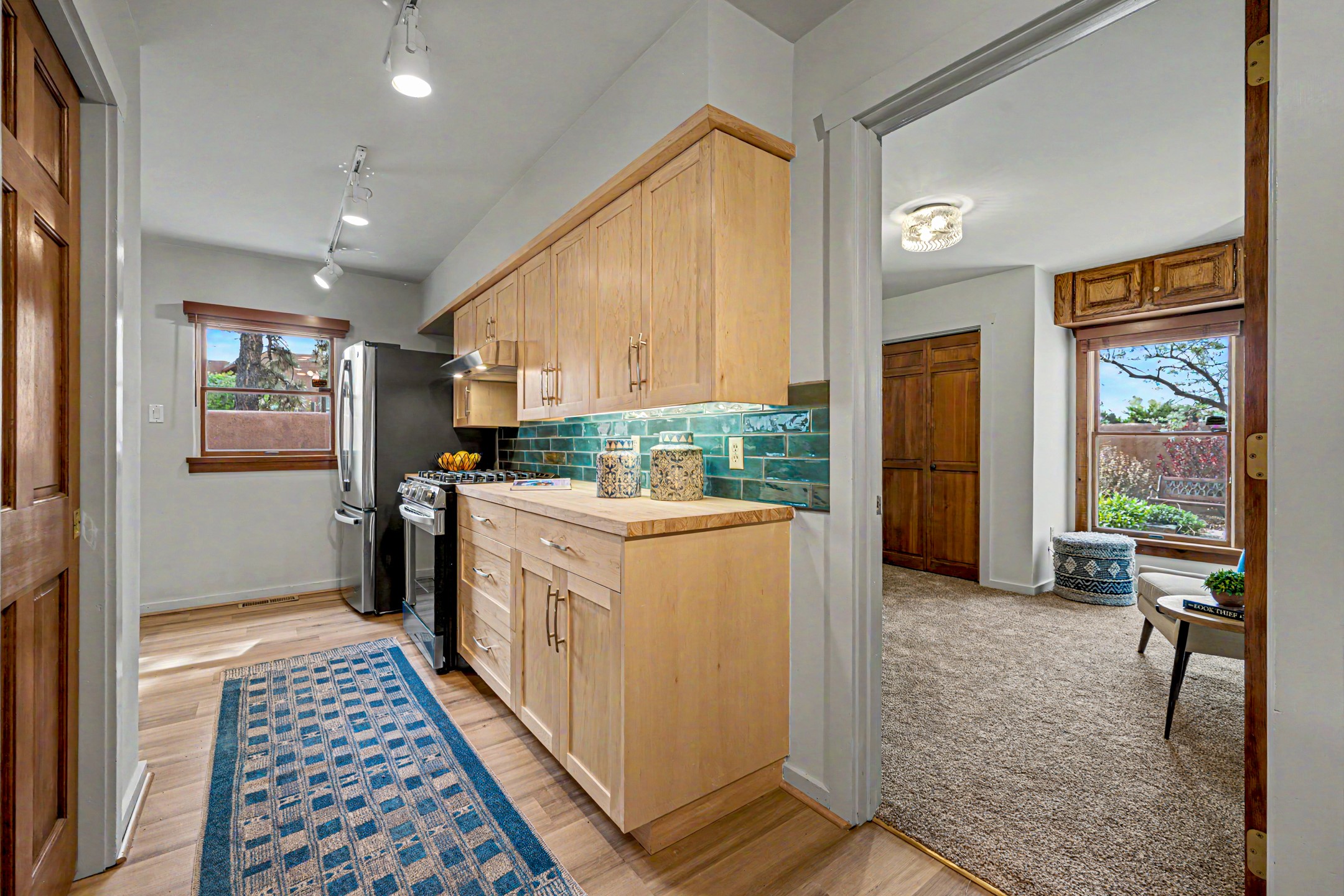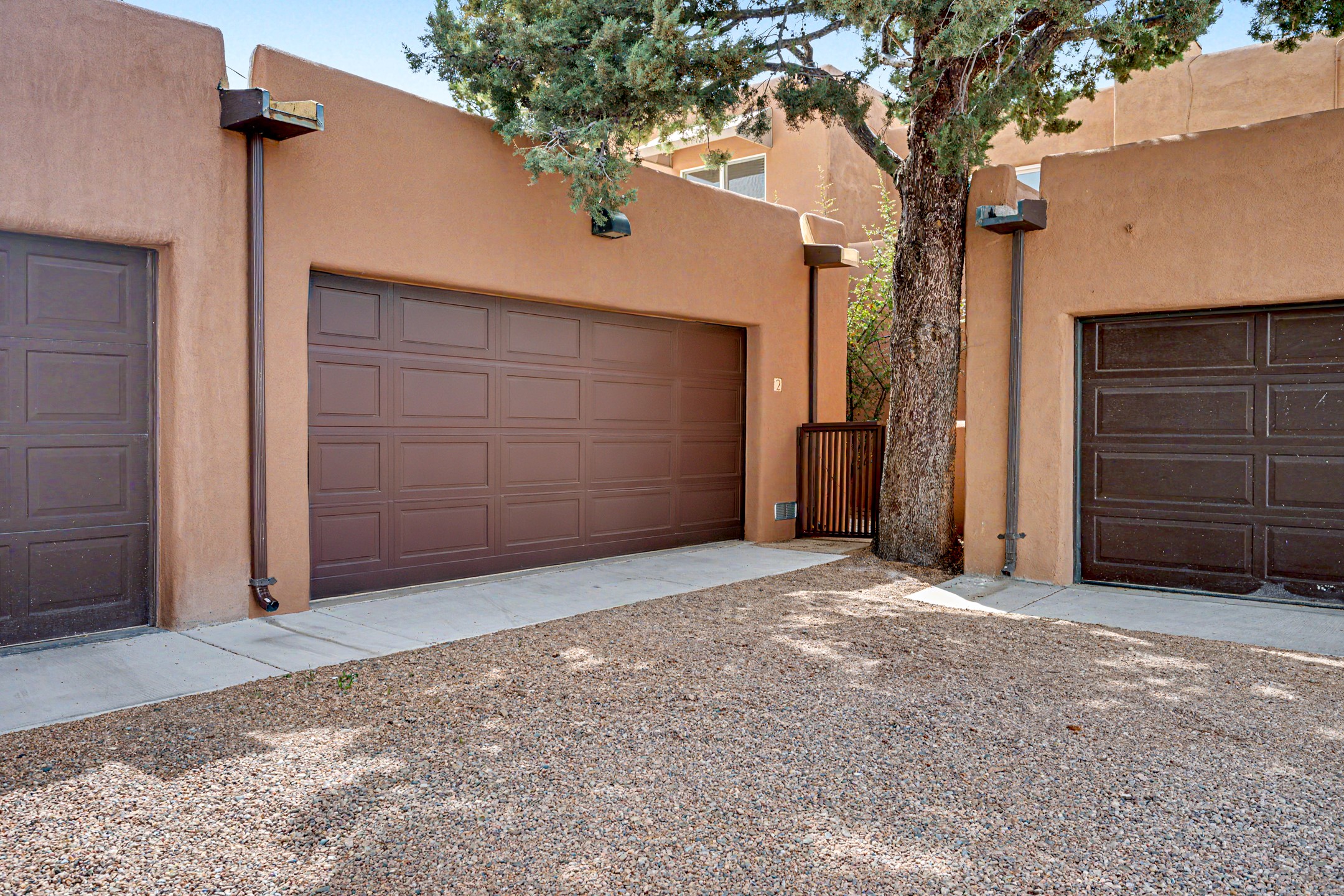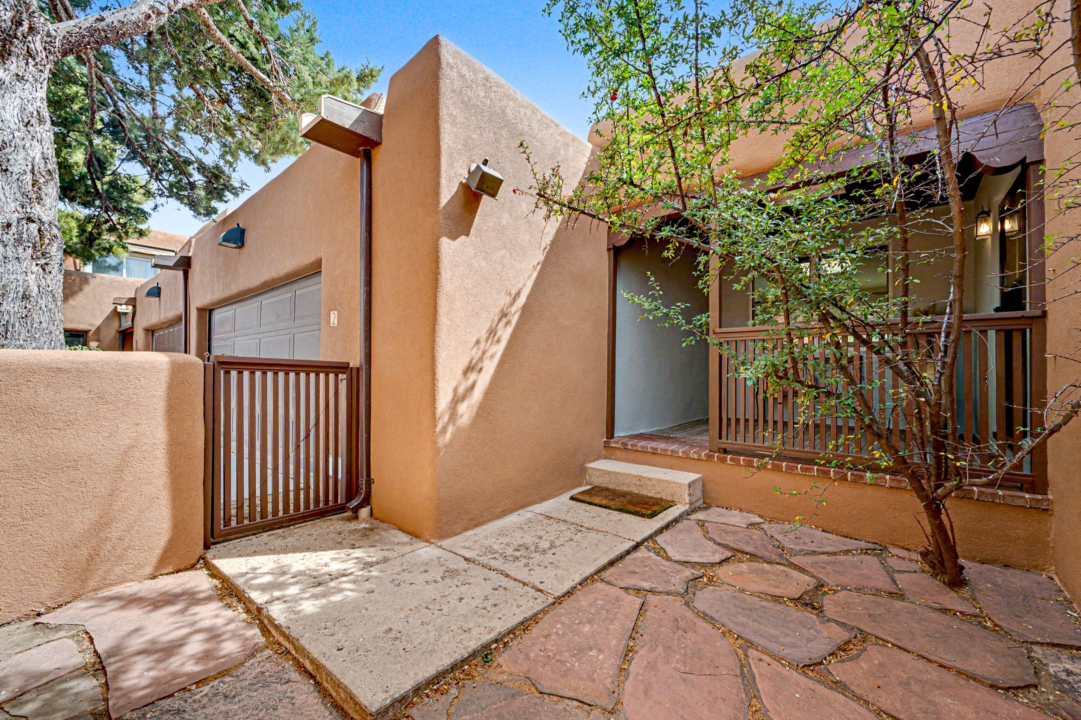 Rare opportunity to own an updated luxury condo just moments from the Santa Fe Plaza.This beautifully updated 3BD/2.5BA home offers 2,102 sq ft of refined Southwestern living. Warm and inviting, it features classic brick floors in the living and dining areas, two wood-burning fireplaces, wood flooring in the kitchen, and new carpet (March 2026) in the bedrooms. The updated kitchen includes butcher block countertops, a new refrigerator, and a new oven/stove(March 2026)--perfect for everyday living and entertaining. Recent upgrades provide exceptional comfort and peace of mind, including new HVAC with forced air heating and A/C (April 2026), TPO roof (Oct 2025), stucco (Nov 2025), and updated electrical panel and sub-panel (April 2026), along with extensive infrastructure improvements for long-term durability. Enjoy charming outdoor patios, a finished attached 2-car garage, and a highly desirable location just minutes from dining, galleries, and the heart of Santa Fe.