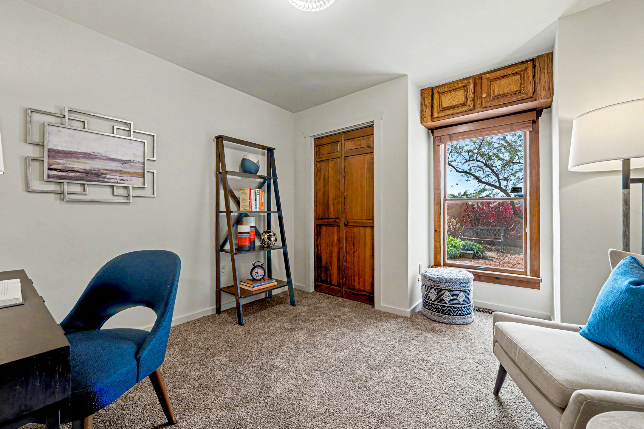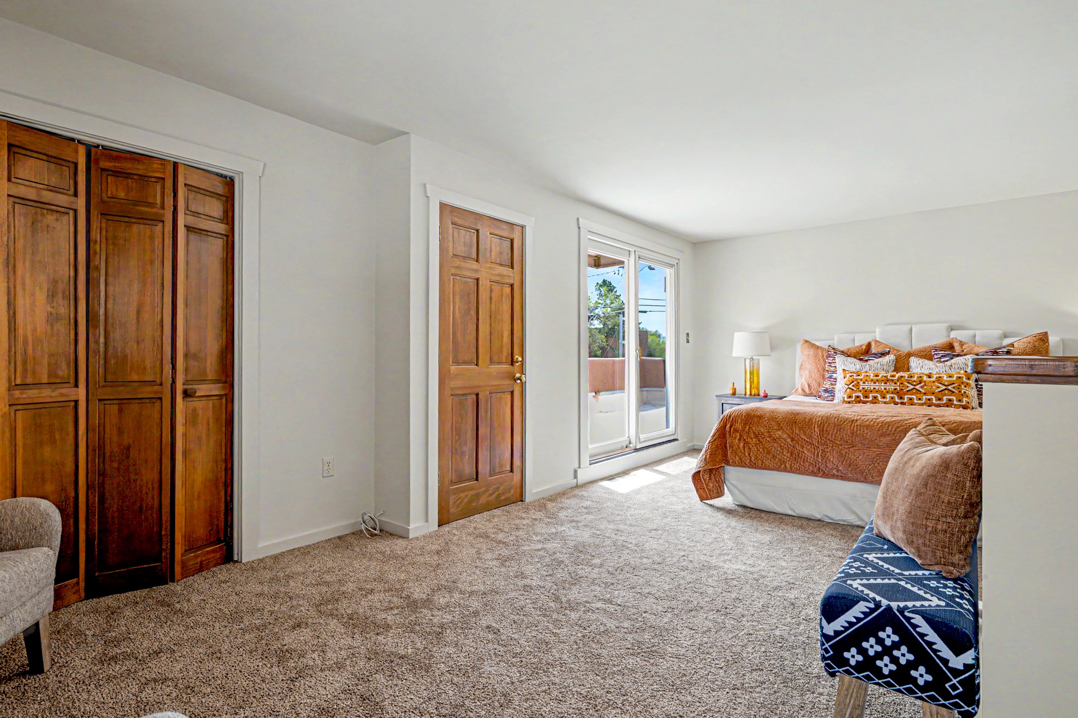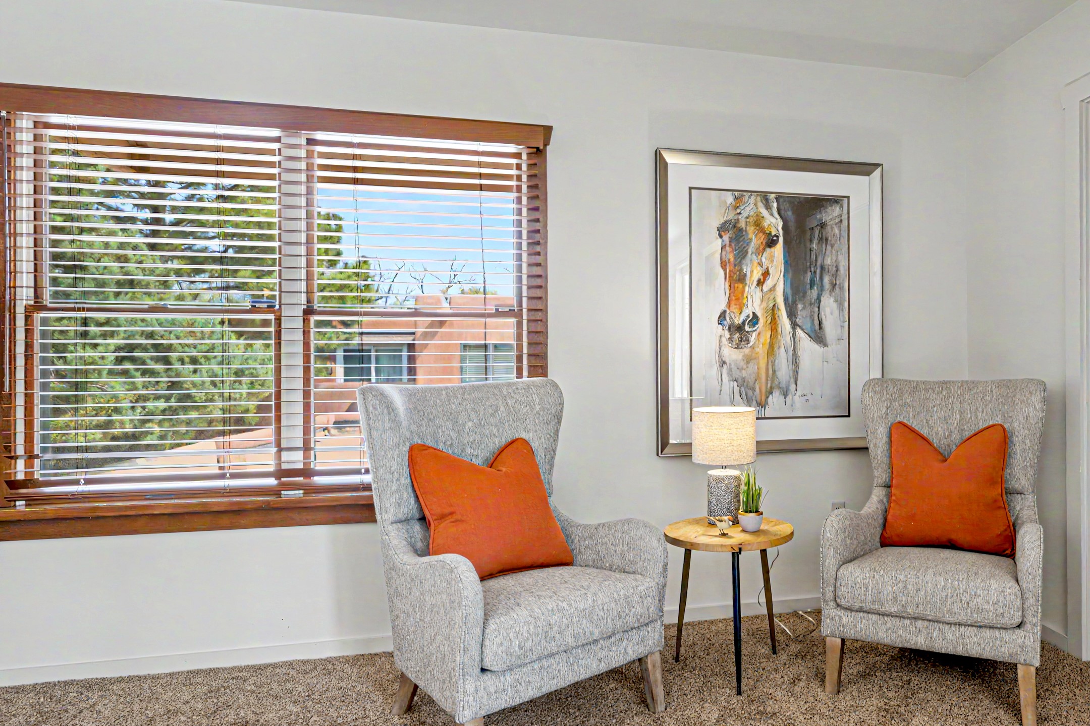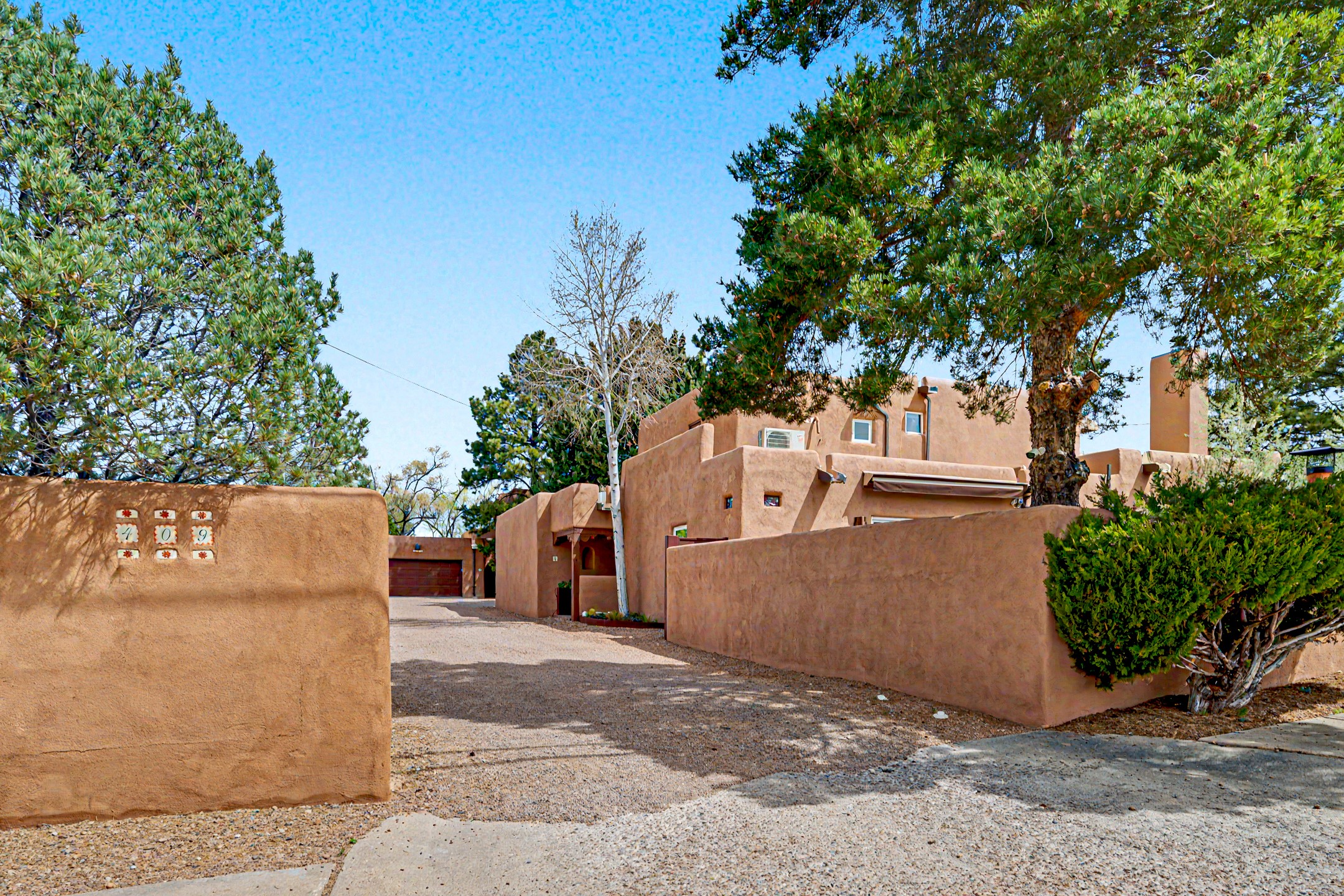 Rare opportunity to own an updated luxury condo just moments from the Santa Fe Plaza.This beautifully updated 3BD/2.5BA home offers 2,102 sq ft of refined Southwestern living. Warm and inviting, it features classic brick floors in the living and dining areas, two wood-burning fireplaces, wood flooring in the kitchen, and new carpet (March 2026) in the bedrooms. The updated kitchen includes butcher block countertops, a new refrigerator, and a new oven/stove(March 2026)--perfect for everyday living and entertaining. Recent upgrades provide exceptional comfort and peace of mind, including new HVAC with forced air heating and A/C (April 2026), TPO roof (Oct 2025), stucco (Nov 2025), and updated electrical panel and sub-panel (April 2026), along with extensive infrastructure improvements for long-term durability. Enjoy charming outdoor patios, a finished attached 2-car garage, and a highly desirable location just minutes from dining, galleries, and the heart of Santa Fe.
