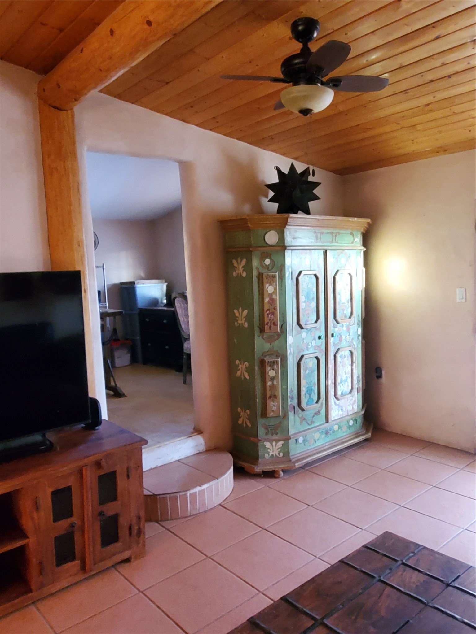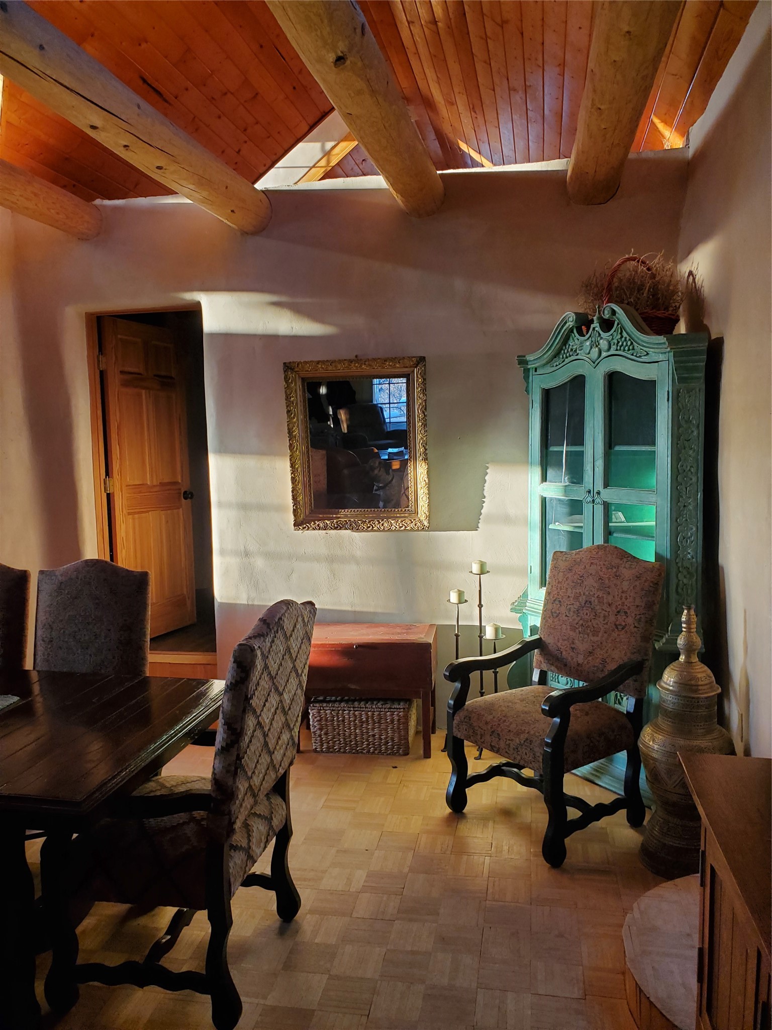 This is quintessential Northern New Mexico. The location, on the outskirts of the historic village of El Rito, boasts creek frontage and easy access to beautiful National Forest land just down the road. The home was originally built in 1880 and was remodeled and restored in 2006. There have been many upgrades since including new tile and appliances There are wonderful architectural details everywhere with lots of light, spacious rooms, and ample storage. The floors are tile, wood, and luxury vinyl tile, with extra tile included in the sale. The home has two bedrooms and two baths. The living area offers flexible space with a room near the kitchen that can be studio or office space. The construction is adobe and frame construction and it has 1964 square feet. The charming guesthouse is 96 square feet with a sleeping loft. It is plumbed for water and has a camp toilet. There is a spacious 660 sq ft work shop with 220 service but it is unheated. The outdoor spaces offer stunning views, privacy, and a pond/fountain. Adjacent are some old sheds that could be put to use in many ways. The chain link dog fencing will be removed. Closer to the river there is a two horse barn with a pipe fenced turnout.The location is rural with dark night skies, quiet, privacy, and wildlife. El Rito offers a medical/dental clinic, community library, local elementary school, annual art tours, and the famous Farolito Restaurant. Please do not attempt to enter the property without a confirmed appointment as there are guard dogs on the premises.