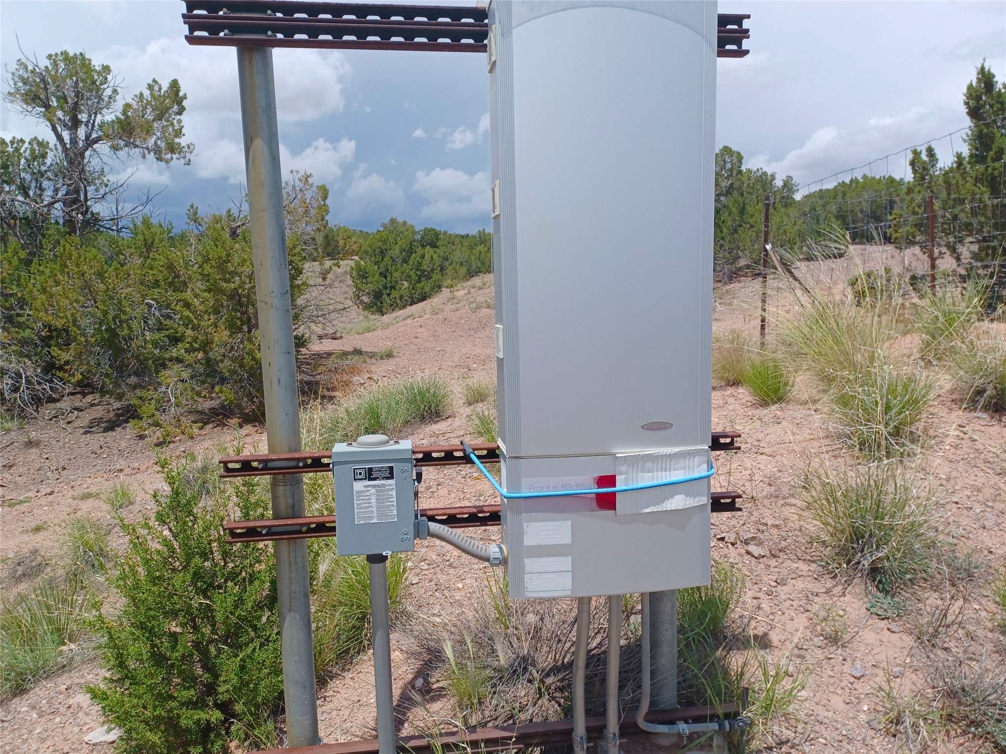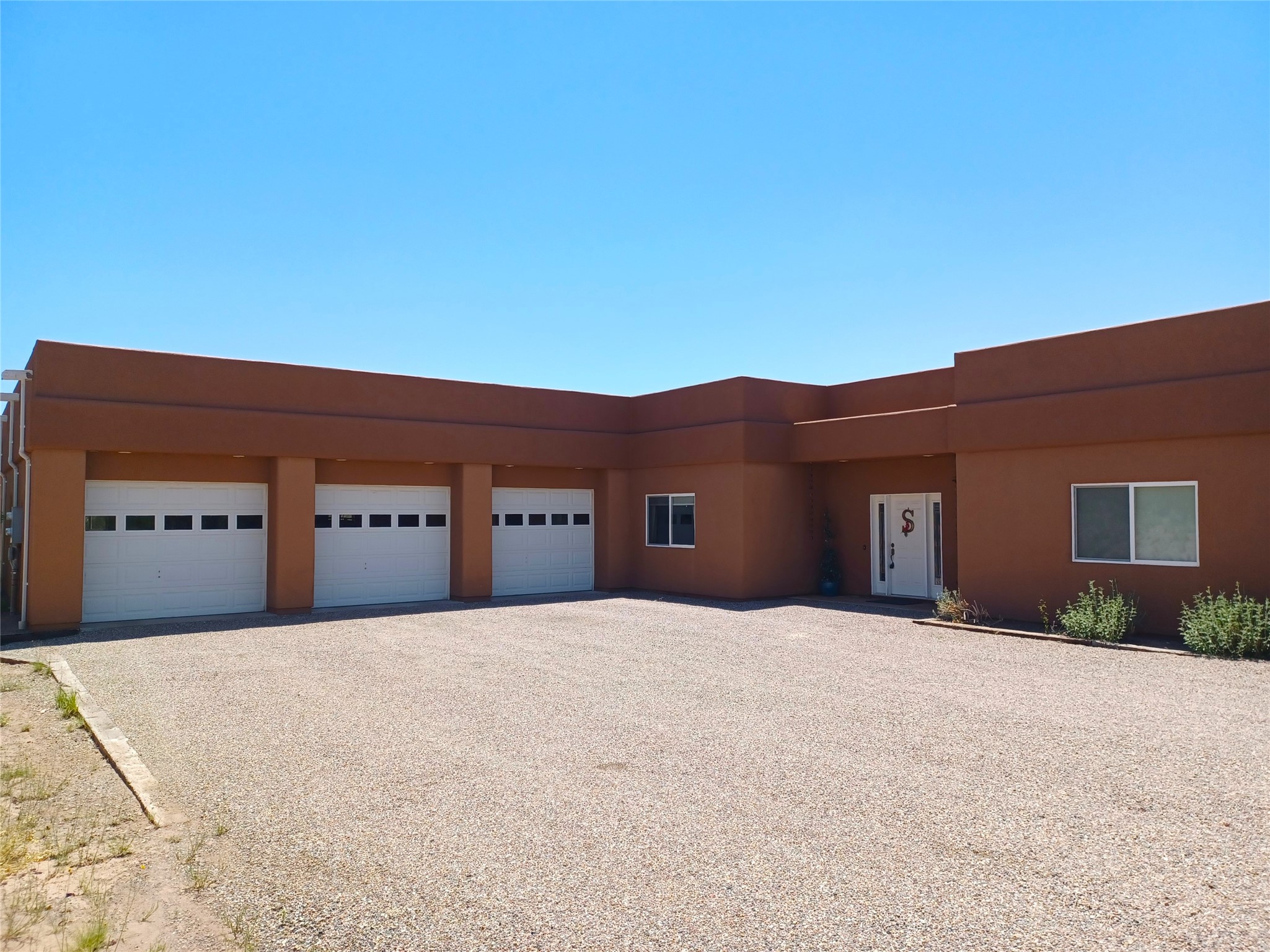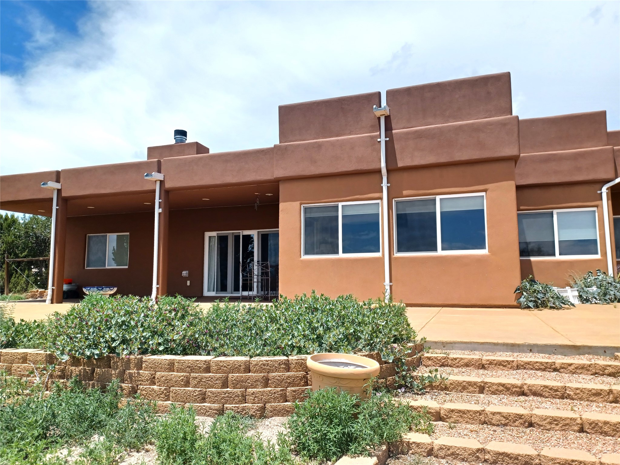 Welcome to the exceptional property located at 64 Coyote Trail in Santa Fe County. Situated on over 20 acres, this distinguished luxury home represents a meticulously planned and executed estate, achieving complete independence from fossil fuels. The residence features a contemporary geothermal system for heating and cooling, effectively replacing propane and natural gas, alongside a substantial solar photovoltaic array that not only powers the home but also contributes energy back to the grid. The property maintains a connection to PNM to ensure continued electric service. Furthermore, a private well and septic system enhance this home's self-sufficiency, resulting in remarkably low operating costs throughout the year. The residence encompasses 3,619 square feet and includes three bedrooms and three bathrooms. The master suite is particularly noteworthy, featuring two separate, luxurious ensuite bathrooms on opposing sides, all wheelchair accessible as the rest of the home. Additional interior features include classic eurpoean design touches, a wood burning fireplace and a formal dining room. The property also boasts a generous 1,786 square foot temperature controlled garage, suitable for 6 + vehicles or to use as a workshop. Constructed with superior quality on a concrete slab, this remarkable home reflects uncompromising standards. I invite you to schedule a private viewing of this unique property at your earliest convenience. Please be advised that showing times are limited, and the listing Broker is required to be present for all appointments. There is not a for sale sign on the street and the gate remains locked except for confirmed showings.
