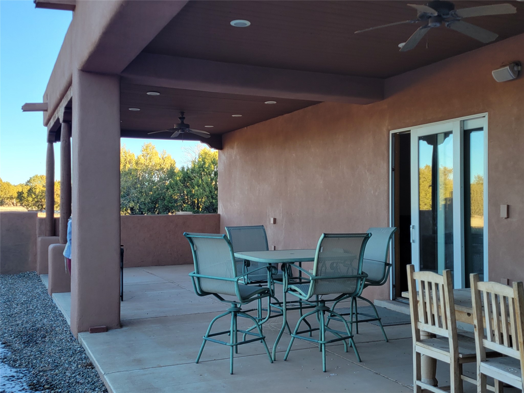 BACK ON THE MARKET!! Convenient Country Comfort. This Pueblo Style home is now only $549,000.Far below the appraisedvalue of $585k in 2021 !! Itis secluded in a rural setting with easy access to I-25. Many large windows showcase the beauty of thearea with striking views ofRowe Mesa. Only 40 minutes to Santa Fe and 30 minutes to Las Vegas with scenic drives both ways. Itsits on 3 acres ofunspoiled nature. The circular entrance opens to the welcoming warmth of this immaculately cared for home. Afamily area cravesCozy Cuddle-ups by the wood stove or patio opens to Courtyard Cookouts . Kitchen has beautiful granitecabinet tops and great,solid wood cabinets with unbelievable storage space. Extra large laundry room with W/D hookups, sink areaand large cabinetspace. Granite countertops in all bath areas. Master bedroom includes a massive walk-in closet. 3 car, insulatedgarage. Highspeed internet provided by Plateau is available. Main living area boasts a 14' ceiling and 12' ceiling in the rest of thehome.Architectural design of Transoms above windows and doors increases natural light. Recessed lighting and Built-in soundsystemthroughout. Walls are beautiful smooth, drywall . Solid wood doors and trim throughout. House includes radiant heat intheflooring. Upgrades in 2021 include 2 rooftop heating and refrigerated A/C units and new TPO roof on the entire structure(almost5000 sf). Pella doors and windows. Bosch appliances. This home has special features to accommodate your largegatherings offriends and/or family, inside or outside. The hassle of the city is outdone by the secluded beauty and warmth of thishome. Highlymotivated sellers. Come take a look today!