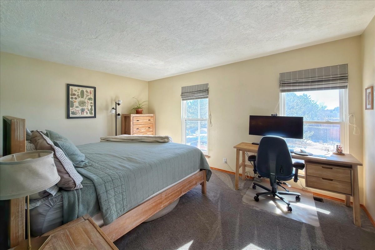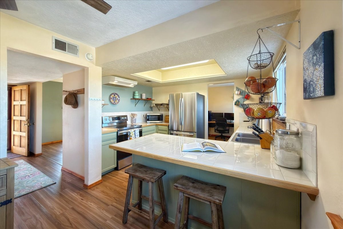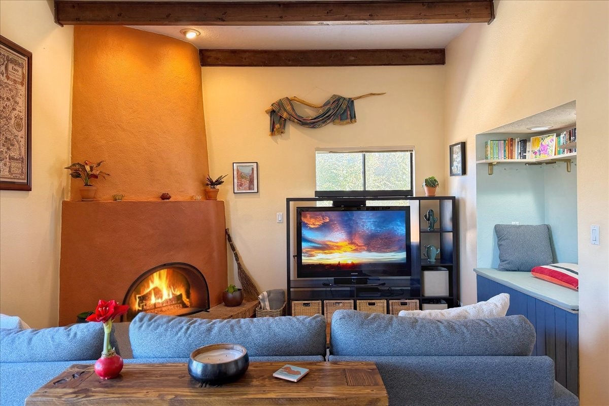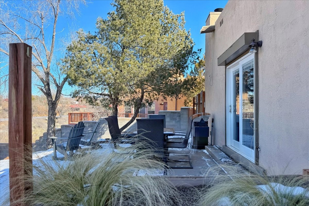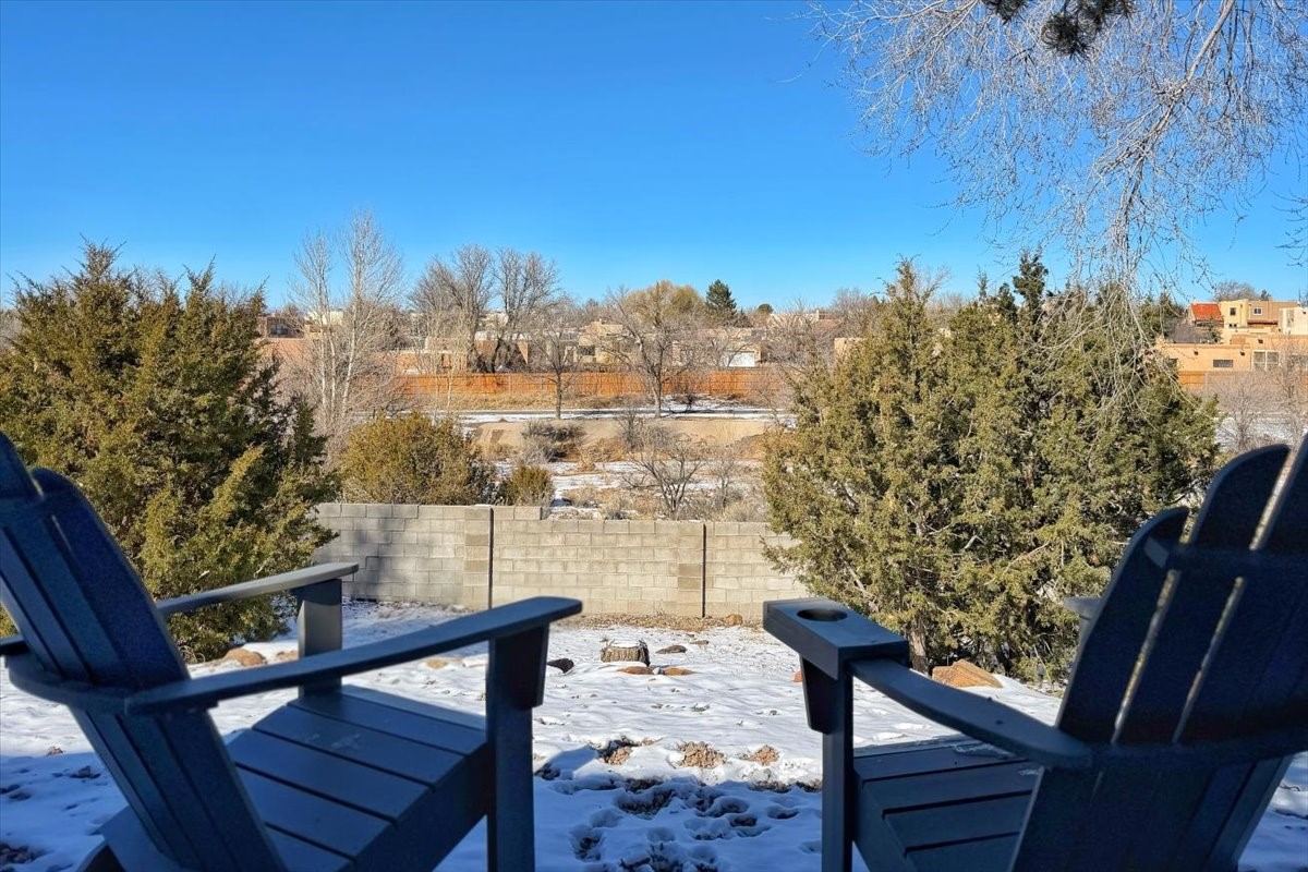The ultimate move-in-ready home awaits in this desirable close-in neighborhood. Thoughtfully updated throughout, the home features new energy-efficient Pella windows, a new TPO roof with transferable warranty, luxury vinyl plank flooring, updated forced central air heating and cooling, and an attached two-car garage--making it truly turnkey.The main level offers an open and inviting floor plan with kitchen, dining, and living areas anchored by a cozy kiva fireplace. A convenient powder room, laundry room, and direct access to the two-car garage (with EV charging) are all located just off the living space for everyday ease.Upstairs, three bedrooms enjoy lovely views and generous reach-in closets. Two bedrooms share an updated full bath, while the primary suite offers its own en-suite bath and a large closet.Situated on approximately .24 acres in a sought-after neighborhood off Zia Road, the back of the property opens to nearby trails and open land with beautiful Sangre de Cristo views. The front features a charming courtyard and landscaped yard, perfect for relaxing or entertaining. Shopping, dining, and recreation are conveniently close, with easy access to St. Francis Drive, Zafarano, and the Genoveva Chavez Community Center.