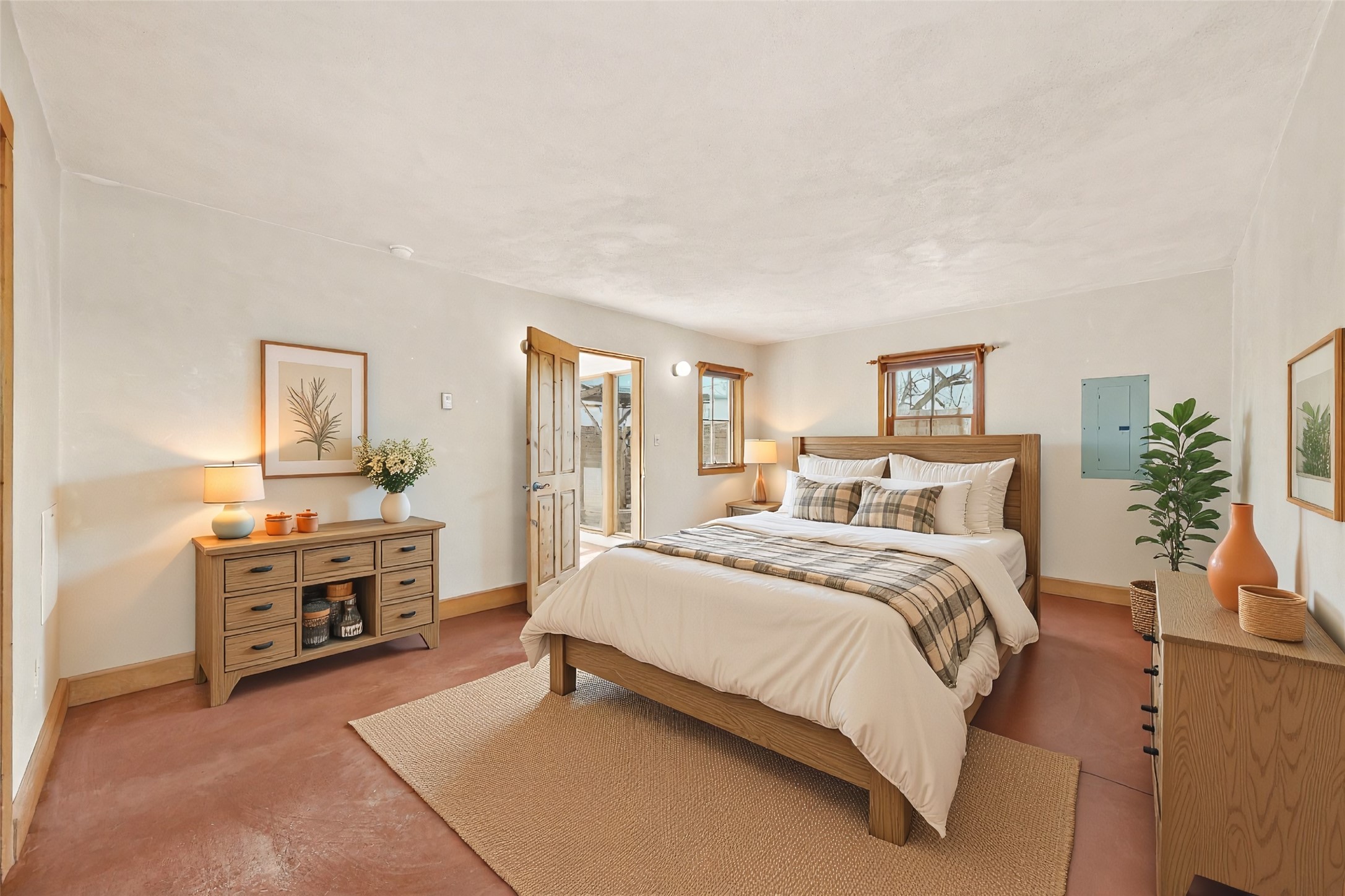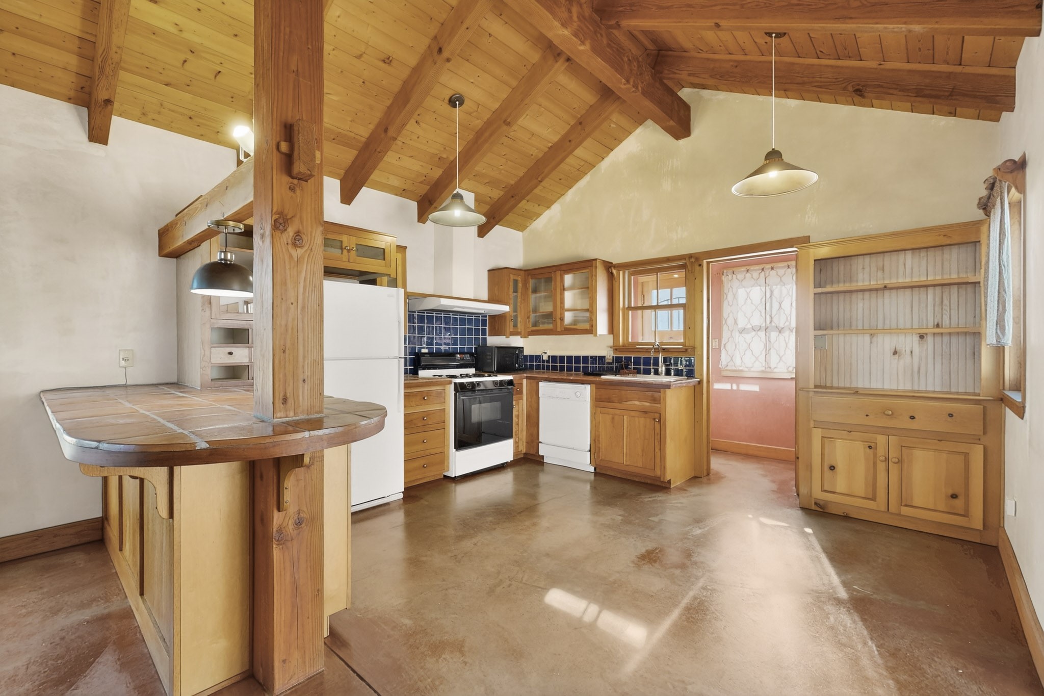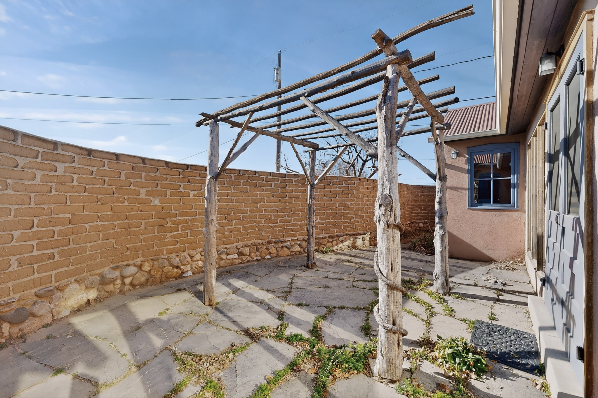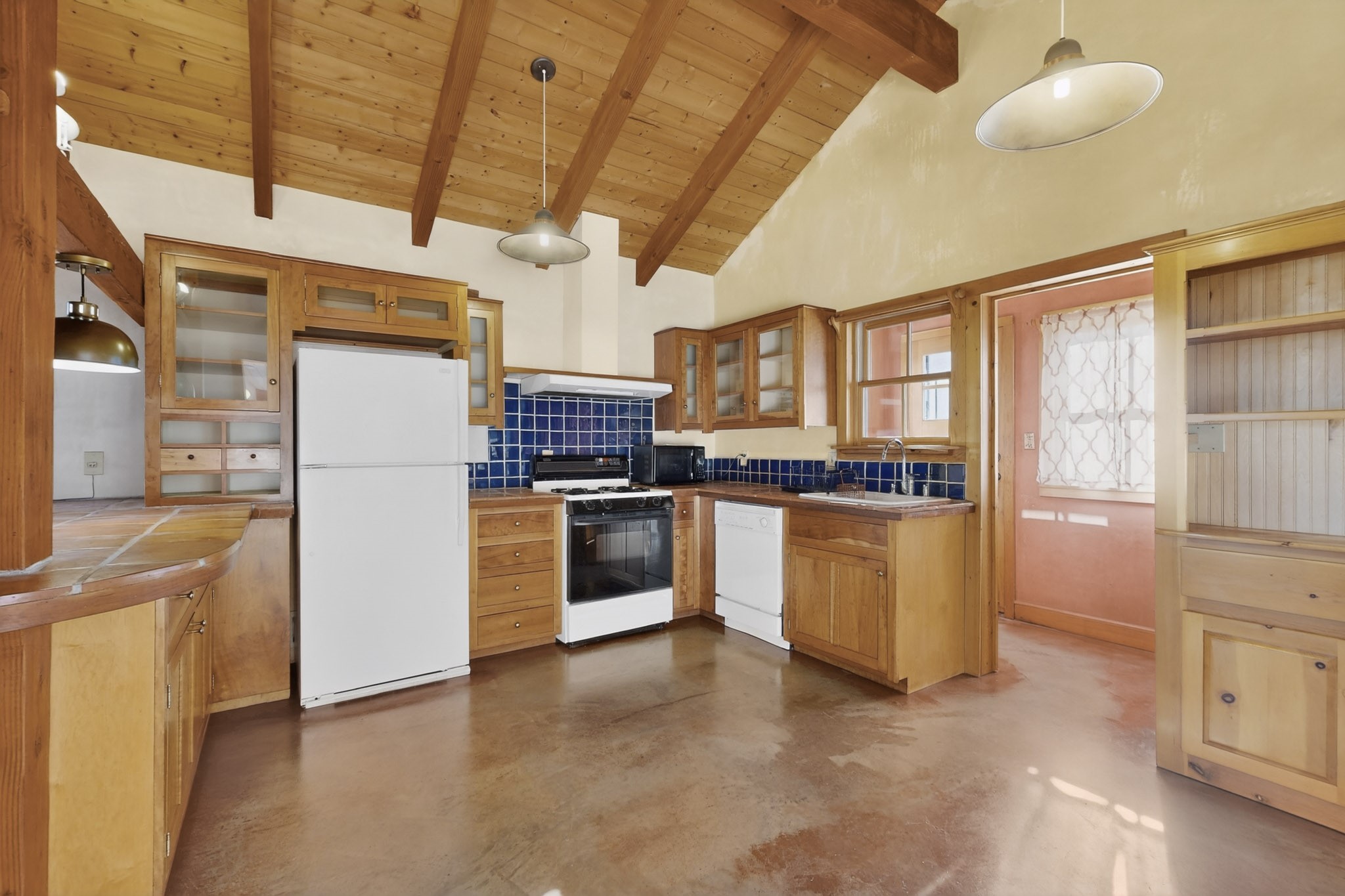 Quintessential northern New Mexico design meets everyday livability in this uber-charming two-bedroom, two-bath home that feels rooted, warm, and unmistakably Santa Fe. Polished concrete floors run throughout, paired with radiant heat for year-round comfort, while a pitched roof and high ceilings bring in light and a relaxed sense of volume. The cozy kitchen opens to the main living space, anchored by a sweet kiva fireplace that adds warmth and character. Two comfortable bedrooms offer privacy and flexibility. A detached studio provides inspiring bonus space for art, work, or easy conversion into a guest house. Recent improvements include a new water heater, adding peace of mind. Live like a true local with a 7-minute drive or 37-minute walk to the Santa Fe Farmers Market and just ten minutes by car to the heart of the city at the Santa Fe Plaza. A soulful home in a location that connects you effortlessly to Santa Fe living.