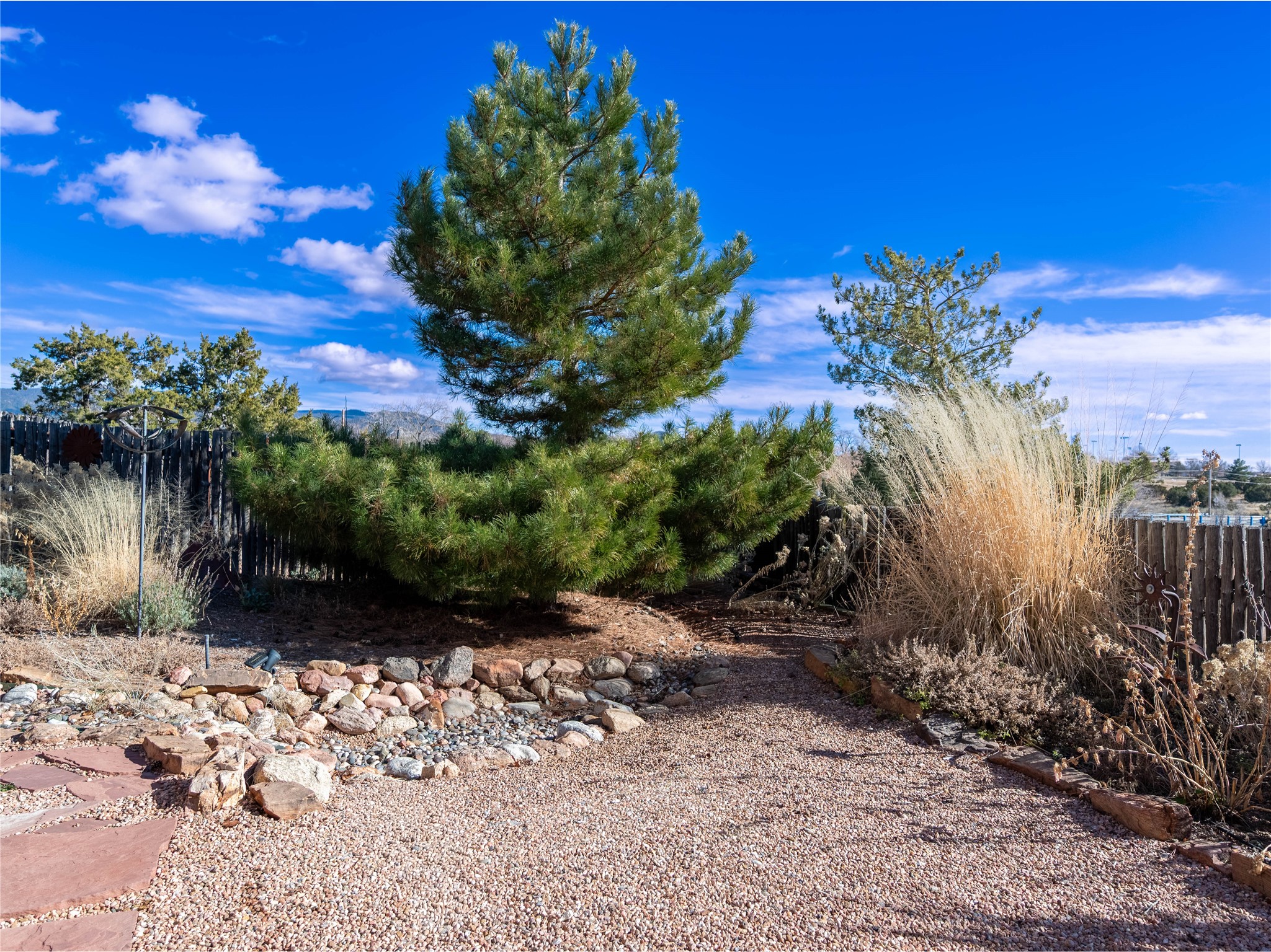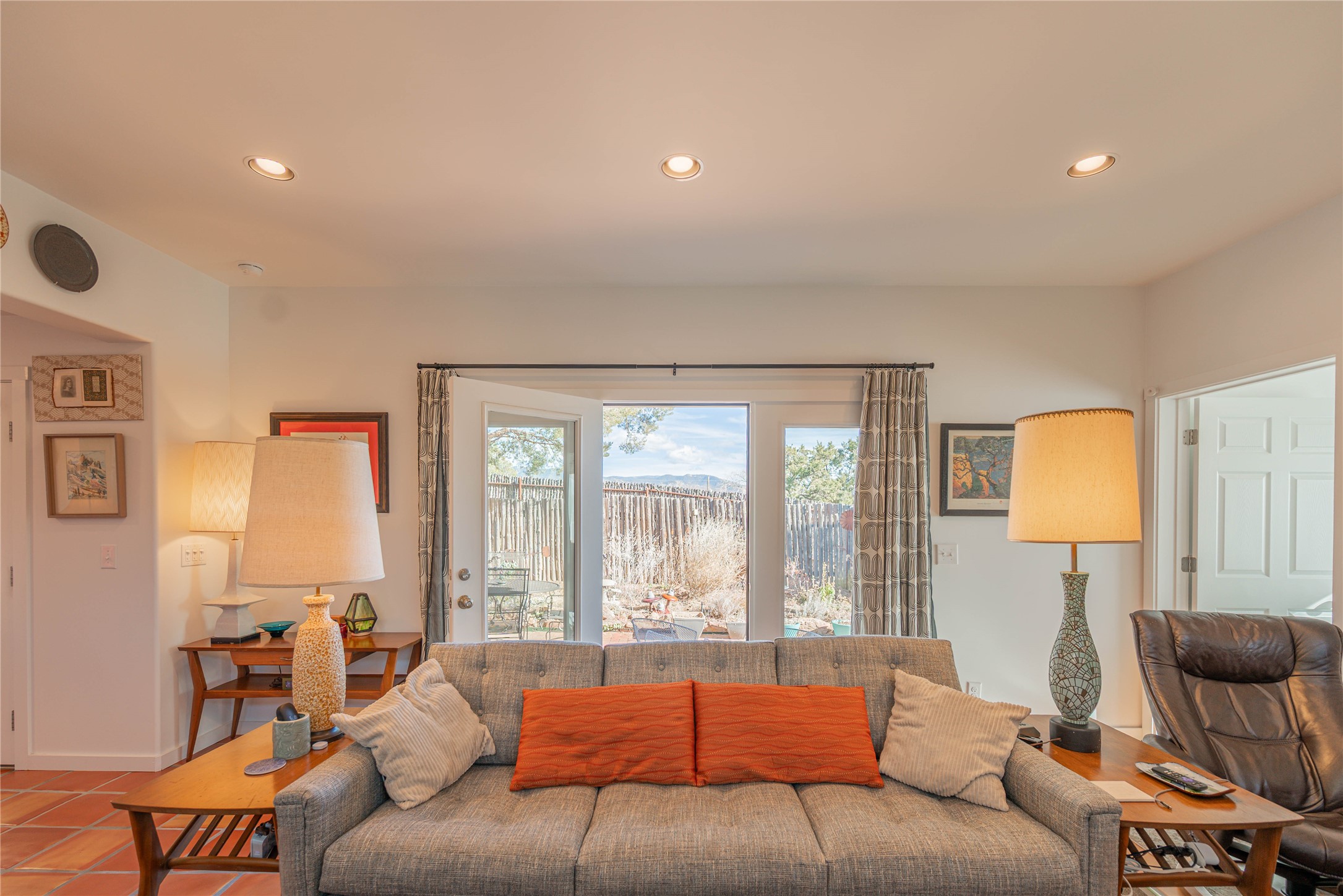 Tucked into the heart of Los Chamisos, this inviting single-level Pueblo-style residence offers a refined balance of classic Santa Fe charm and thoughtful modern updates. Designed for ease and comfort, the home unfolds across approximately 1,589 square feet, creating a warm, flexible environment well-suited for both everyday living and quiet retreat.A 2022 addition significantly expanded the home, introducing generous living space filled with natural light--perfect for a home office, creative studio, or relaxed second living area. Throughout the home, clean lines and purposeful updates create a calm, cohesive aesthetic that feels both grounded and contemporary.The kitchen and dining areas flow comfortably for daily life and casual entertaining, complemented by updated cabinetry and finishes. Efficient mini-split heating and cooling systems provide year-round comfort, while newer windows and doors enhance light, insulation, and indoor-outdoor connection. Bedrooms are well proportioned and private, offering restful spaces with updated flooring and thoughtful storage.Outdoors, a landscaped backyard with patio pavers creates a welcoming extension of the living space--ideal for morning coffee, evening gatherings, or simply enjoying Santa Fe's high-desert light. The setting feels private yet connected, with a low-maintenance lot that supports a relaxed, lock-and-leave lifestyle.Located just minutes from shopping, dining, medical services, and downtown Santa Fe, Los Chamisos is prized for its in-town convenience and neighborhood feel. With modest HOA dues and a history of careful maintenance and improvement, this home presents an exceptional opportunity to enjoy comfortable, authentic Santa Fe living in a highly desirable location.