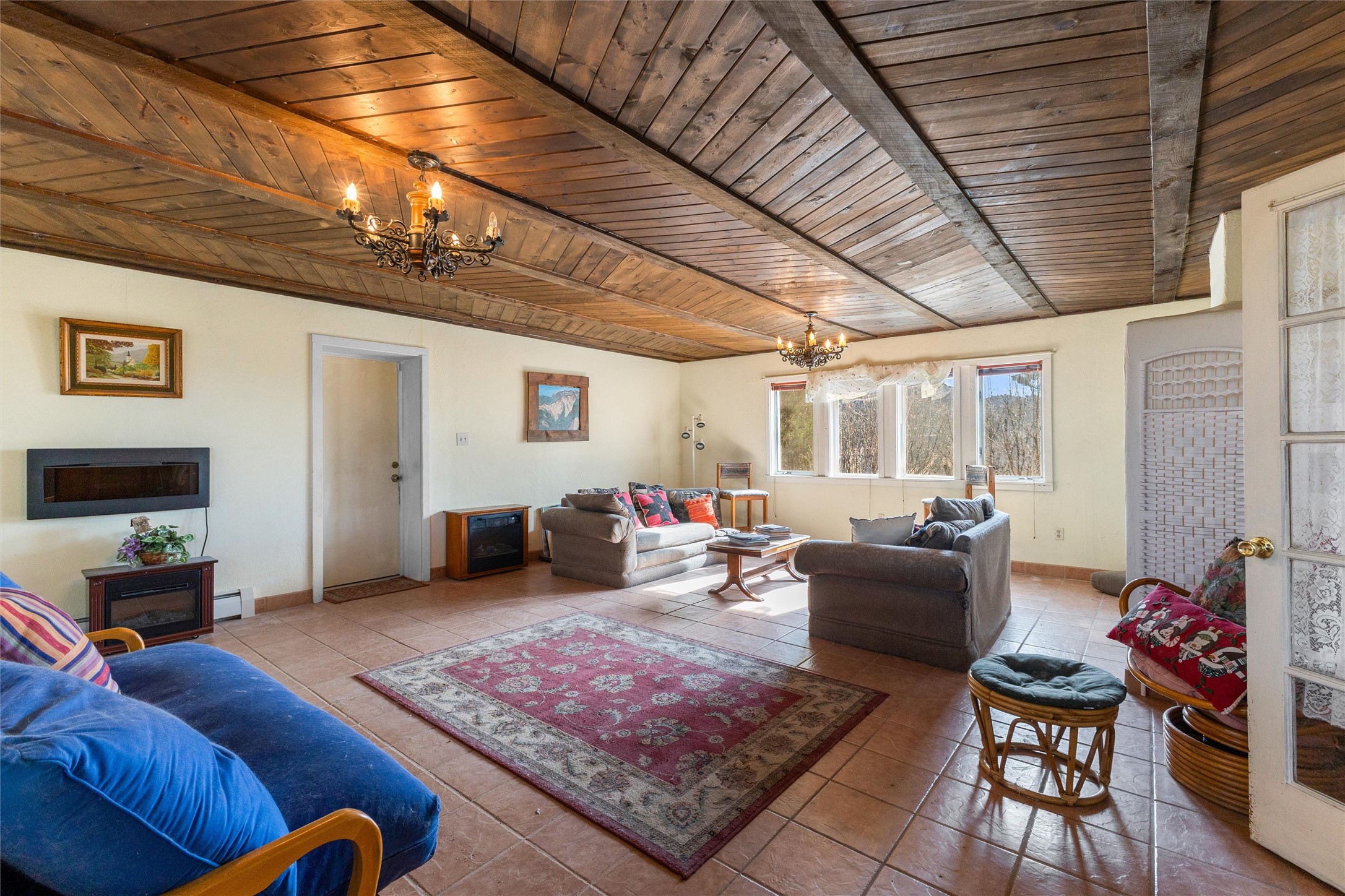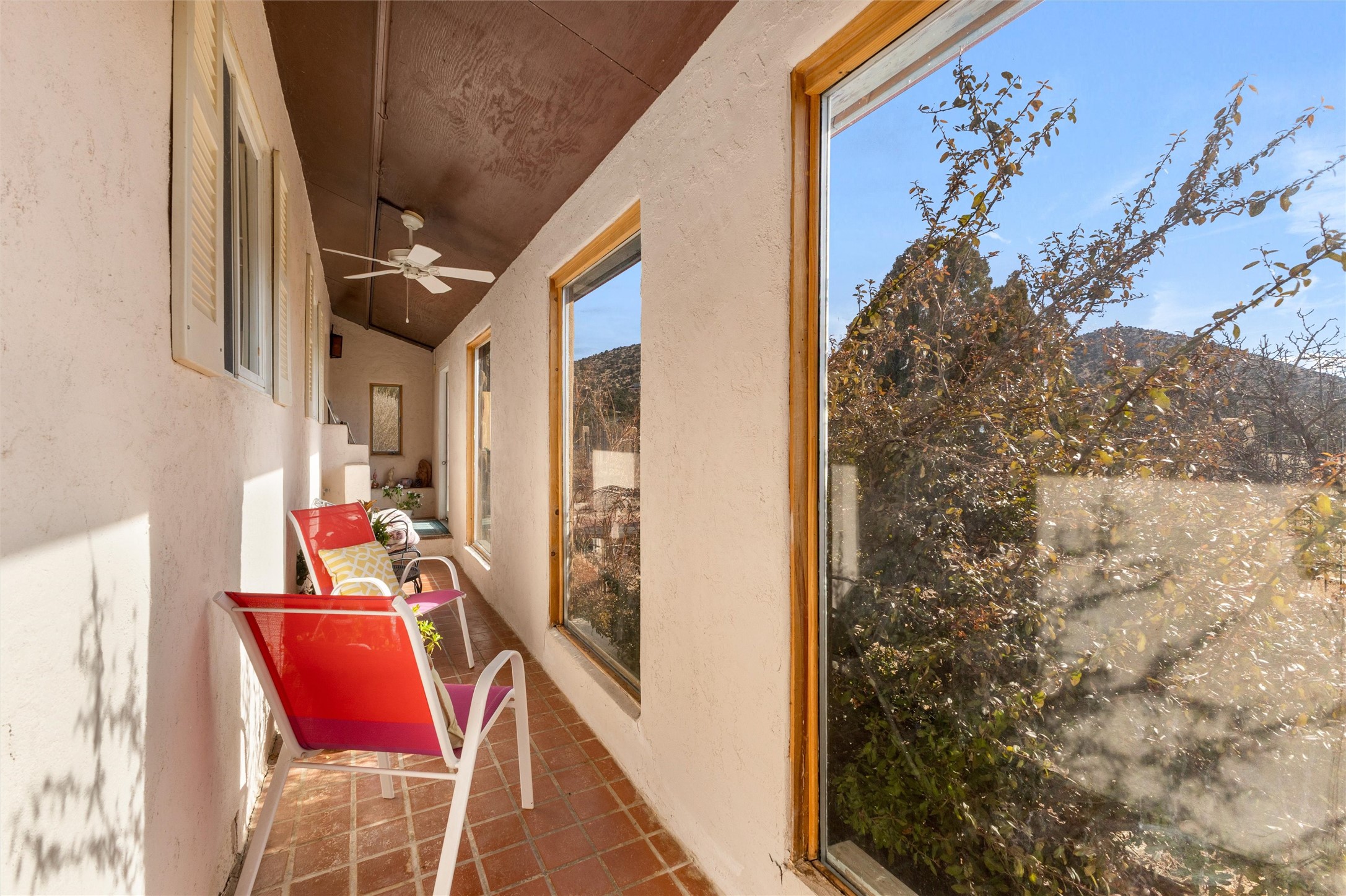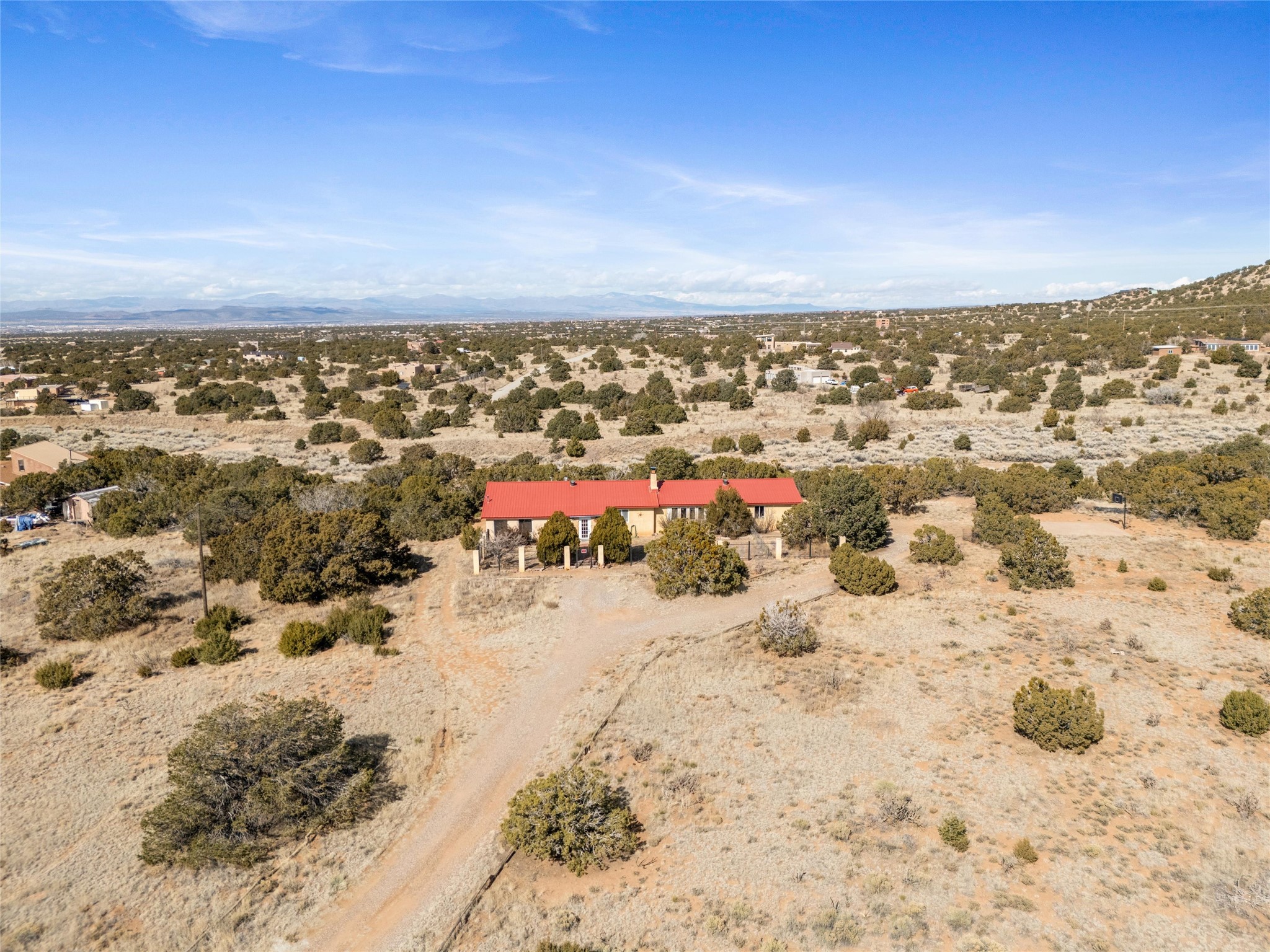 Don't miss this charming 3-bedroom, 2-bath home set on 5 acres of juniper-pion woodland in the rolling foothills just south of Santa Fe. With wide-open views of the Sangre de Cristo Mountains, this property offers the perfect blend of rural tranquility and convenient access to Santa Fe's vibrant cultural core. Whether you're savoring your morning coffee in the enclosed front porch or unwinding with an evening beverage on the back deck, you'll be treated to stunning vistas and peaceful surroundings. This is Northern New Mexico living at its best--quiet, scenic, and effortlessly connected to everything Santa Fe has to offer. New metal roof in 2018 and new boiler in 2019. Lovingly cared for and maintained by original owner.