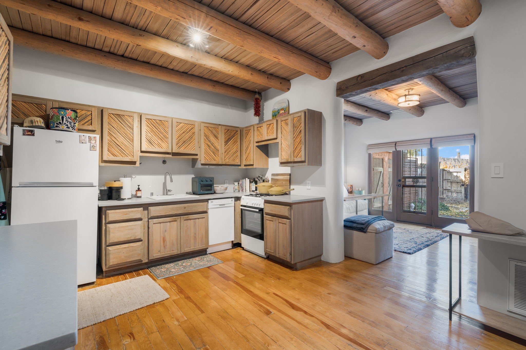 Discover this warm and cozy condo in a small, quiet compound in the Historic Guadalupe District, with easy access to the Santa Fe Plaza. This home will allow you to enjoy a vibrant lifestyle with walking opportunities (urban trails nearby) to multiple restaurants, Santa Fe's well-acclaimed Farmers Market, shopping, and entertainment. This authentic Adobe home includes a cozy kiva fireplace, pine flooring, and, for warmer weather, a beautiful and generous fenced flagstone patio for enjoying outdoor dining and relaxing. This is the Santa Fe get-a-way you have been waiting for!