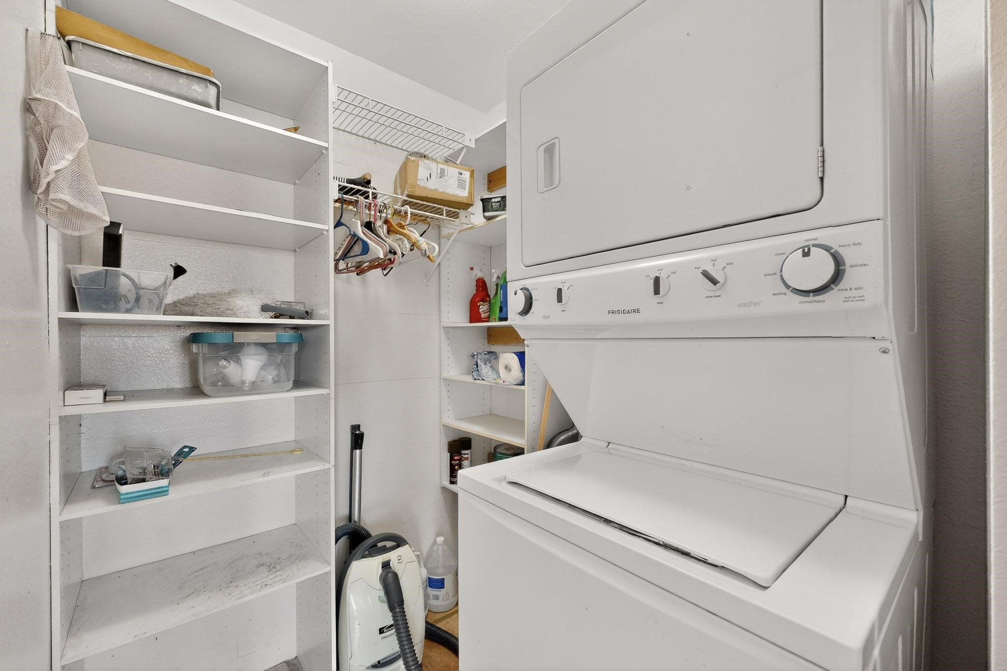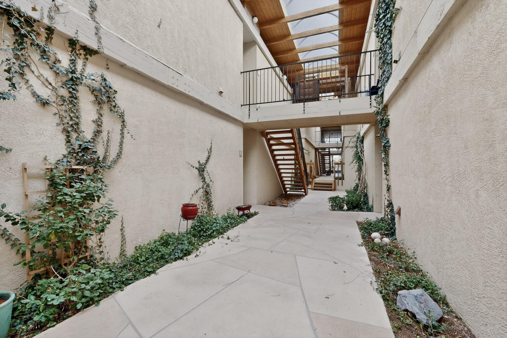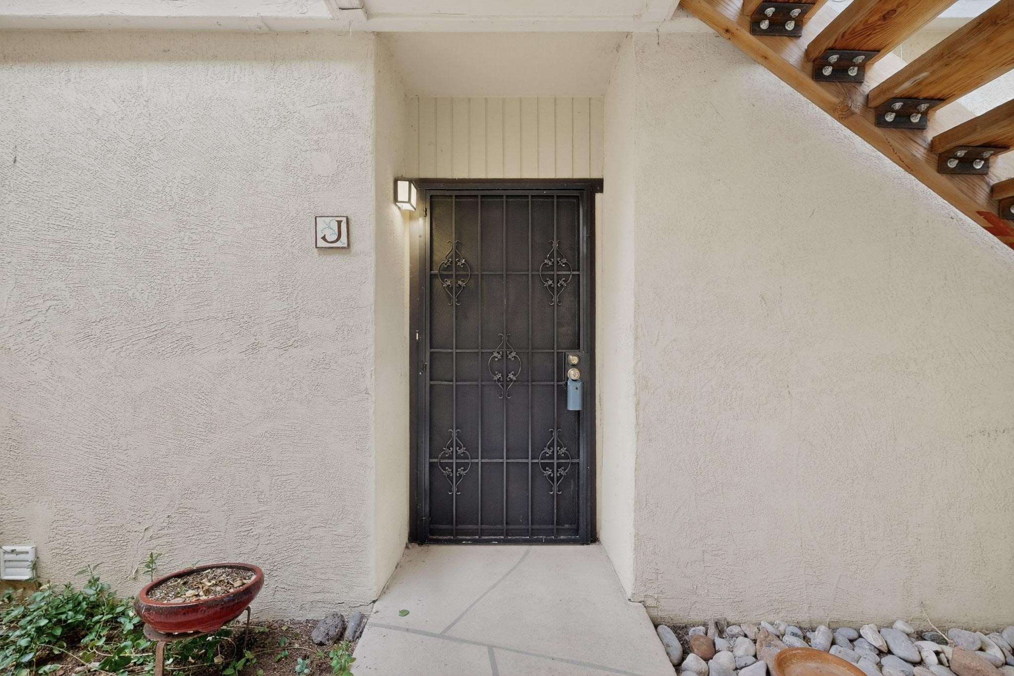 Live at the Los Arroyos Condos in the east area of town offers two bedrooms, a 1 3/4 bathrooms and it includes a large laundry and storage room with a stacked washer and dryer. The flooring is saltillo tile in all living areas and bedrooms (no carpet), the second bedroom has laminate wood flooring. This ground-floor condo overlooks the arroyo and trail! The Los Arroyos area is approximately 14 acres of trees, flowers, and shrubs. It's close to medical facilities, along with convenient shopping and a few minutes' drive to downtown. All utilities are included in the HOA fee except electric. The Los Arroyos Compound includes access to an array of amenities, including a clubhouse, an indoor pool, an exercise room, a dry sauna, outdoor space for social gatherings, and tennis courts.