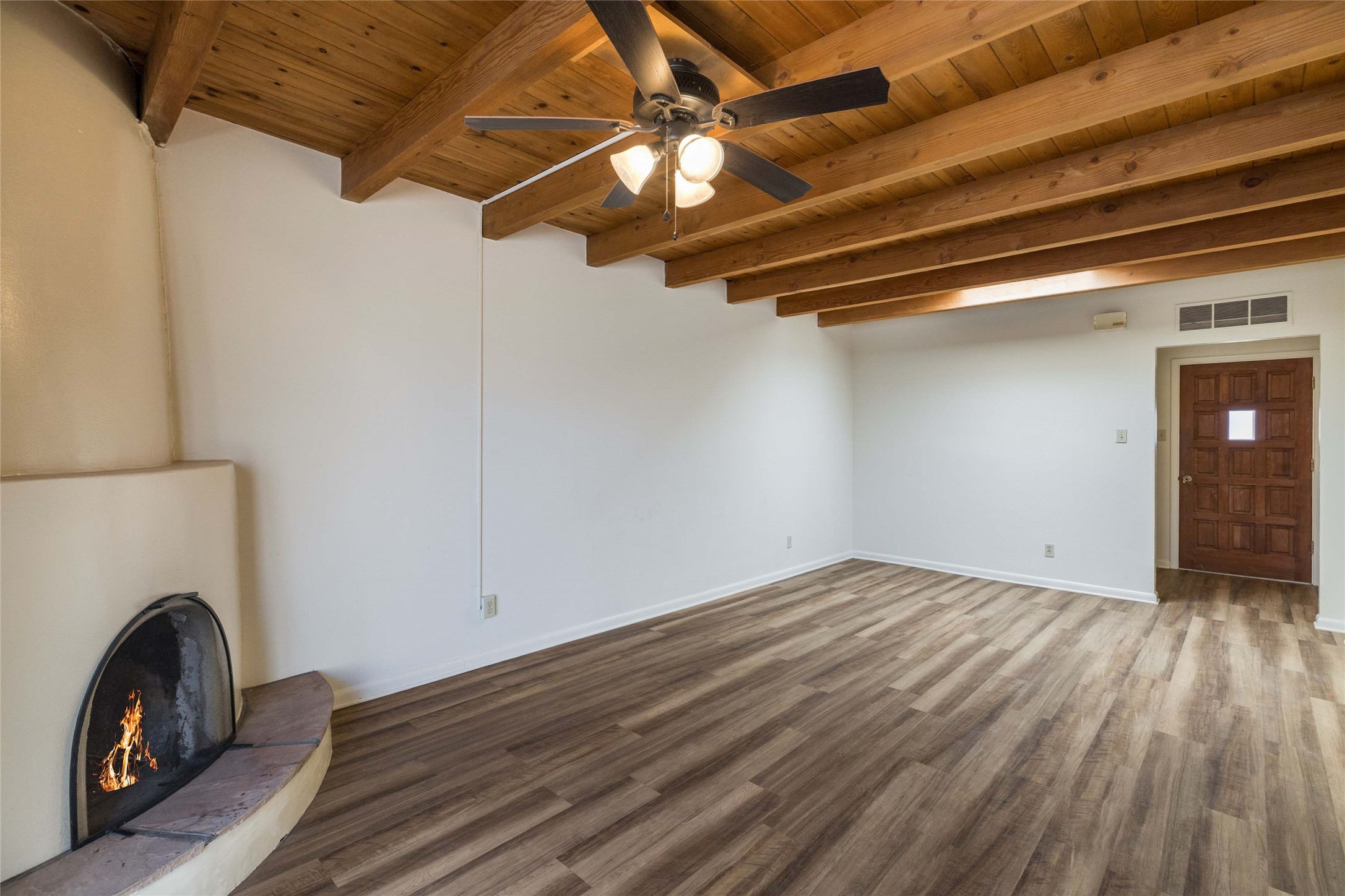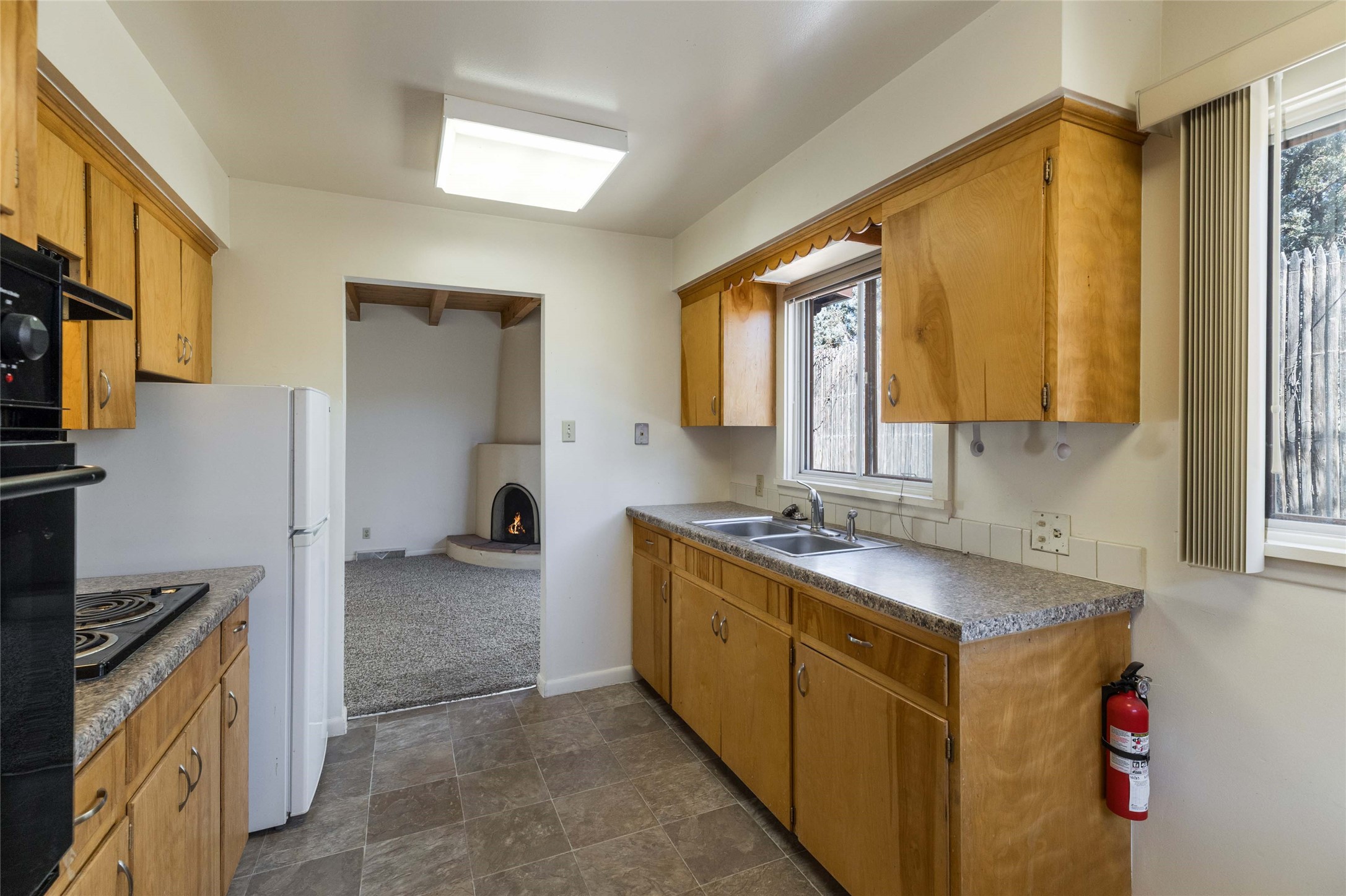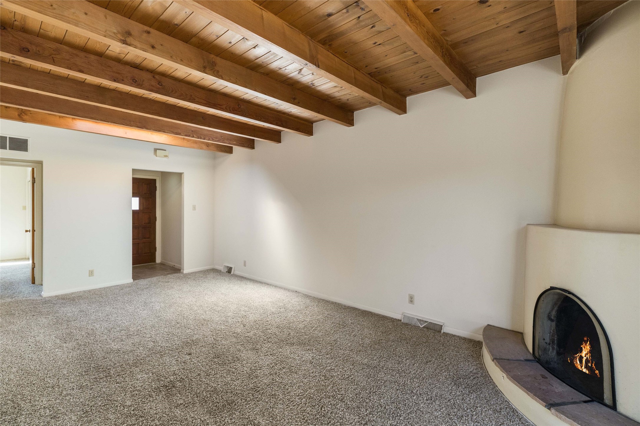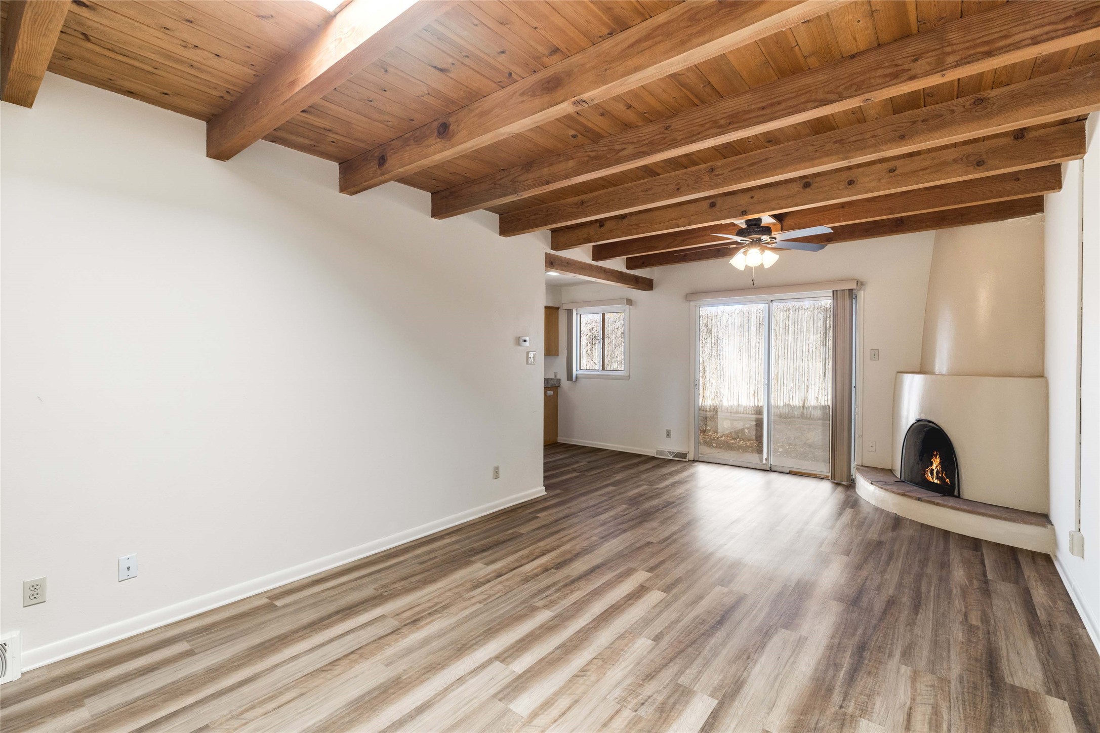 Experience the lifestyle of Downtown Santa Fe at Plaza Del Monte, a gated community located within one of the Southwest's most iconic destinations, just minutes from the historic Santa Fe Plaza. This rare offering presents a compelling opportunity for investors, second-home owners, and adventure travelers alike, with the added benefit of allowable short-term rentals. The community offers a unique and peaceful setting with nearby access to open space, hiking and biking trails, and outdoor recreation, while remaining close to Santa Fe's celebrated galleries, restaurants, and cultural landmarks. A rare chance to own in a community that blends lifestyle, location, and strong investment potential. This versatile duplex floor plan offers a 2-bedroom, 1-bath unit (917 SF) and a 1-bedroom , 1-bath unit (735 SF), both with two covered parking spaces per unit. Each residence features a traditional kiva fireplace and wood-beamed ceilings, adding warmth and classic Santa Fe charm to the living spaces. If you're not ready to update, the units can be enjoyed as they are. Take your time and update and add personal touches when the moment is right.