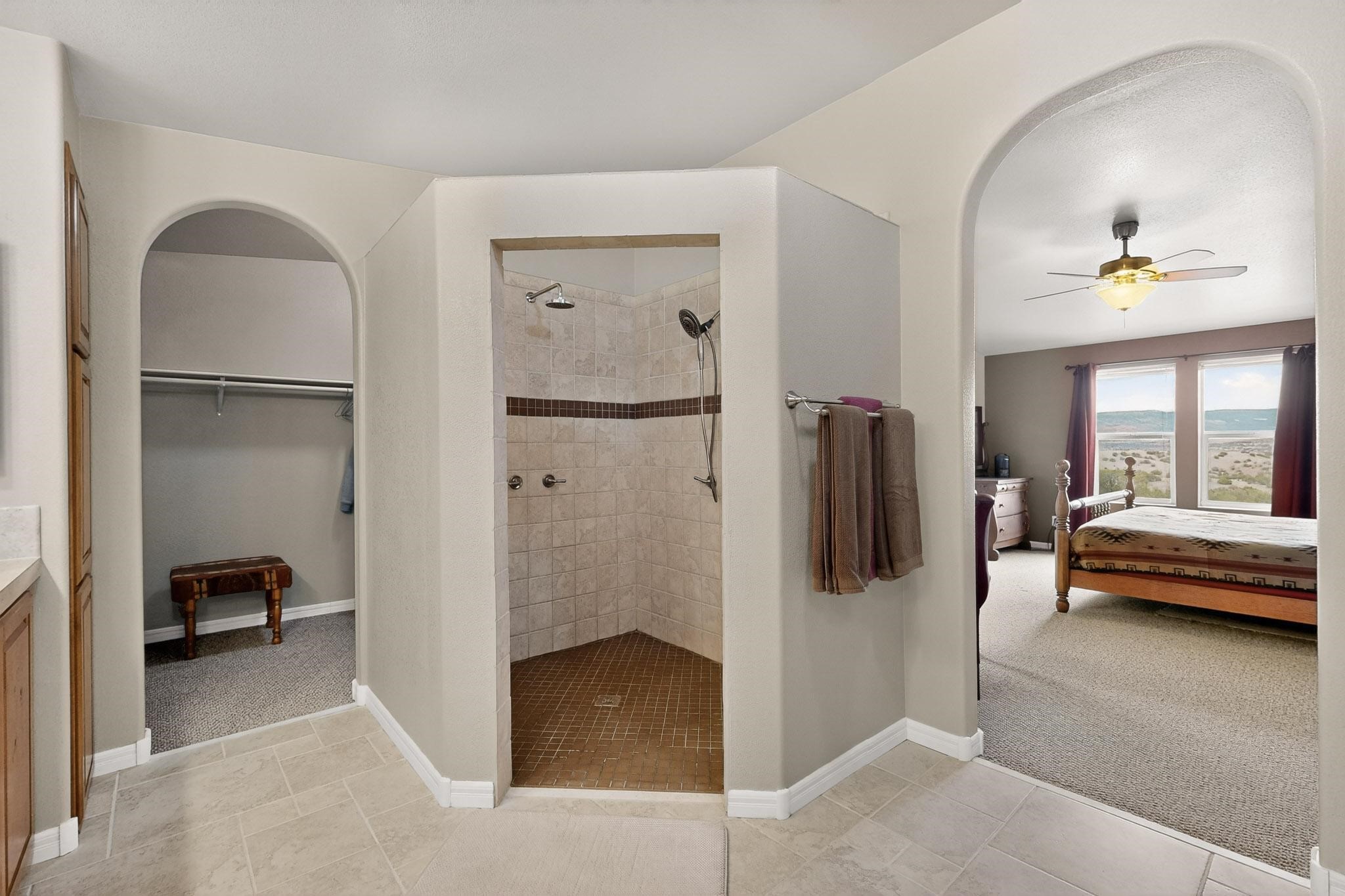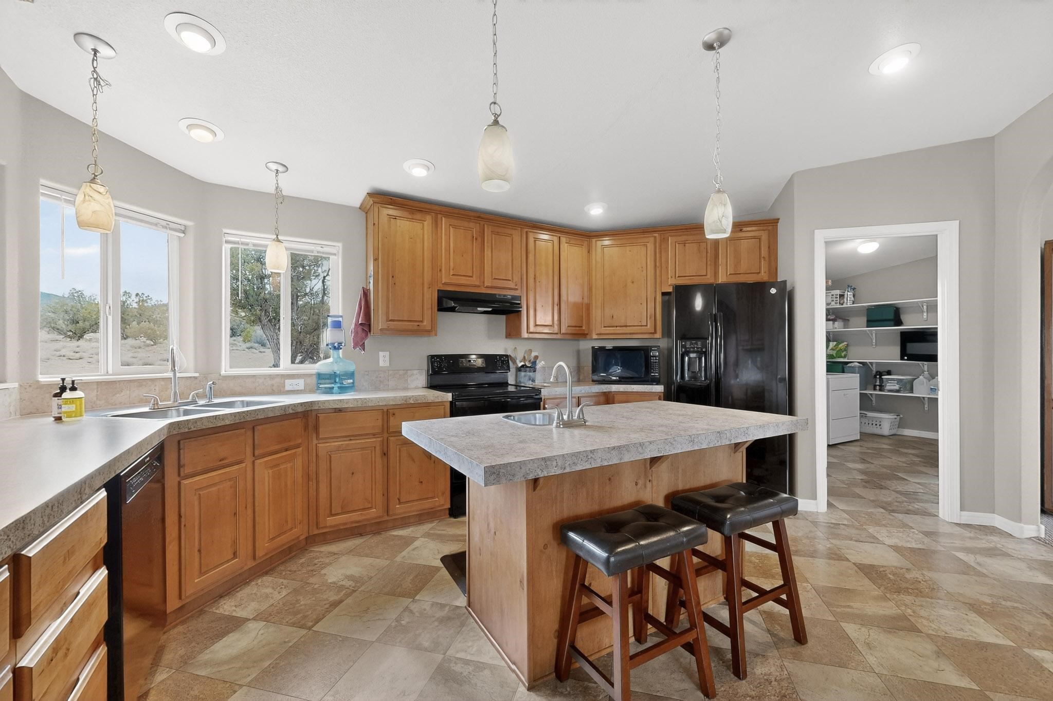 Discover unparalleled tranquility and magnificent scenery at this exceptional 9.43-acre property, offering quiet privacy and stunning lake and mountain vistas. This meticulously maintained acreage has about 3.5acres fenced, providing a secure and serene environment for the perfect New Mexico lifestyle. The full-featured, spacious 2,010 sq. ft. home is designed for comfortable living and practical functionality. Storage is ample, including an oversized laundry room and an impressive 30 ft. by 30 ft. garage. The heart of the home is the spacious, user-friendly kitchen, a culinary delight boasting high-quality finishes, a Bosch dishwasher, and a central island complete with a second sink and a convenient eating bar. The master suite is a true sanctuary, featuring its own private covered porch--an ideal spot for morning coffee or quiet reflection. The large ensuite bath is a luxurious space with a beautifully tiled walk-in shower and an expansive, huge closet. The second bedroom offers the same stunning views as the master and includes its own generous walk-in closet. A flexible office space features elegant built-in cabinetry and holds the potential to easily serve as a comfortable third bedroom. Throughout the home, you will find high-end architectural details and finishes, including soaring vaulted ceilings, solid stem walls, rich hickory cabinets, graceful arched doorways, and durable berber carpets. Allow yourself to be completely enchanted by the legendary sunrises and sunsets that grace this part of New Mexico, painting the sky with unforgettable colors. We invite you to experience this property in full detail. Read the narrative under the first two photos. Please watch the comprehensive 3D VIDEO and the SHOWCASE VIDEO to fully appreciate the unique beauty and quality of this extraordinary lake-view retreat.