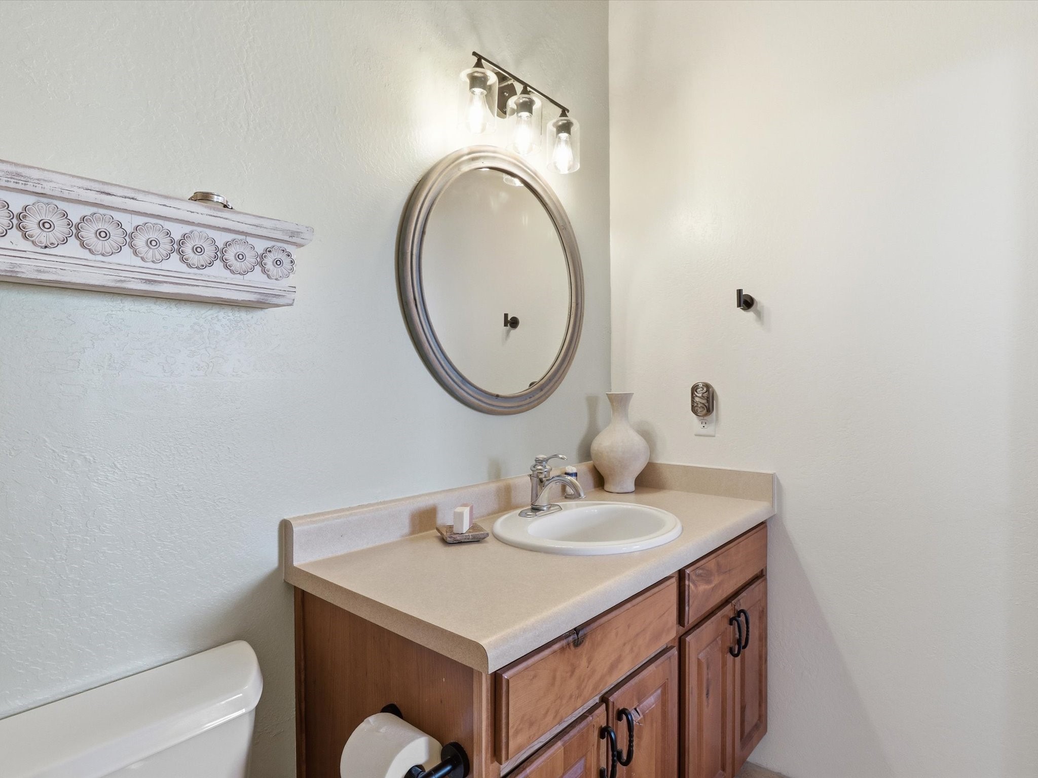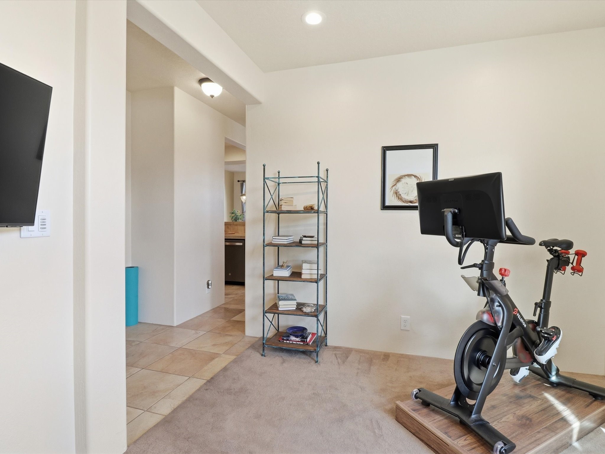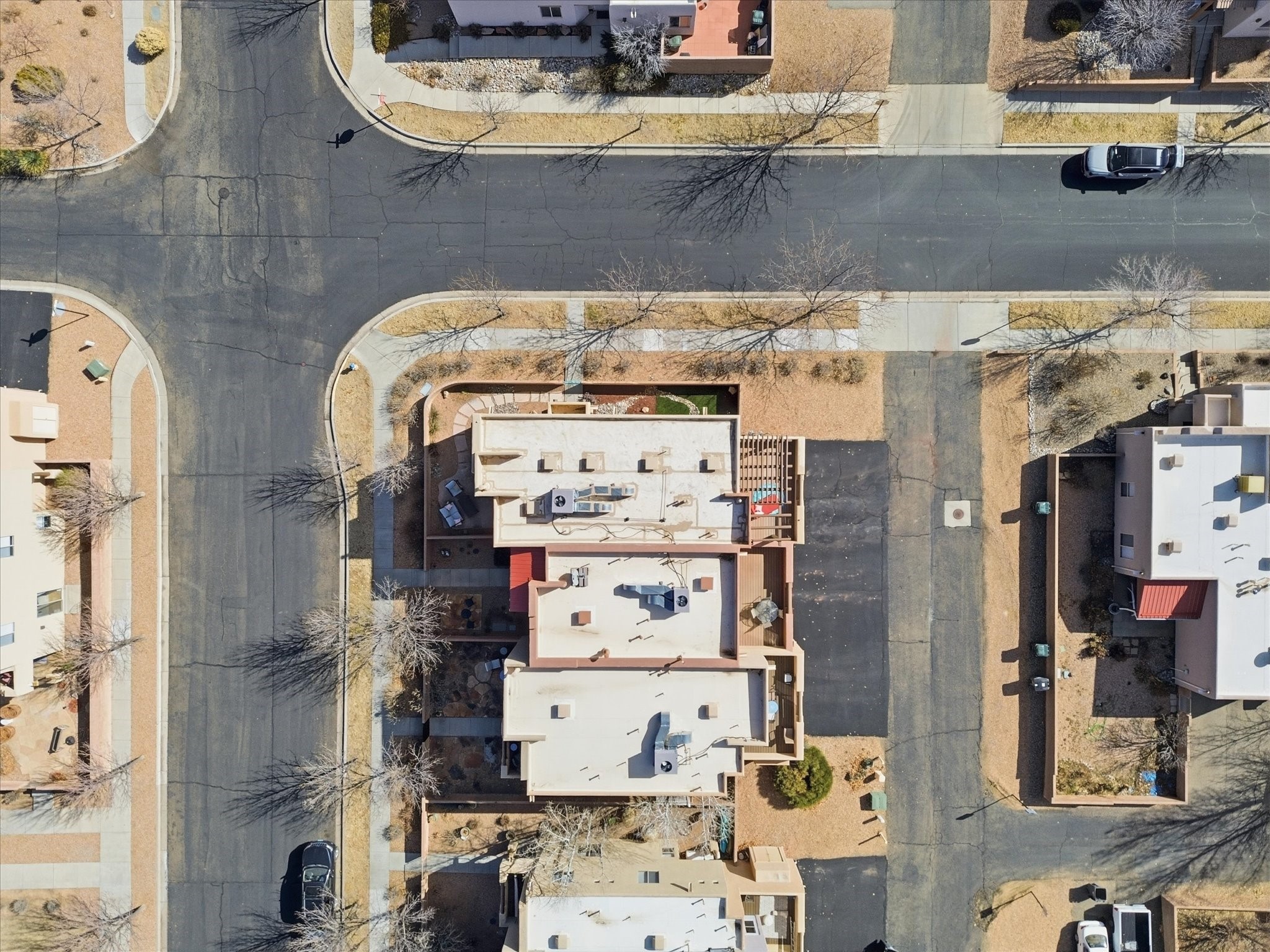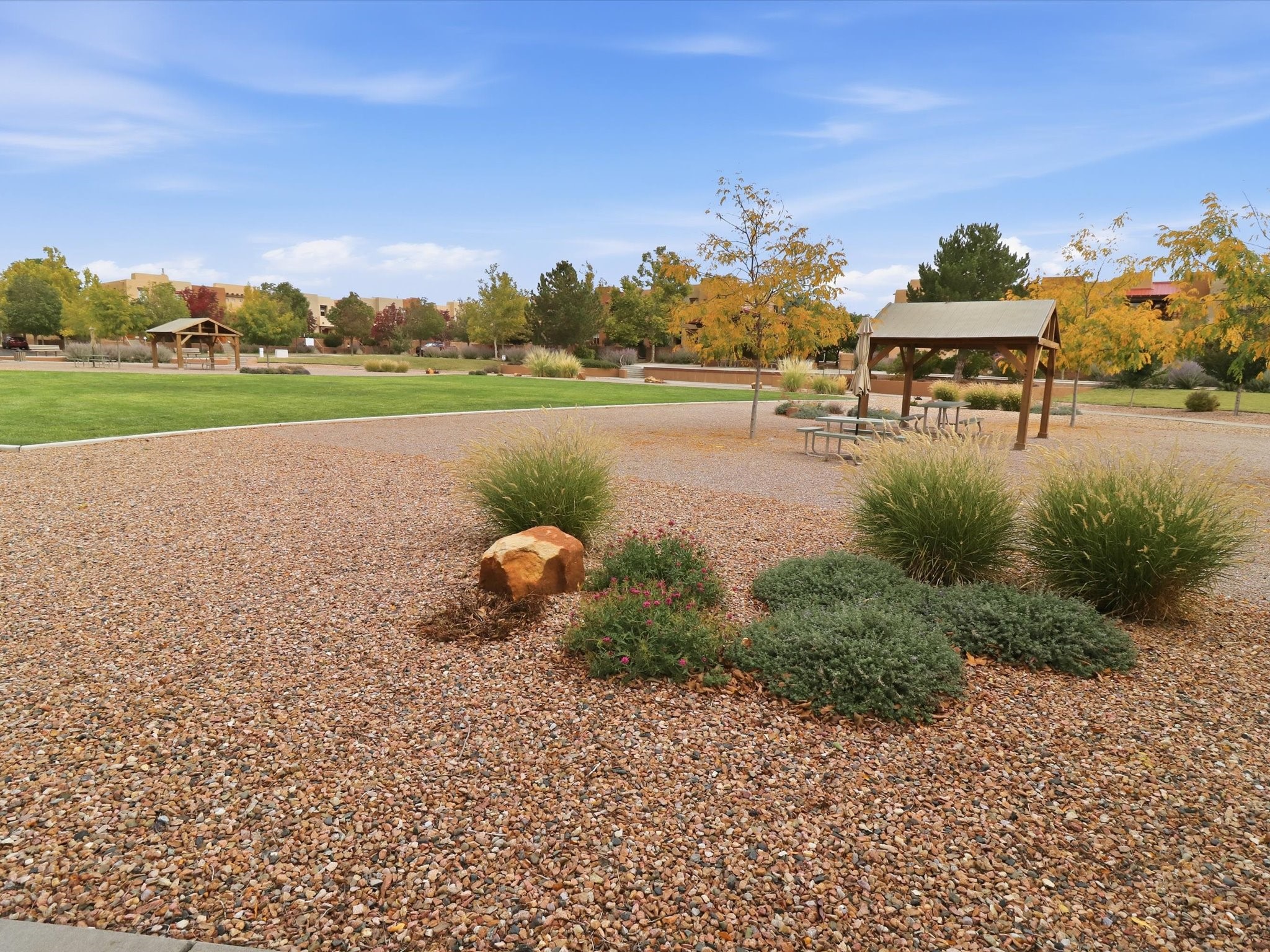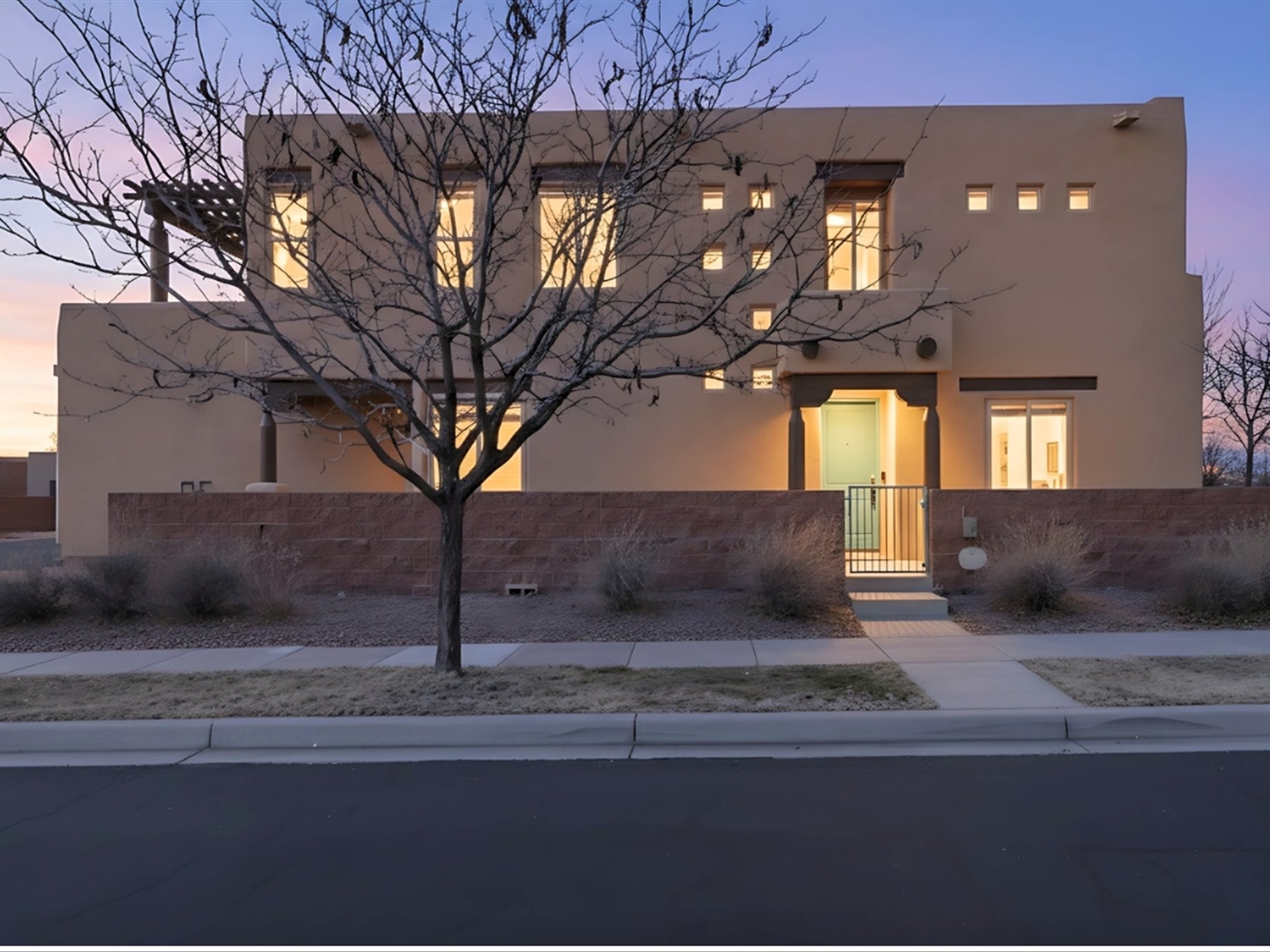 Elevate your lifestyle with this exceptional sun filled end-unit townhome in the desirable Rancho Viejo community. Combine modern comforts and Santa Fe charm in this elegant residence of +/-1700 sq. ft. thoughtfully designed living space with a versatile 3BR and 2 1/2 Bath. Step into a low maintenance wrap around courtyard on a flagstone patio with a sliding door to the tiled dining area. In the kitchen, you'll experience updated modern amenities including a new appliance package (2025) and a Kohler black stainless steel farmhouse sink. Convenient soft close cabinetry and Rev a shelf cabinet drawers for easy access. Enjoy filtered drinking water with the RO water filtration system.The living room is centered around a traditional Kiva gas fireplace and dramatic two-story ceiling adorned with classic vigas and clerestory windows. An efficient HVAC system with a Google Nest control panel allows remote monitoring while away or on the go. In-home and remote monitoring security features include Simplisafe security system and video ring doorbell.Follow the tiled hallway to the flex room appointed as an additional bedroom, office or media room with courtyard view and entry. Powder room (1/2 bath) is steps away. Upstairs, the primary bedroom ensuite offers a private retreat complete with sliding door to a generous deck to enjoy the remarkably quiet neighborhood with views to the East, South, and West. Your walk-in closet is set adjacent to the double vanity, bathtub and water closet.A loft area and second bedroom with reading nook and full bath completes the upper floor. All rooms adorned with custom Graber cellular shades. Entire interior repainted (2023) with custom accent walls. Solid wood door package complements the warm color palette.Additional upgrades include dimmer switches in every room with new flush mount overhead lighting and replaced lighting fixtures throughout.Ample storage with ground floor closet below stairway, double door linen closet off of loft and custom floor to ceiling cabinets in the attached 2-car garage.With Santa Fe's 320+ days of sunshine a year, the surrounding miles and miles of (paved) walking/biking trails are the perfect place for your sunrise and sunset strolls.