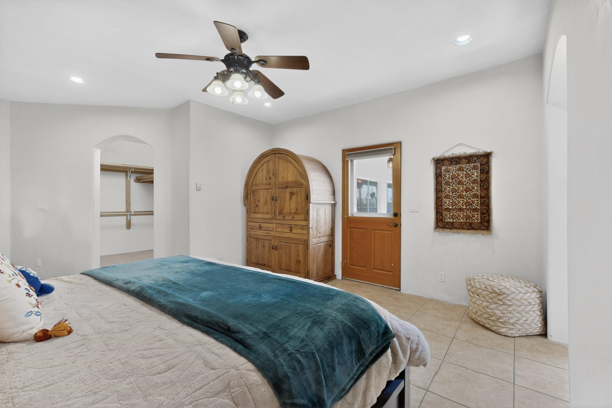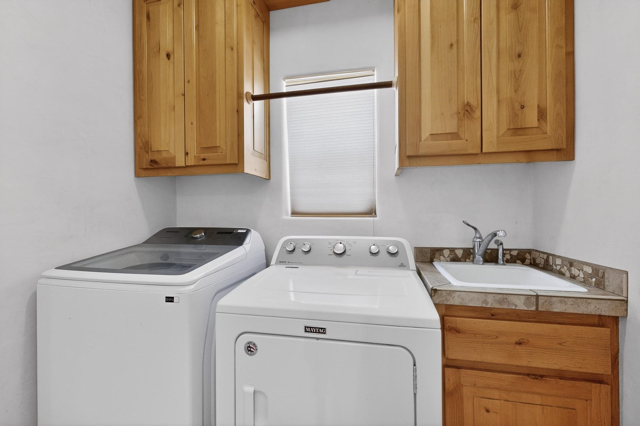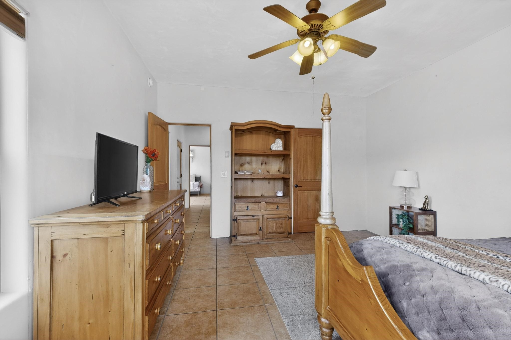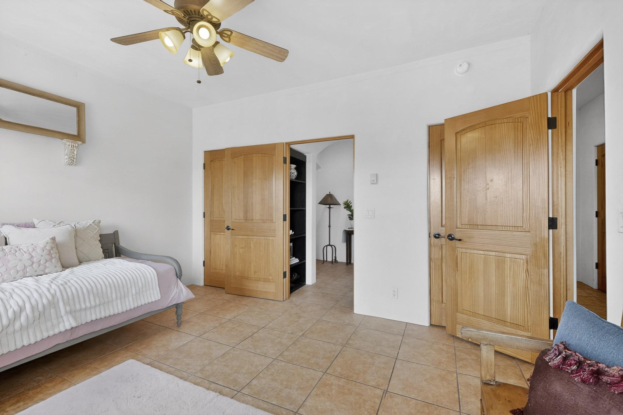 Nestled within the highly sought after gated community of Las Lagunitas with spacious lot sizes, this exceptional three bedroom two bath custom home on 1.36 acres embodies the perfect blend of refined Santa Fe comfort and elegance. Thoughtfully designed with a oversized two car garage and open concept layout, the spacious kitchen flows seamlessly into the dining and living room area and is ideal for both entertaining and everyday comfort. This single level residence features three oversized bedrooms and two bathrooms the Primary bedroom has a large jetted tub large walk in closet and a snail shower served up with instant hot water. This home features a stunning wraparound porch that captures the most picturesque elevated clear scenic views from all sides, both sunrise and sunset views are spectacular. Inside you will find a refined diamond plaster finish throughout the entire home, a water softener and large tile flooring that creates a clean and sophisticated look. The inviting living room features a charming kiva fireplace, tall ceilings and vigas that add warmth and authentic Santa Fe character to the space and has been well kept and loved by one family since being built! A large well maintained back yard with a beautifully built coyote fence made for privacy and ready for your entertainment. This home features a large crawlspace under the home that can be used for storage. Enjoy beautifully maintained common areas and landscaped grounds of Las Lagunitas, perfect for peaceful tranquil walks with your dog alongside serene ponds where fishing is also allowed offering a true connection to nature. Easy access to I-25
