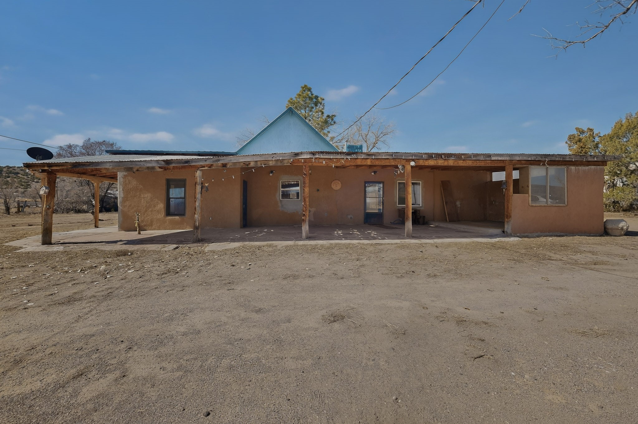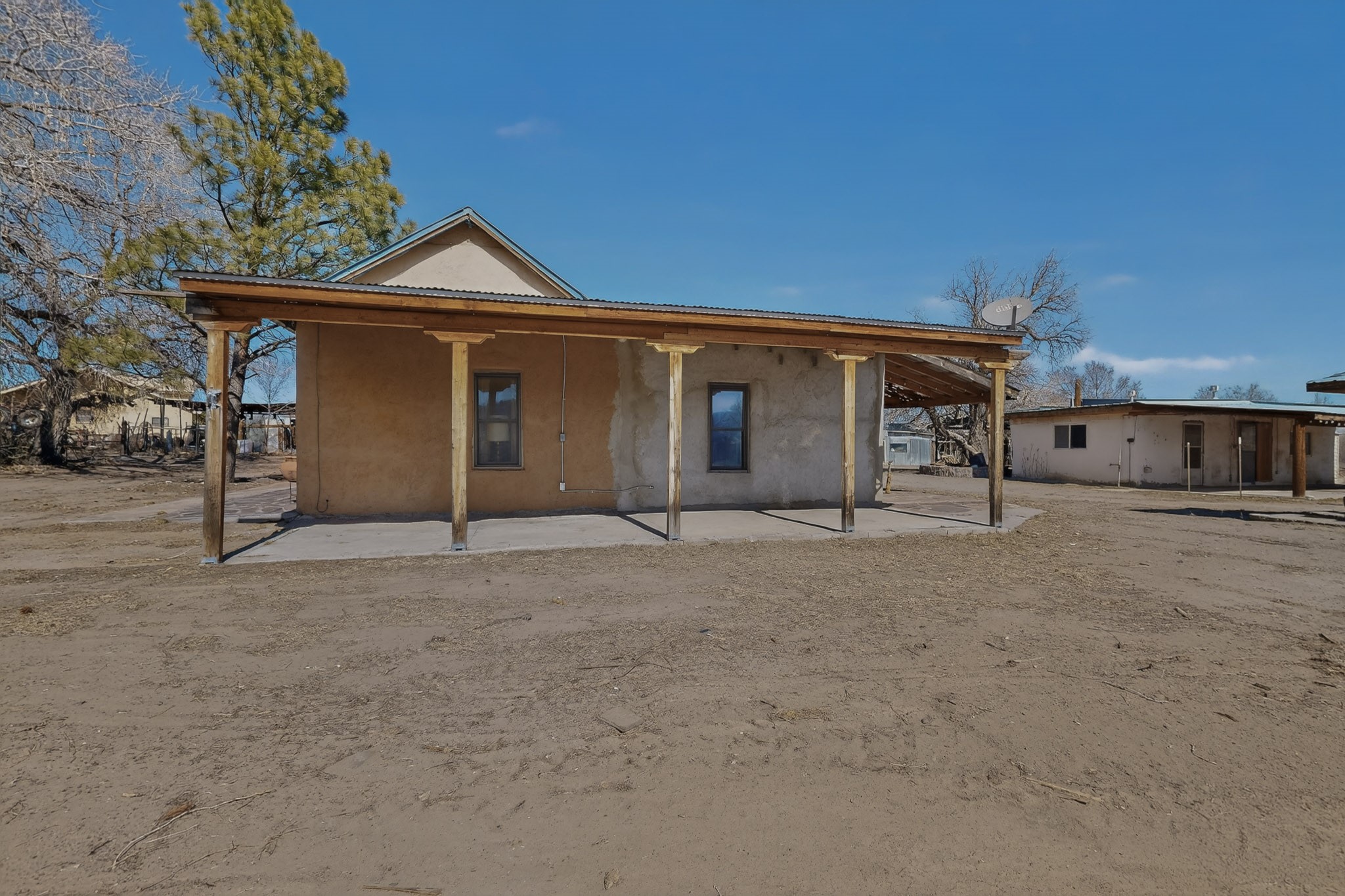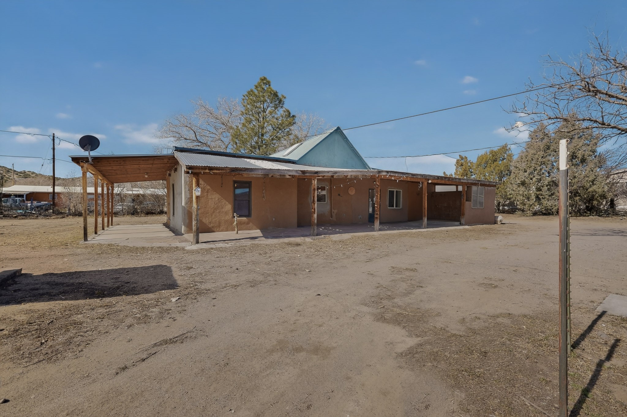 This wonderful adobe home is ready for its new owners. The main house features 2 bedrooms and 2 full baths, plus a sitting room that offers the potential for a third bedroom. A welcoming portal provides two accesses, one to the laundry room, the other access is to the living and dining area.The property also includes a small guest house with 1 bedroom and a full bath. This space, which was previously used as a kitchen, also houses the water well. A generously sized portal on the guest house is the perfect spot to sit and enjoy views of the Sangre de Cristo Mountains through the trees.The land, rich with history and opportunity, stretches out to the east. A walk across the bridge over the first acequia leads to a path past a barn with corrals on the left, and the historic remains of old adobe walls on the right, suggesting a storied past. An orchard with numerous fruit trees is also on the right. Continuing east, you'll find a field currently producing hay, a cattail "garden," the second acequia, and a final piece of land beyond it. The property is conveyed with valuable irrigation water rights.This unique property offers a multitude of options for the new owner, whether for gardening, raising farm animals, or other endeavors. The land surrounding both living spaces can be utilized at the owner's discretion. Its location is minutes away from Los Alamos, Santa Fe, Abiquiu, Taos, and Chimayo. Come look at the home, guest house, and land to dream and make those dreams a reality. Please note that the Seller will not make any repairs to the property.