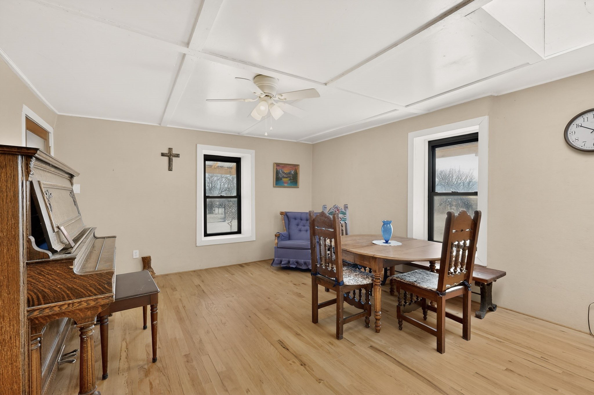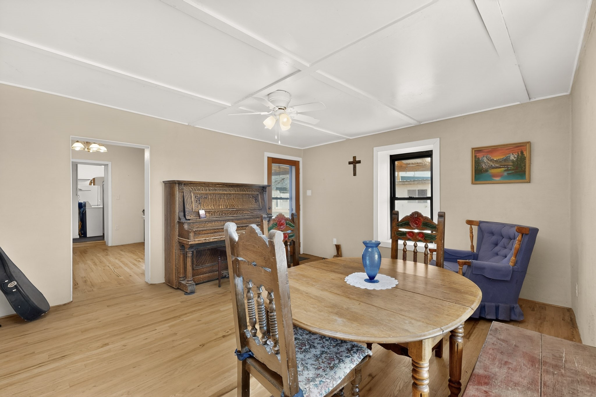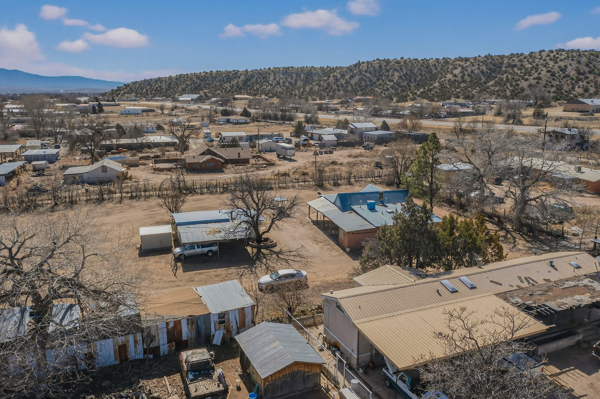 This wonderful adobe home is ready for its new owners. The main house features 2 bedrooms and 2 full baths, plus a sitting room that offers the potential for a third bedroom. A welcoming portal provides two accesses, one to the laundry room, the other access is to the living and dining area.The property also includes a small guest house with 1 bedroom and a full bath. This space, which was previously used as a kitchen, also houses the water well. A generously sized portal on the guest house is the perfect spot to sit and enjoy views of the Sangre de Cristo Mountains through the trees.The land, rich with history and opportunity, stretches out to the east. A walk across the bridge over the first acequia leads to a path past a barn with corrals on the left, and the historic remains of old adobe walls on the right, suggesting a storied past. An orchard with numerous fruit trees is also on the right. Continuing east, you'll find a field currently producing hay, a cattail "garden," the second acequia, and a final piece of land beyond it. The property is conveyed with valuable irrigation water rights.This unique property offers a multitude of options for the new owner, whether for gardening, raising farm animals, or other endeavors. The land surrounding both living spaces can be utilized at the owner's discretion. Its location is minutes away from Los Alamos, Santa Fe, Abiquiu, Taos, and Chimayo. Come look at the home, guest house, and land to dream and make those dreams a reality. Please note that the Seller will not make any repairs to the property.