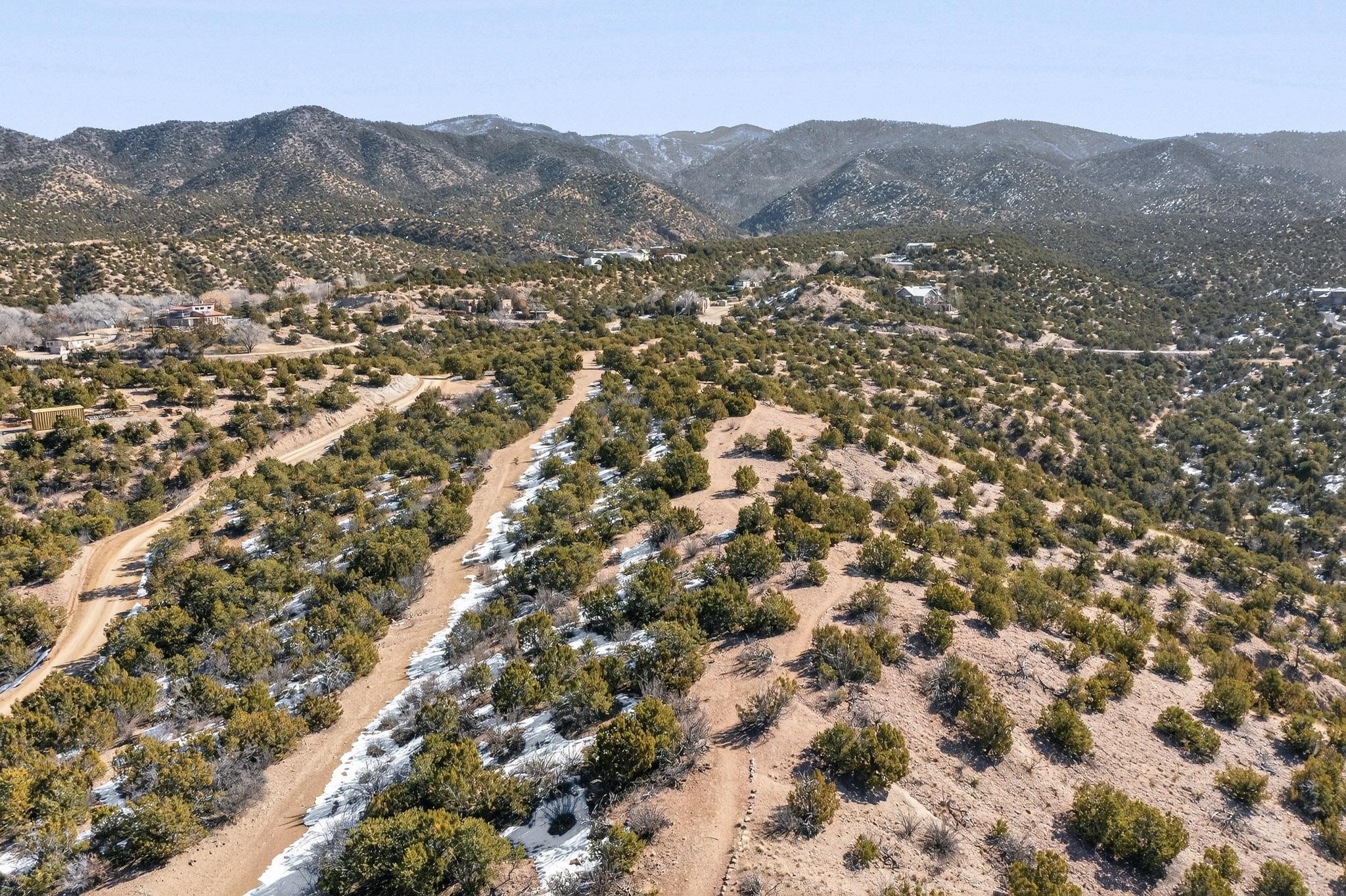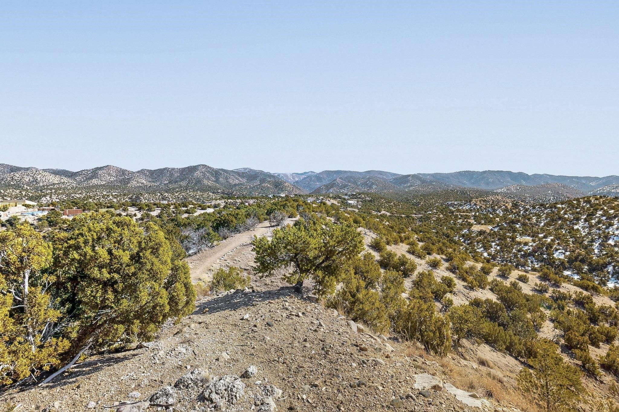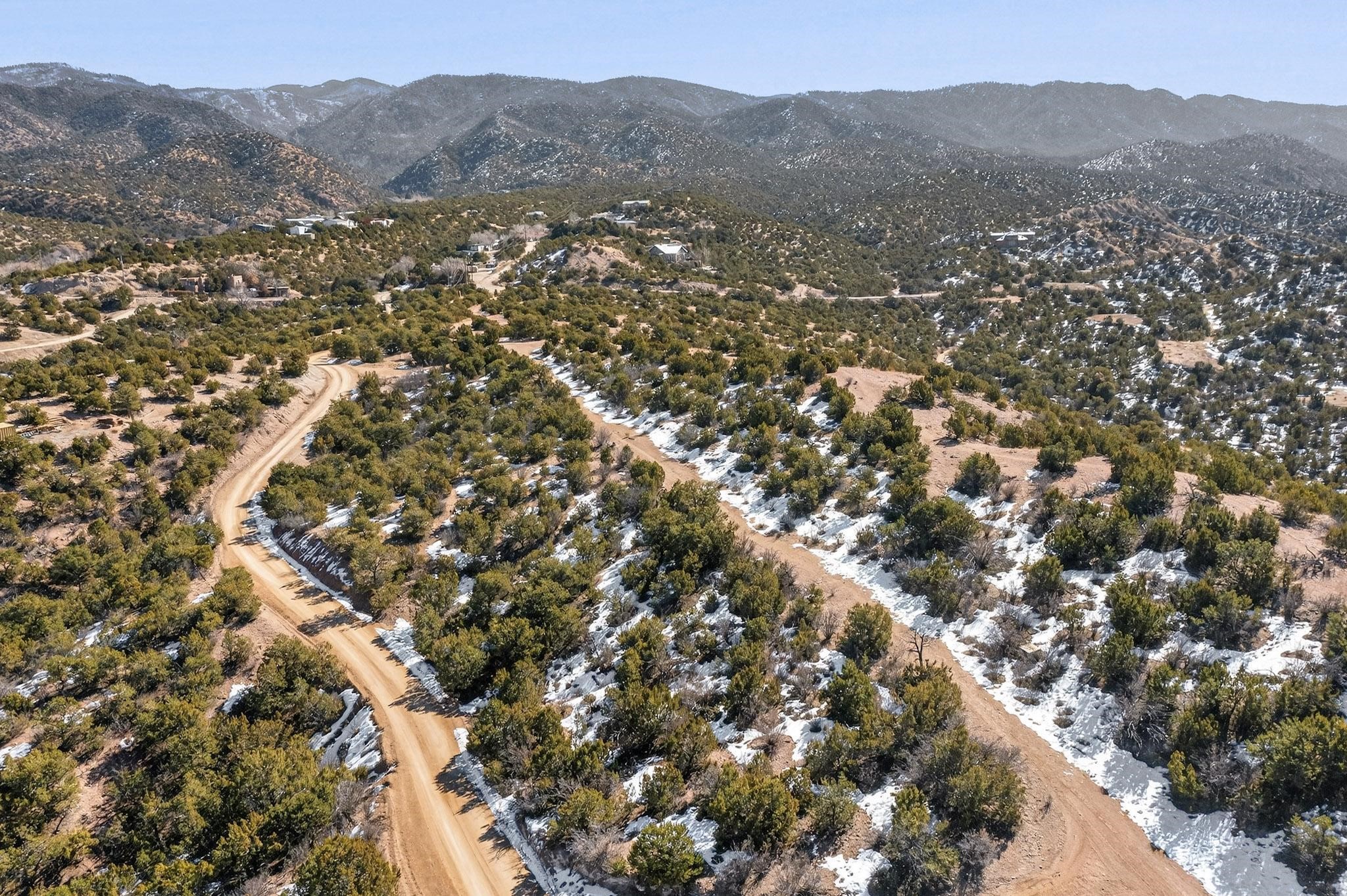 Breathtaking views from this astonishing 15 acre ridge top lot in a small private and gated subdivision moments from the village of Rio En Medio, which has access to a trail head into the mountains of the National Forest and a nearby waterfall. A deep, sandy bottomed, canyon cuts through the lot. Shared well and power available. Short, level and private access road (easement) off the main road. Minimal CC&Rs. All 5 lots can be purchased as a package. The buildable site offers spectacular views but will need expert construction and design flair for each terrain. Minutes to fine dining at the Four Seasons Encantado Resort.