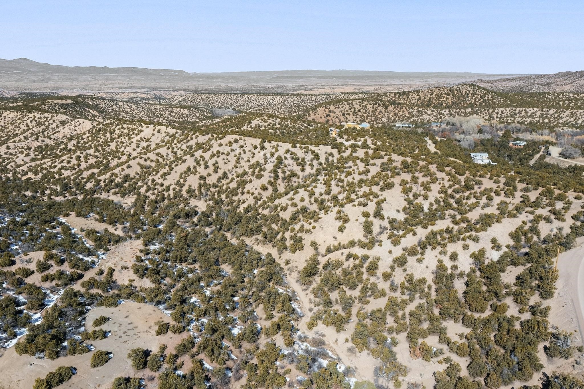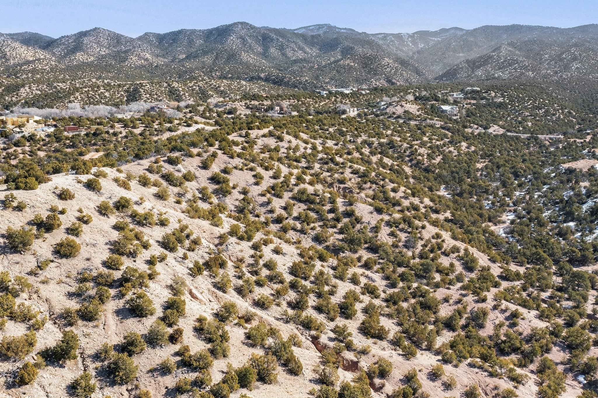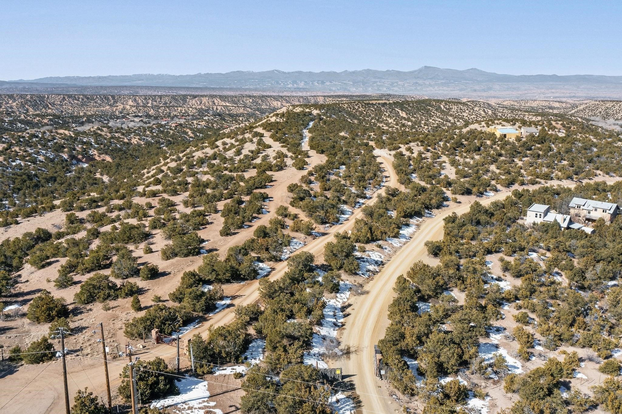 Breathtaking views from this astonishing 15 acre ridge top lot in a small private and gated subdivision moments from the village of Rio En Medio, which has access to a trail head into the mountains of the National Forest and a nearby waterfall. A deep, sandy bottomed, canyon cuts through the lot. Shared well and power available. Short, level and private access road (easement) off the main road. Minimal CC&Rs. All 5 lots can be purchased as a package. The buildable site offers spectacular views but will need expert construction and design flair for each terrain. Minutes to fine dining at the Four Seasons Encantado Resort.