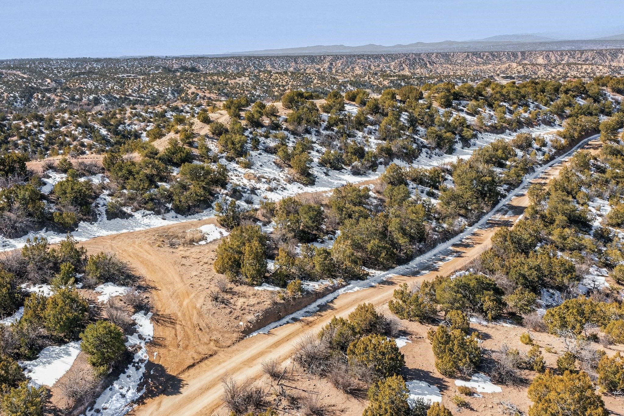 Breathtaking views from this astonishing 15 acre ridge top lot in a small private and gated subdivision moments from the village of Rio En Medio, which has access to a trail head into the mountains of the National Forest and a nearby waterfall. A deep, sandy bottomed, canyon cuts through the lot. Shared well and power available. Short, level and private access road (easement) off the main road. Minimal CC&Rs. All 5 lots can be purchased as a package. The buildable site offers spectacular views but will need expert construction and design flair for each terrain. Minutes to fine dining at the Four Seasons Encantado Resort.