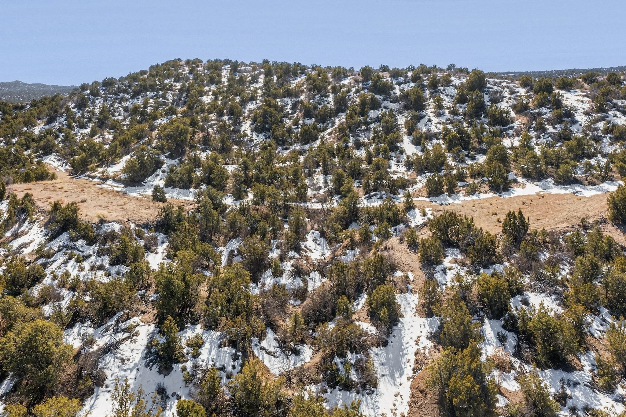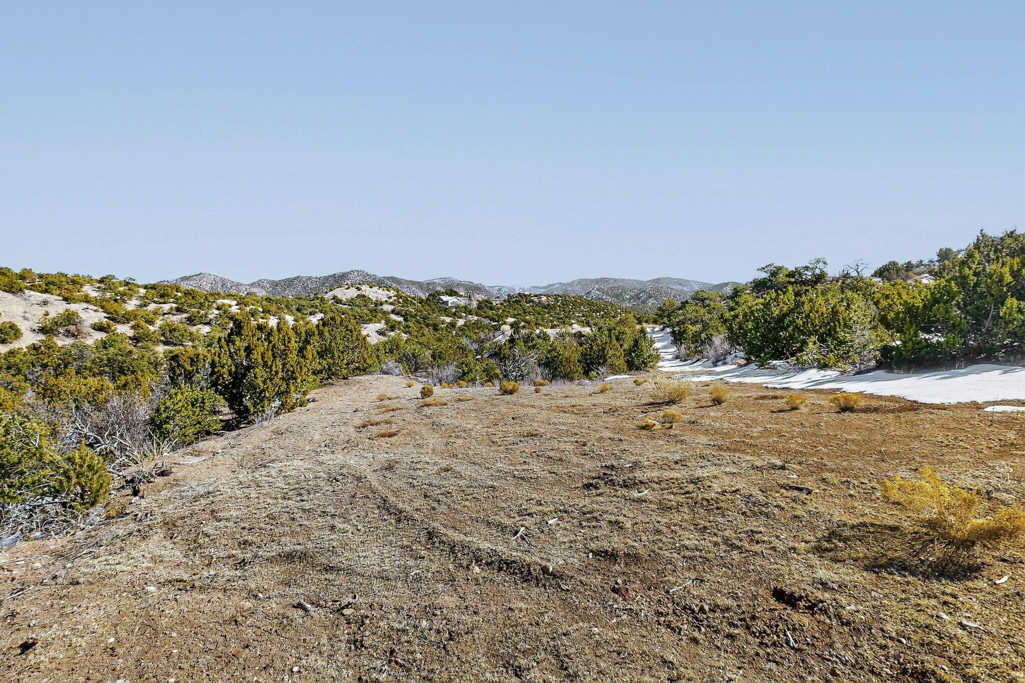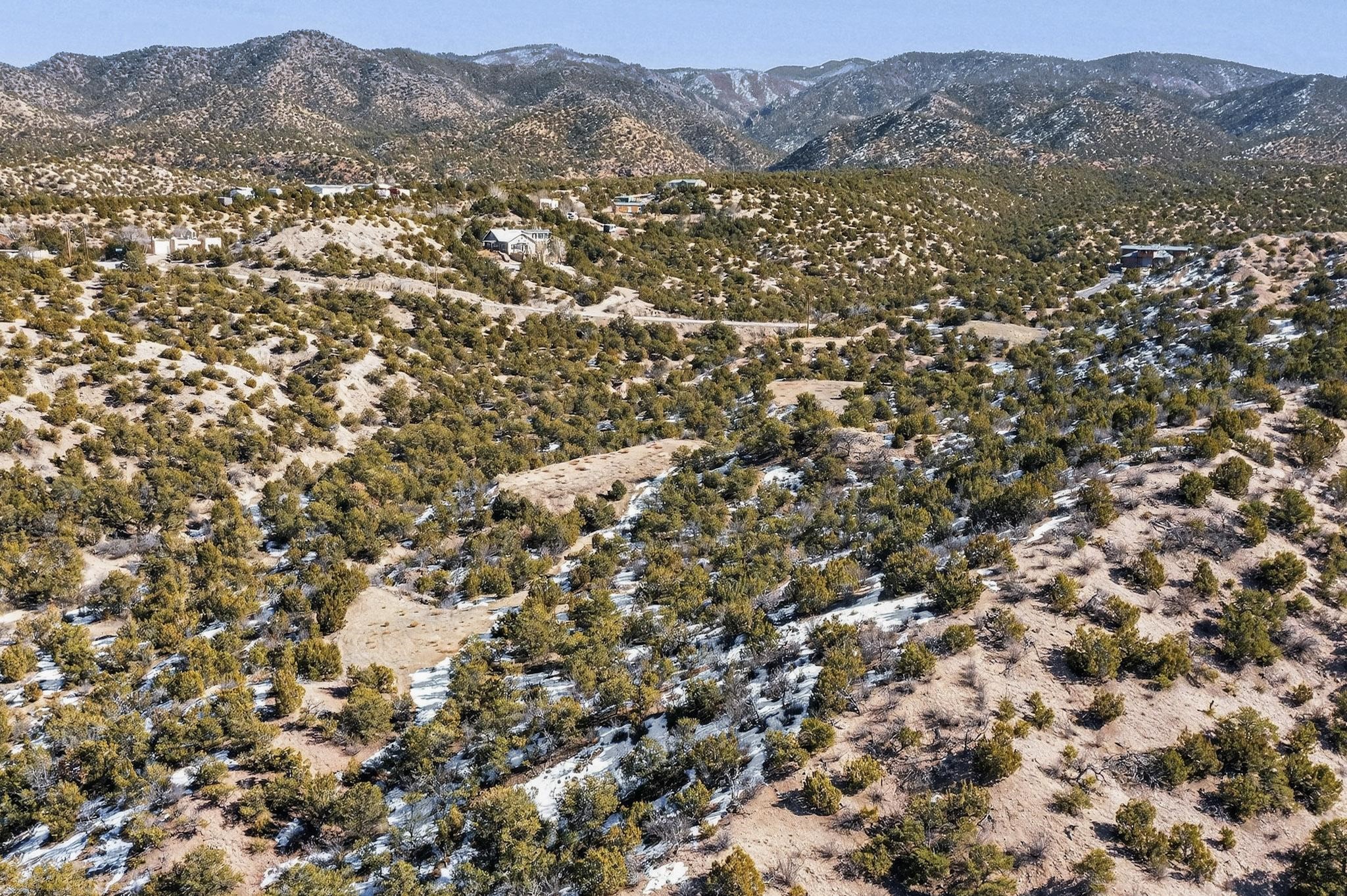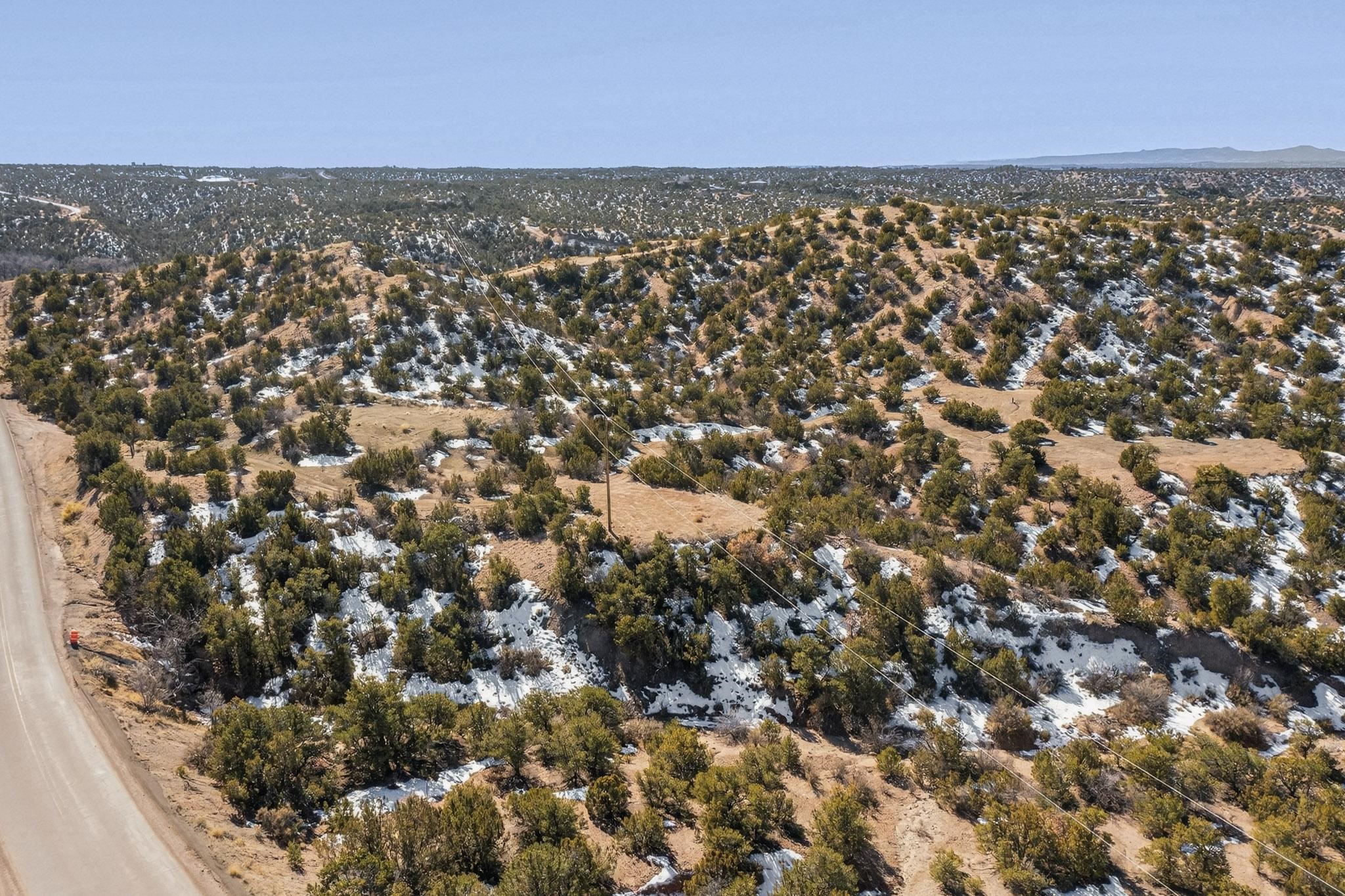 Easy build 15 acre lot with an expansive view through the steep sided canyon to the Jemez mountains to the west. Easy access off State Rd 592 and just a couple of minutes from the village of Rio En Medio, which has access to a trail head into the mountains of the National Forest and a nearby waterfall. 3 easy and flat building sites. Private well and power available. Minimal CC&Rs. All 5 lots can be purchased as a package. Approximately 10 minutes/10 miles to Santa Fe to reach this sheltered and privately situated lot. Minutes to fine dining at the Four Seasons Encantado Resort.