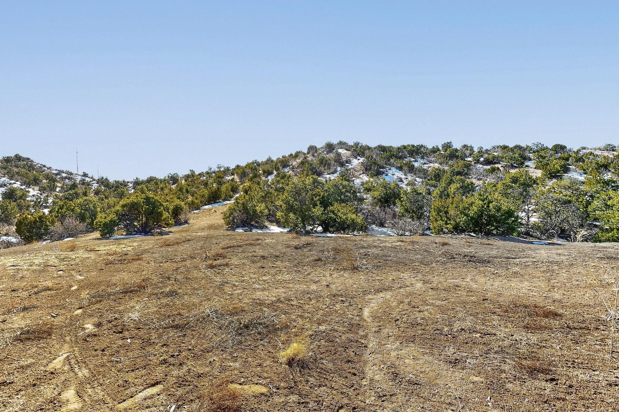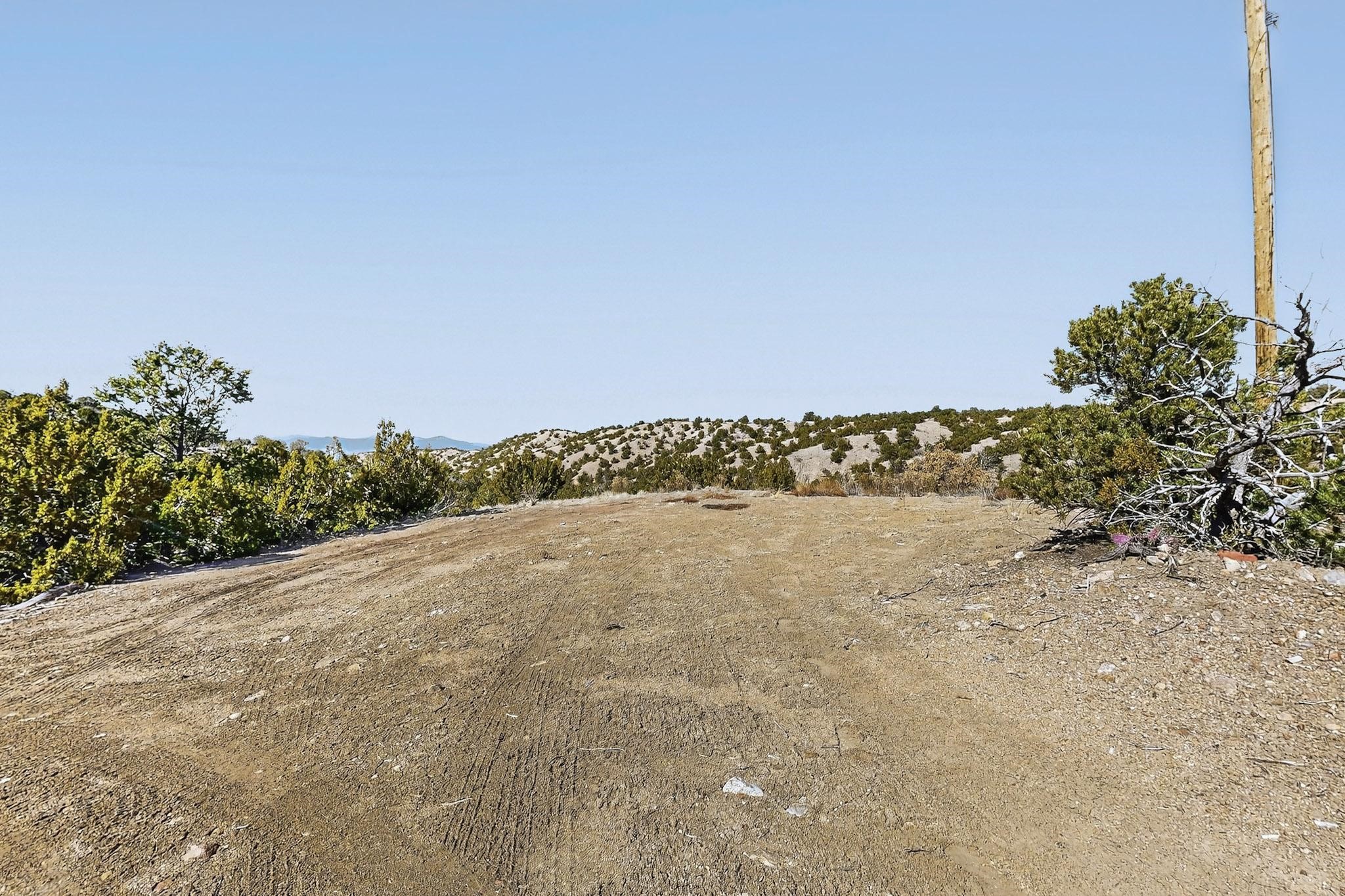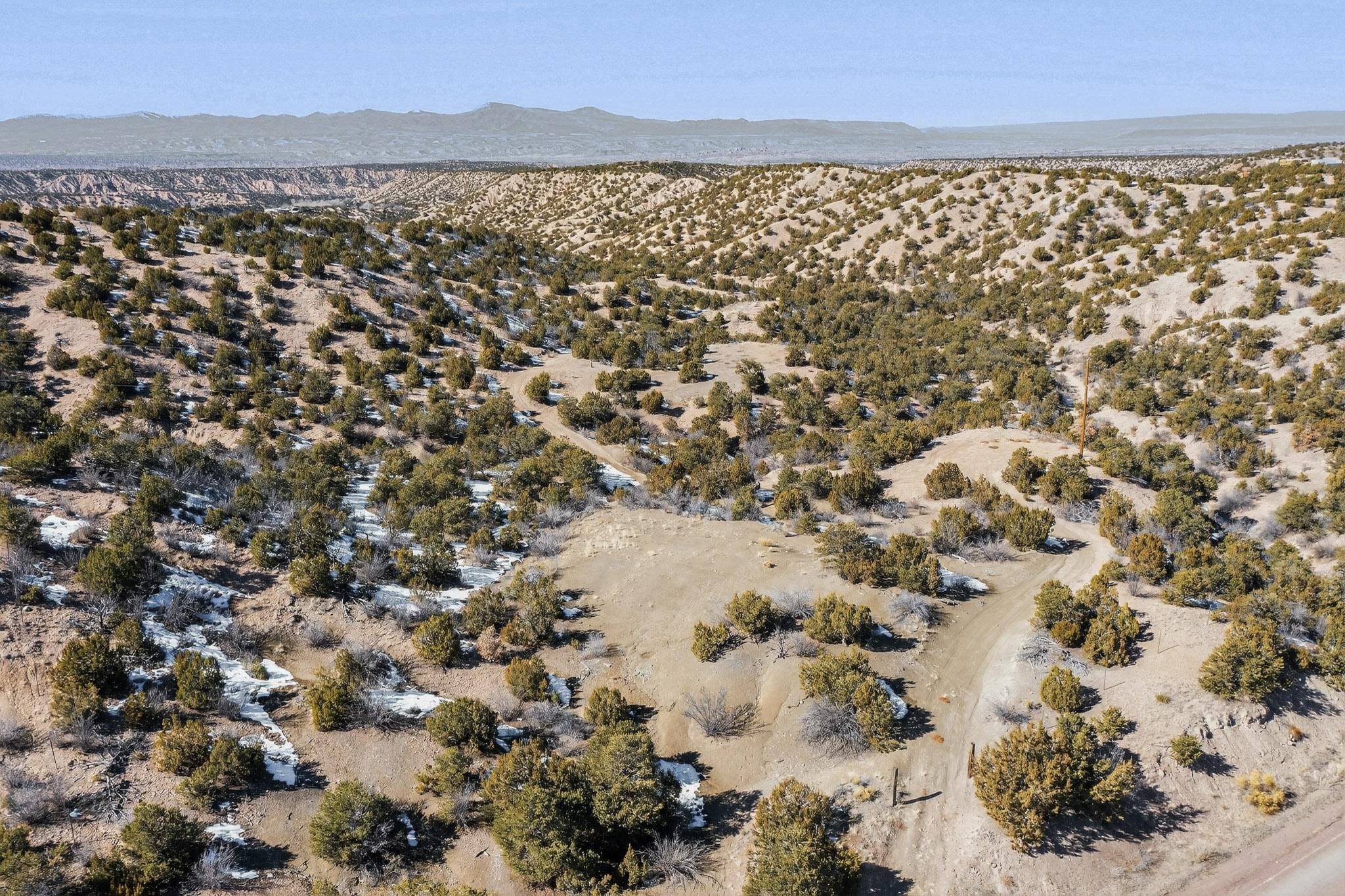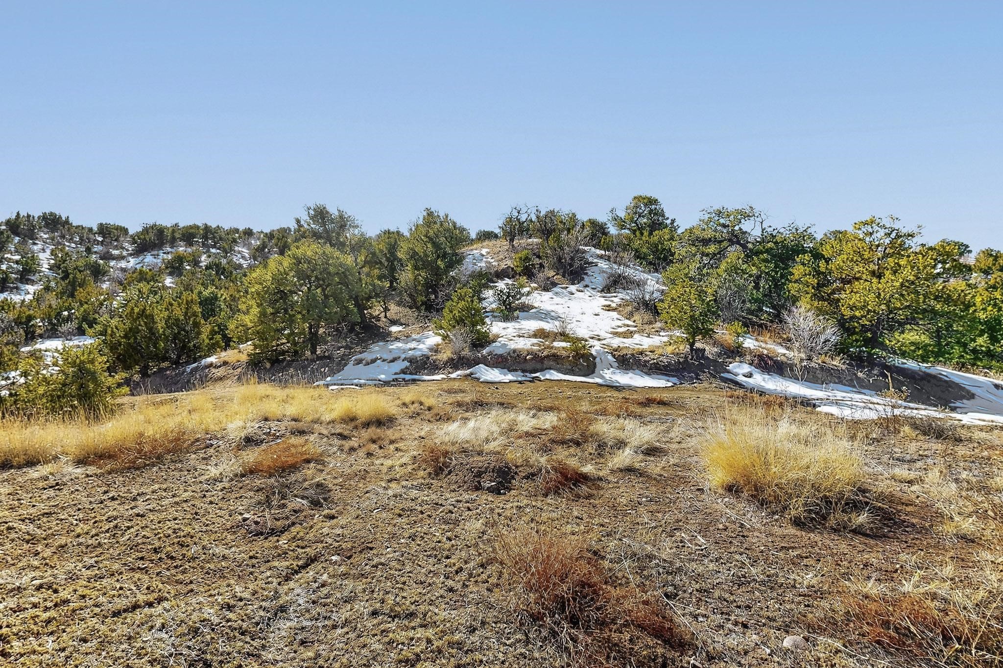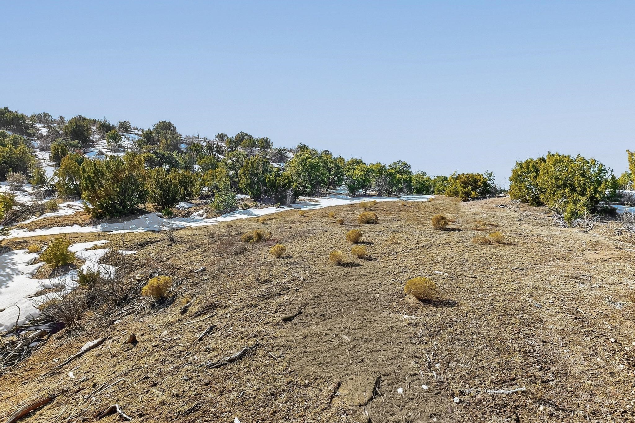 Easy build 15 acre lot with an expansive view through the steep sided canyon to the Jemez mountains to the west. Easy access off State Rd 592 and just a couple of minutes from the village of Rio En Medio, which has access to a trail head into the mountains of the National Forest and a nearby waterfall. 3 easy and flat building sites. Private well and power available. Minimal CC&Rs. All 5 lots can be purchased as a package. Approximately 10 minutes/10 miles to Santa Fe to reach this sheltered and privately situated lot. Minutes to fine dining at the Four Seasons Encantado Resort.