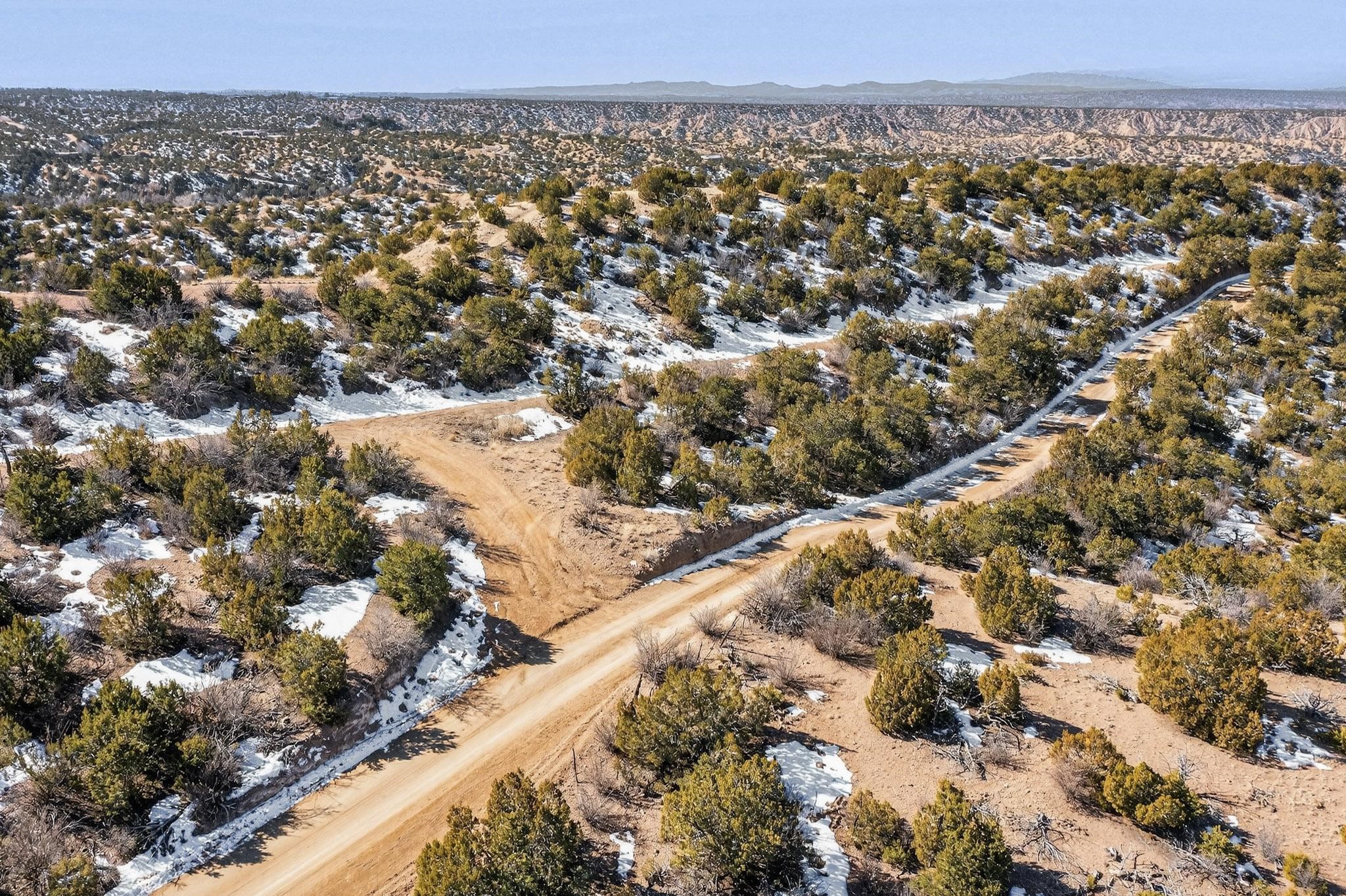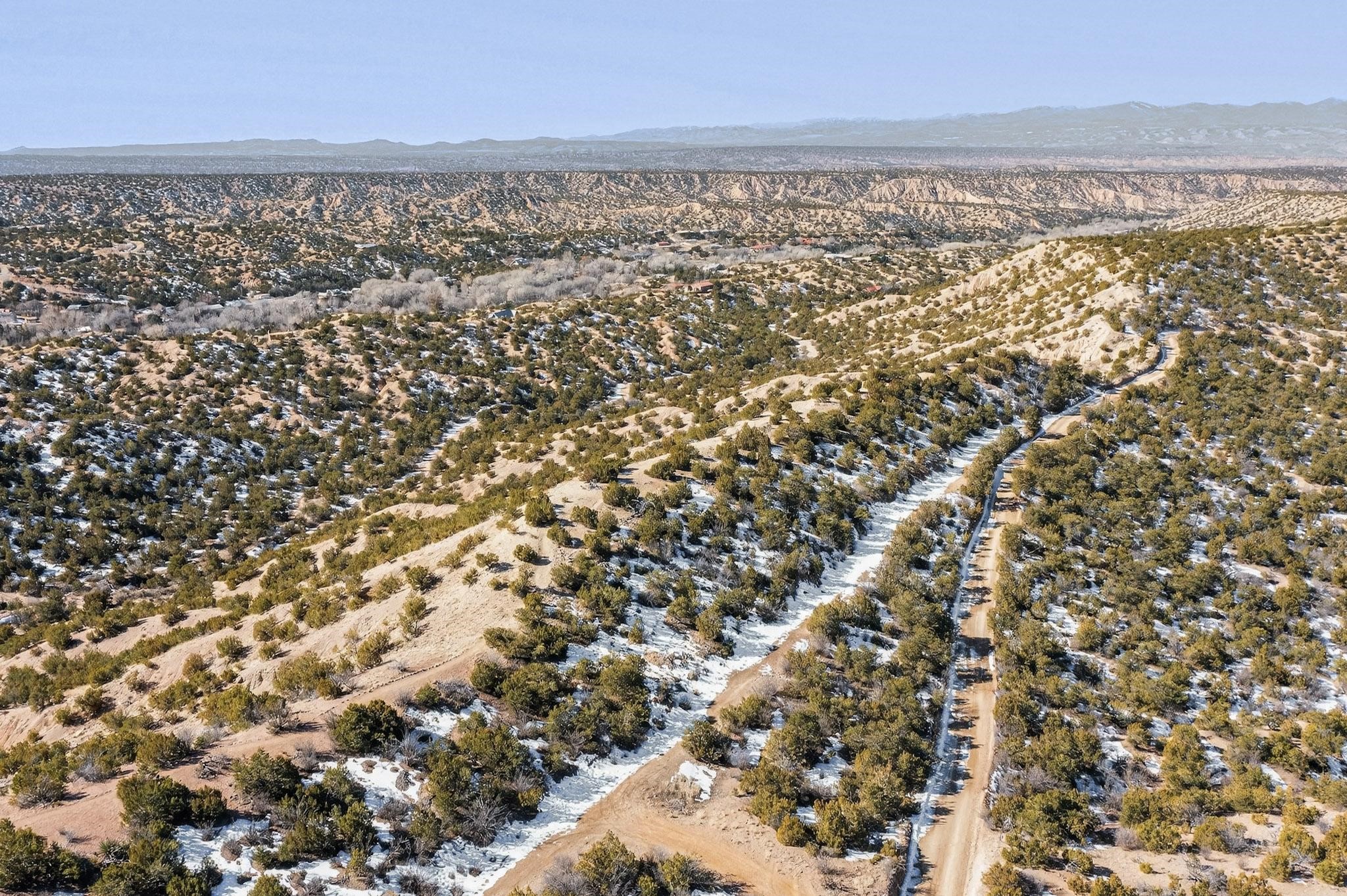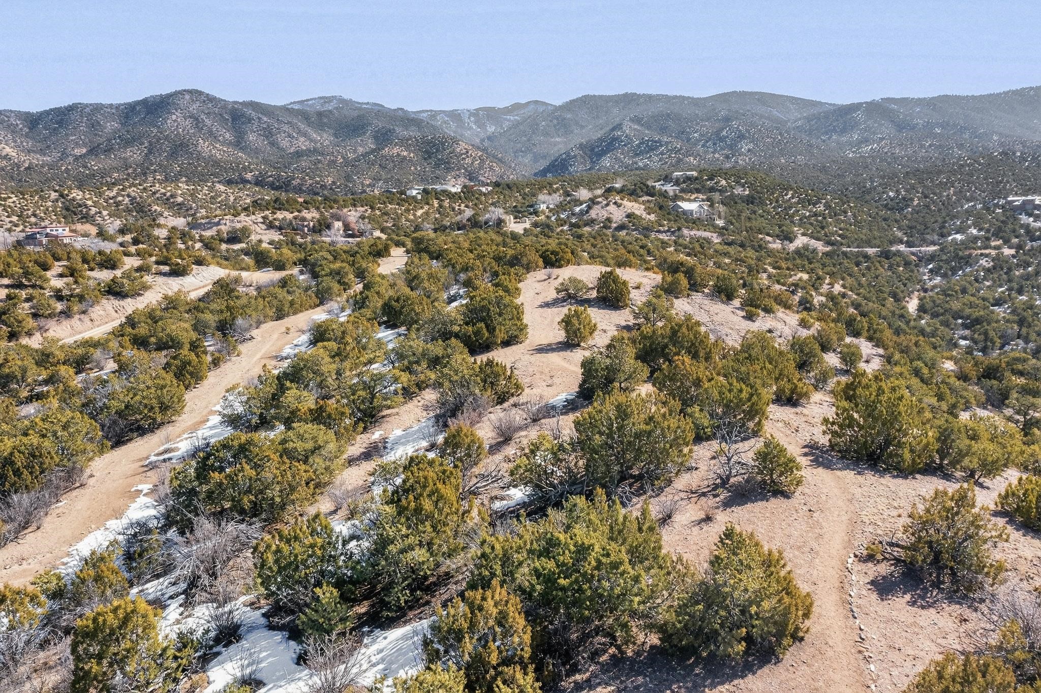 Breathtaking views from this astonishing 15 acre ridge top lot in a small private and gated subdivision moments from the village of Rio En Medio which has offers access to a trail head into the mountains of the National Forest and a nearby waterfall. A deep, sandy bottomed, canyon cuts through the lot. Shared well and power available. Short, level and private access road (easement) off the main road. Minimal CC&Rs. All 5 lots can be purchased as a package. The buildable site offers spectacular views but will need expert construction and design flair for each terrain. Two minutes drive to fine dining at the Four Seasons Encantado Resort. The Tesuque Village Market is 5 minutes and Santa Fe itself another 10.