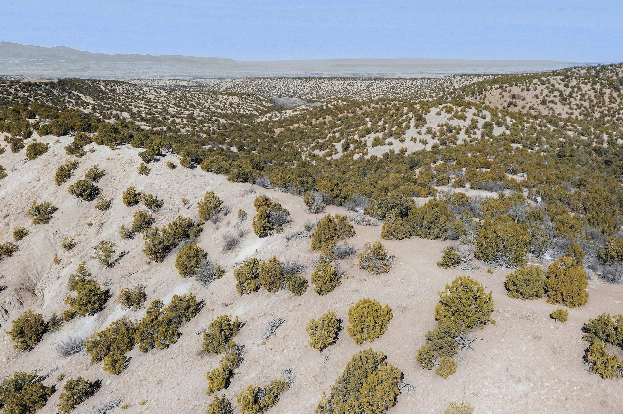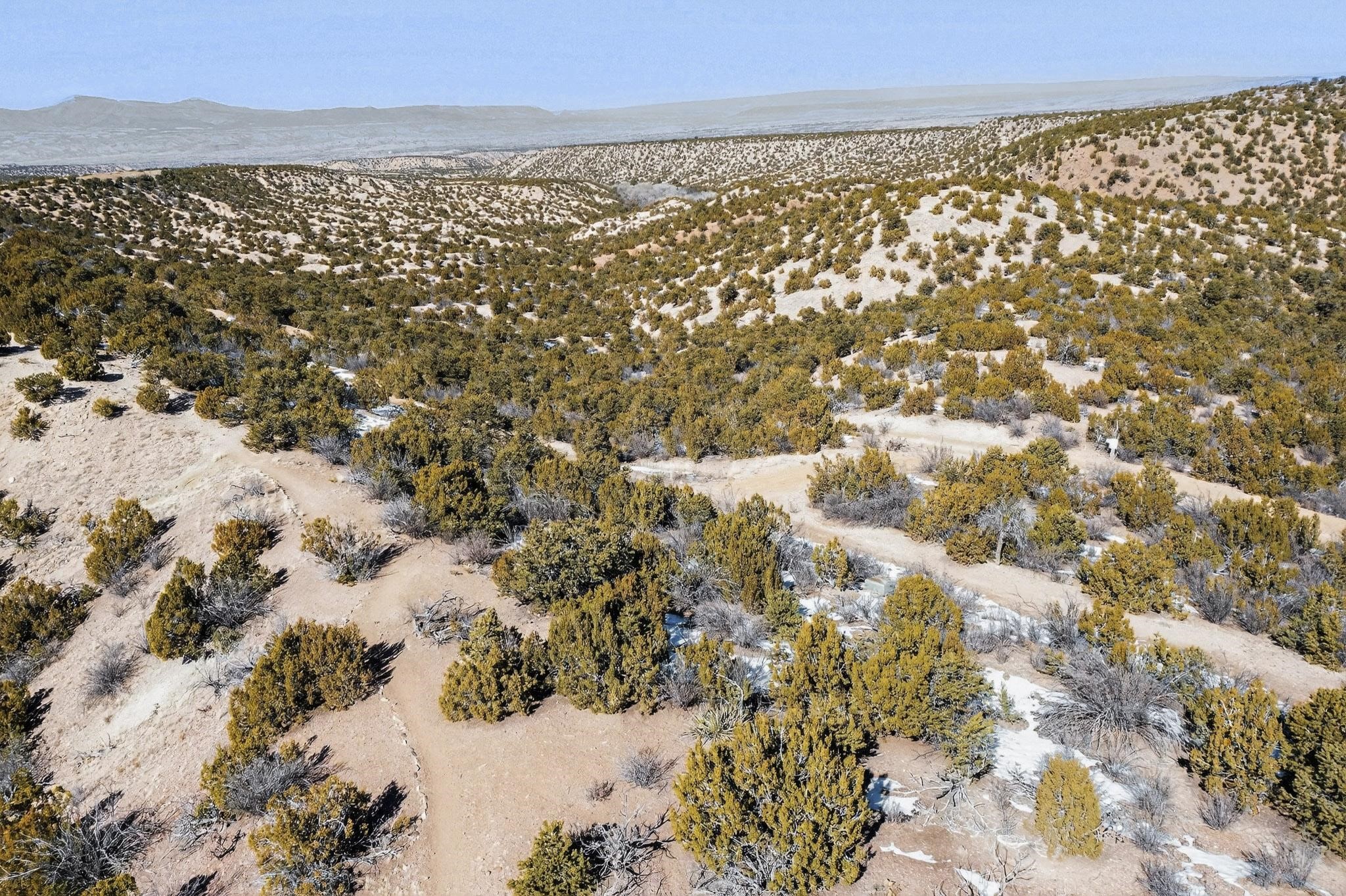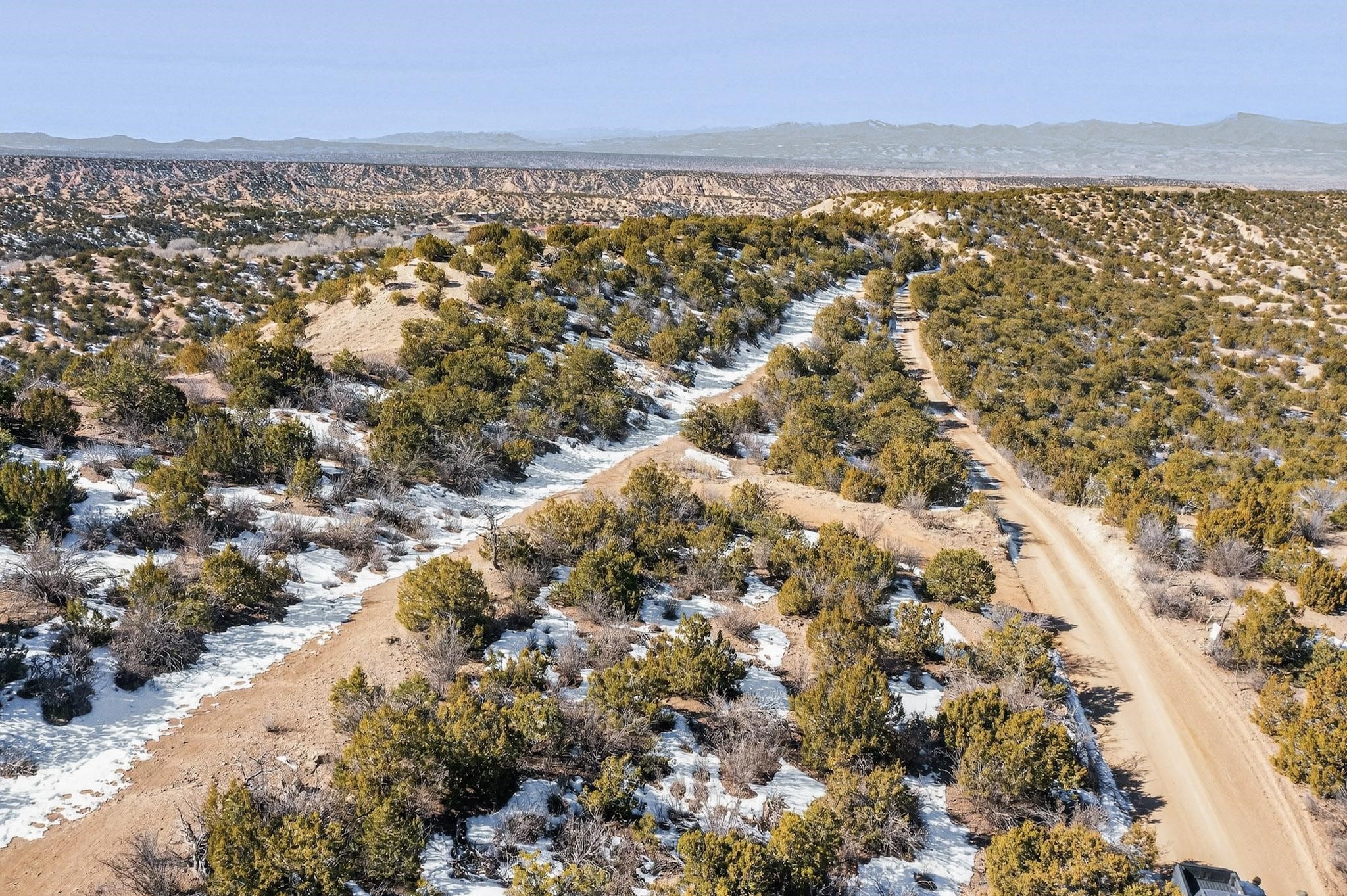Breathtaking views from this astonishing 15 acre ridge top lot in a small private and gated subdivision moments from the village of Rio En Medio which has offers access to a trail head into the mountains of the National Forest and a nearby waterfall. A deep, sandy bottomed, canyon cuts through the lot. Shared well and power available. Short, level and private access road (easement) off the main road. Minimal CC&Rs. All 5 lots can be purchased as a package. The buildable site offers spectacular views but will need expert construction and design flair for each terrain. Two minutes drive to fine dining at the Four Seasons Encantado Resort. The Tesuque Village Market is 5 minutes and Santa Fe itself another 10.