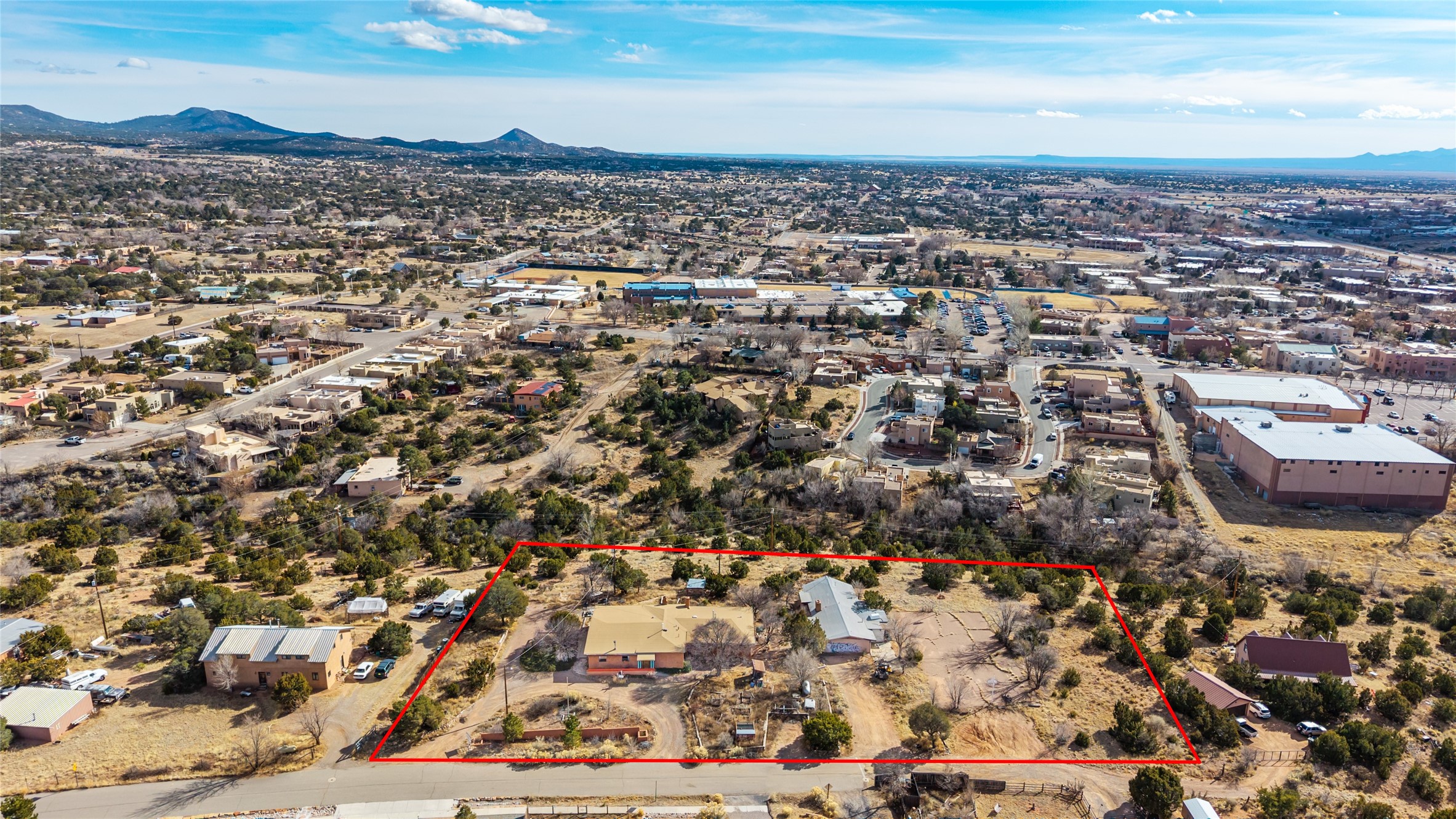 Exceptional redevelopment opportunity at 400 Brunn School Rd. This 2.16-acre property has operated as a school for over 40 years and offers approximately 3,060 sq ft in the main building plus 1,500 sq ft in a detached casita and studio.New zoning allows for up to 8 residential units (with 2 designated as affordable housing), creating strong potential for multi-unit development, workforce housing, or adaptive reuse. Ideal for investors, developers, or visionary buyers looking to repurpose existing structures into residential income property or a unique compound.Rare acreage, existing improvements, and density potential in the Santa Fe market. Buyer to verify zoning and development requirements.