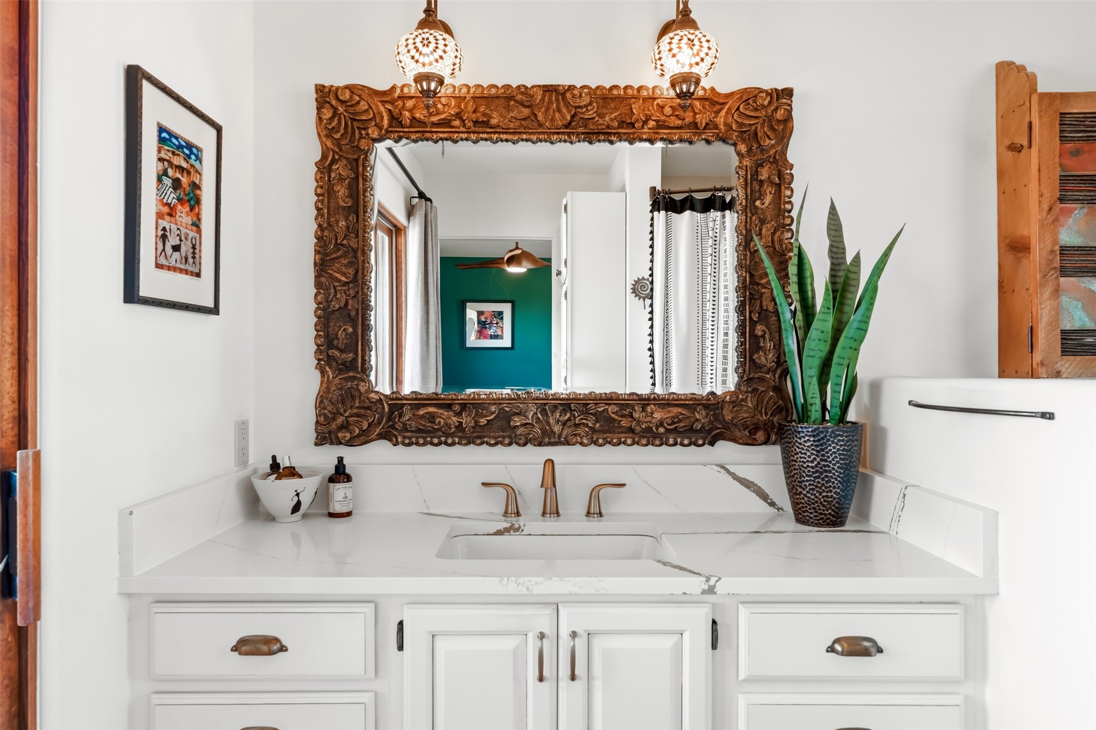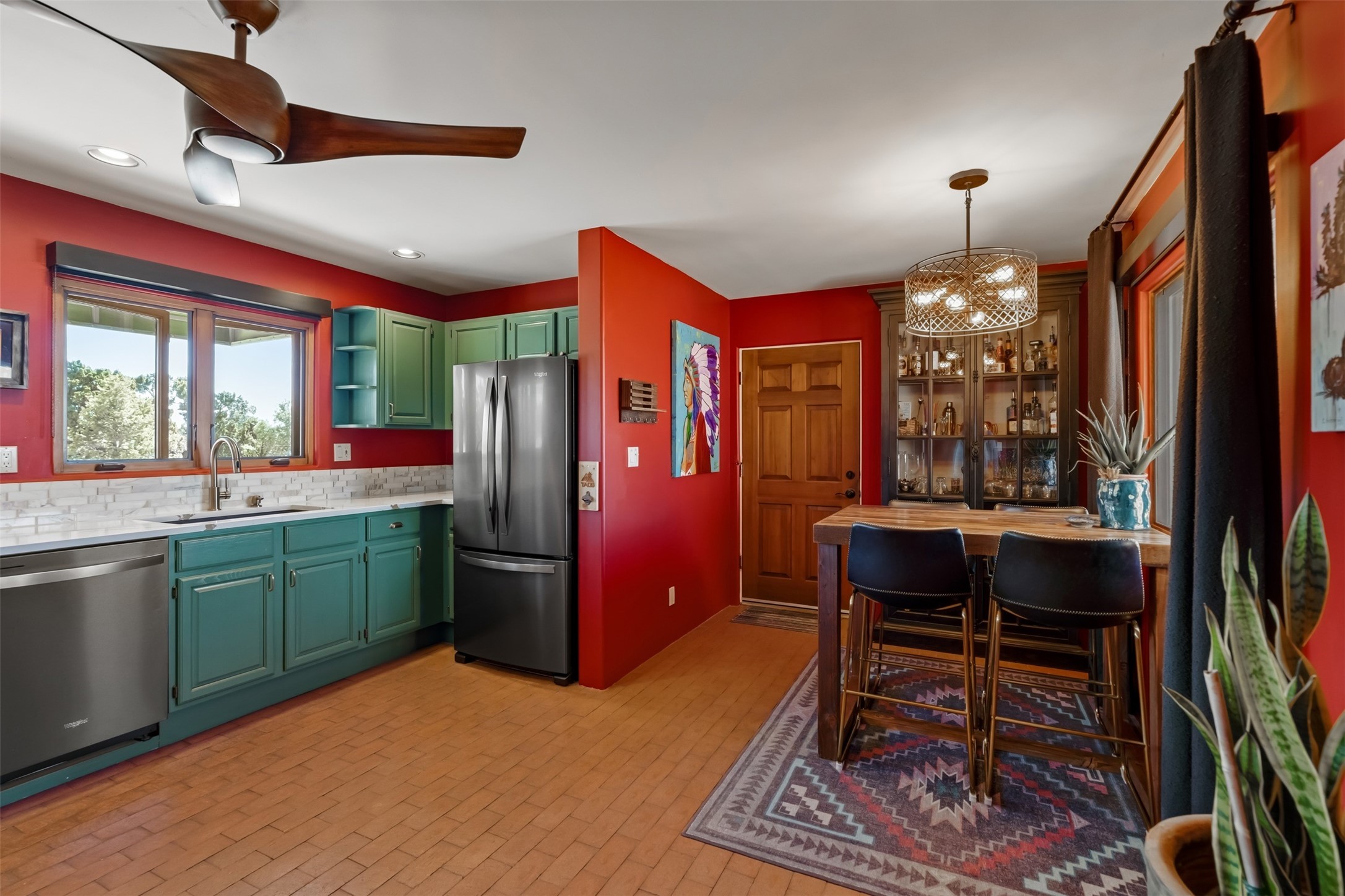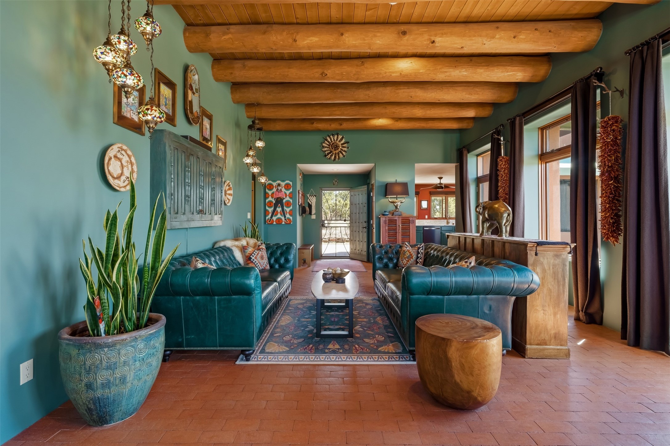 One-of-a-Kind Eldorado at Santa Fe Residence--Artistic, Versatile, with option to purchase Turn-Key. Discover one of Eldorado's most distinctive properties--a beautifully maintained, move-in-ready 5 bedroom, 3 bath home and guest house offer exceptional flexibility for artists, multi-generational living, or those seeking passive rental income. With only two owners, this special residence has been thoughtfully upgraded and lovingly cared for throughout. The fully remodeled main house showcases classic Santa Fe charm paired with modern comfort, featuring new stucco and refreshed hardscape. The newly constructed casita (2023) adds incredible versatility--ideal for guests, extended family, a studio, or income potential. Together, the property offers 2,335 square feet of interior living space, plus a 250-square-foot portal and multiple inviting patio areas designed for relaxed outdoor living. Additional highlights include an oversized two-car garage with built-in storage and workbench, fenced yard, private well with new soft water system and easy access to the Rail Trail. Only minutes to all Eldorado amenities, local shopping and services, close to historic Santa Fe.